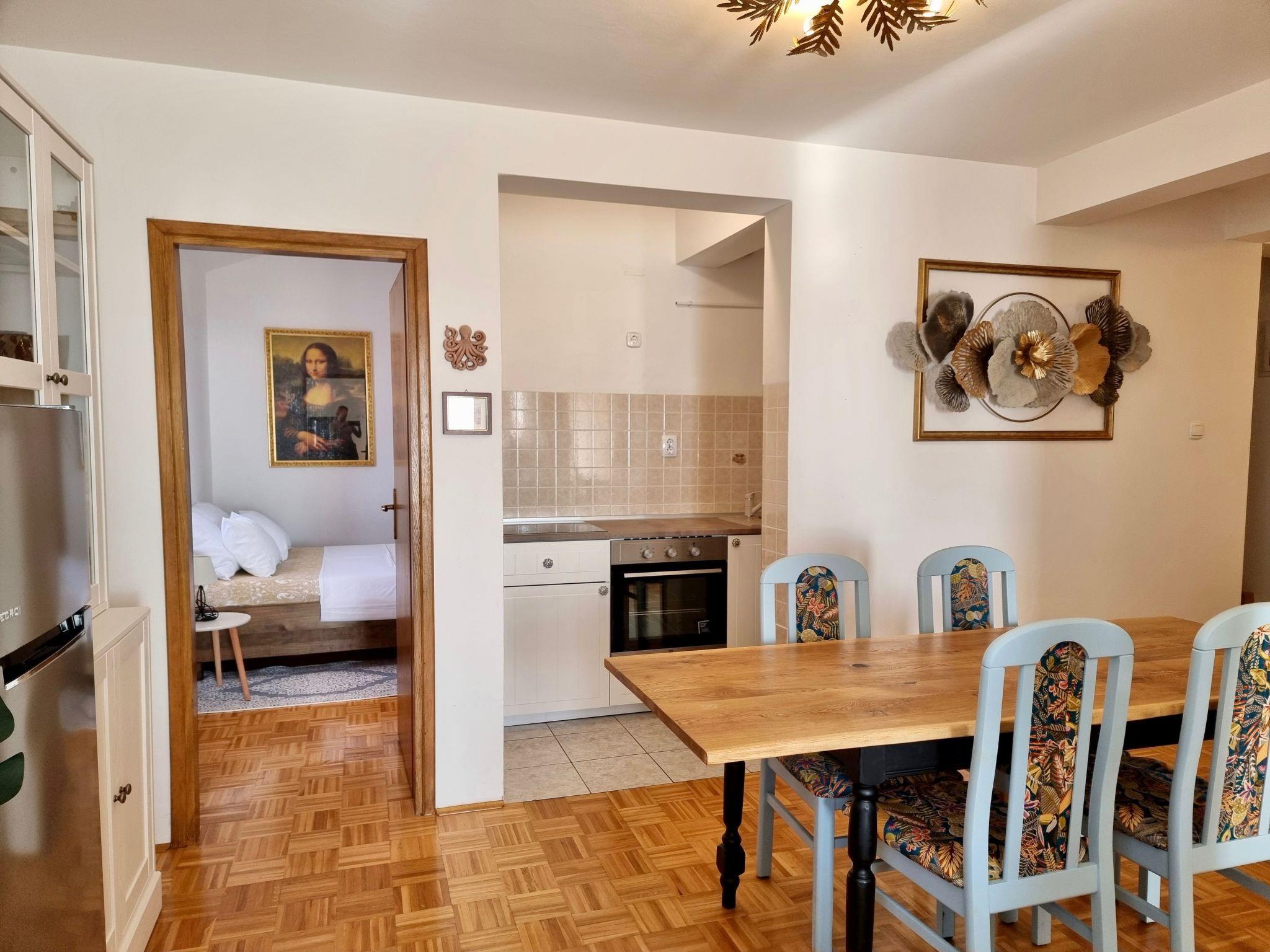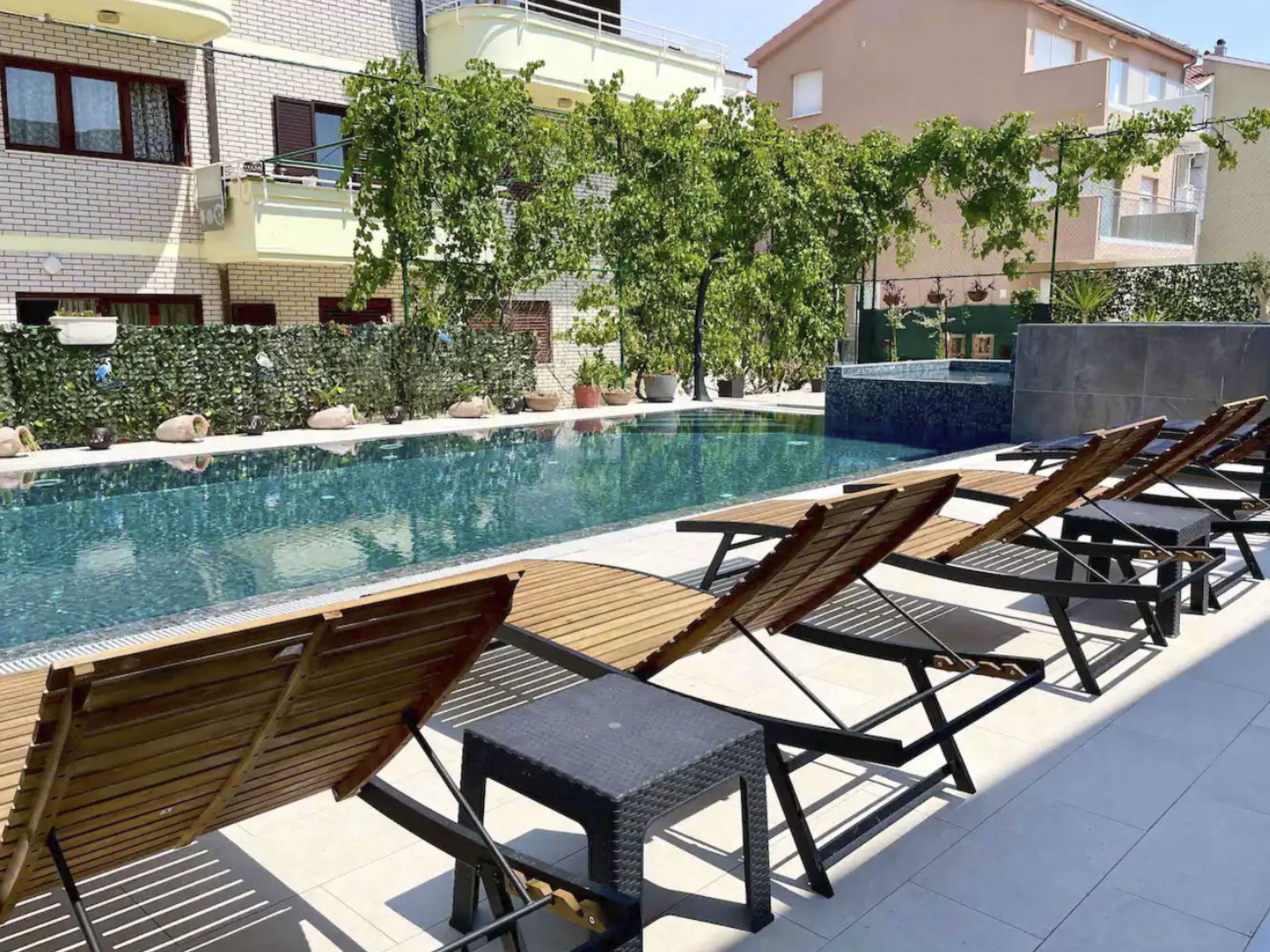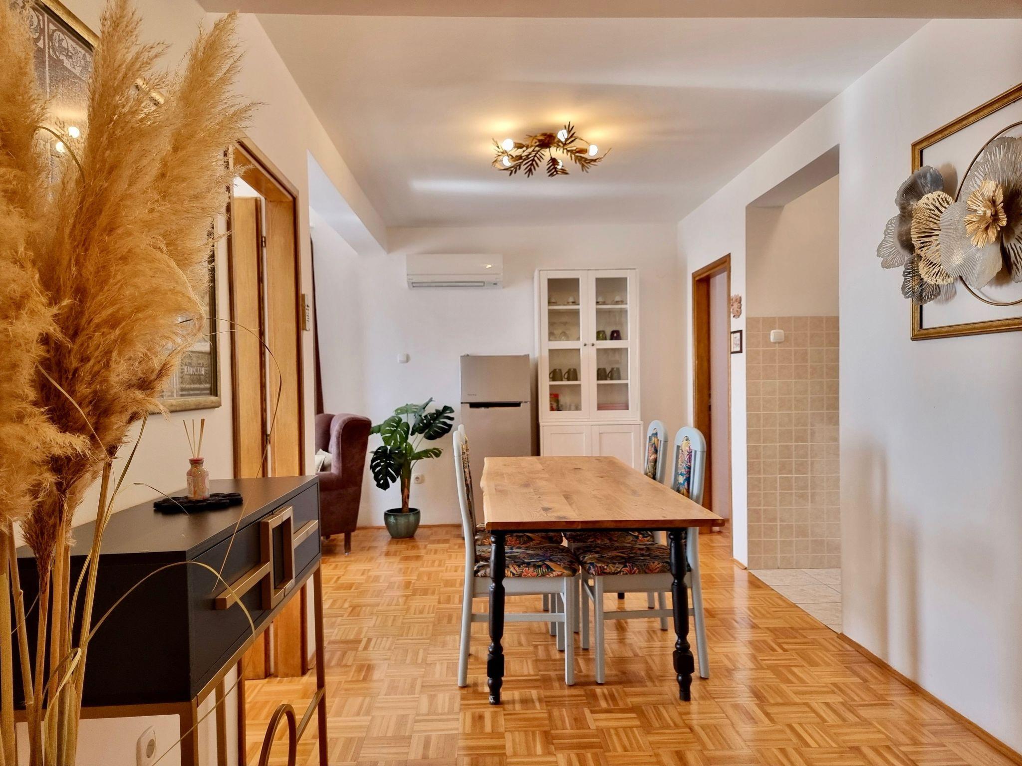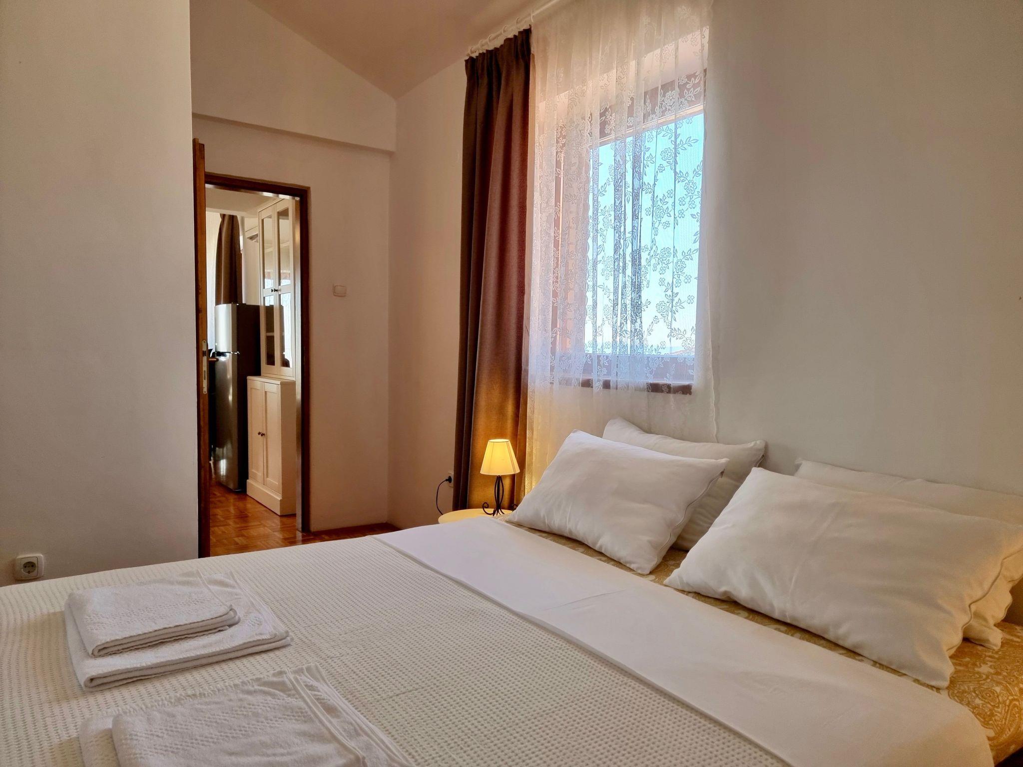 Relax with your entire family at this peaceful place to stay. Spend summer afternoons in the private swimming pool, which is shared only with property guests(a total of seven apartments), or enjoy the sun on the private balcony. The interior of the apartment is furnished with charming décor and is equipped with Wi-Fi, air conditioning, private parking, and a brand-new kitchen. It features two bedrooms with double beds; one of the bedrooms includes a private bathroom.