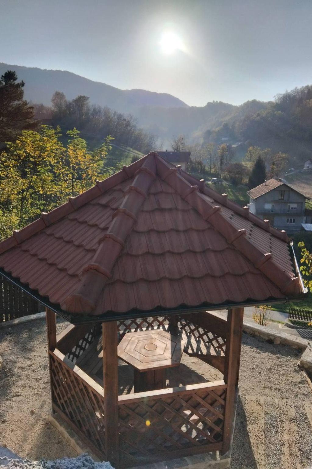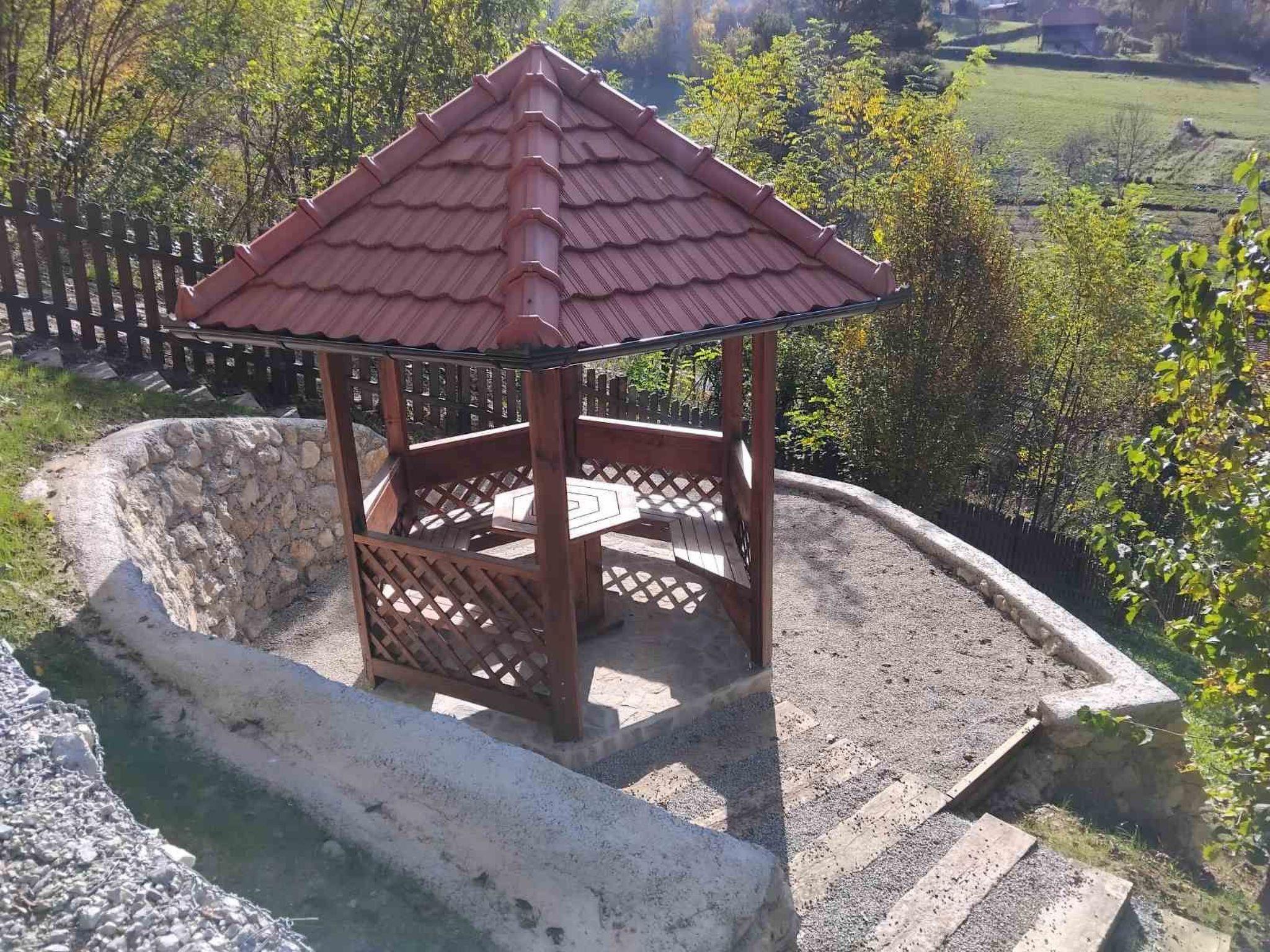 In order to offer visitors a unique tourist content, the owner of "Vila Trnoružica" created an educational path and a lookout point in the park behind the house that covers an area of about 600 m2. The educational path is a kind of "open-air classroom" and with its design it unobtrusively blends in with the natural environment - wooden steps lead up a steep slope to the top of the park, and four educational boards give guests the opportunity to learn about details related to the reconstruction of the "Sleeping Beauty Villa" itself, as well as to flora and fauna and the cultural heritage of the Tuhelj region. At the highest point of the park that rests on a stone retaining wall, there is a lookout point with a gazebo and benches, from which there is a beautiful view of the protected landscape of the nearby Cesargradska Gora mountain - a cosy corner created to rest and relax in the greenery of Zagorje hills.