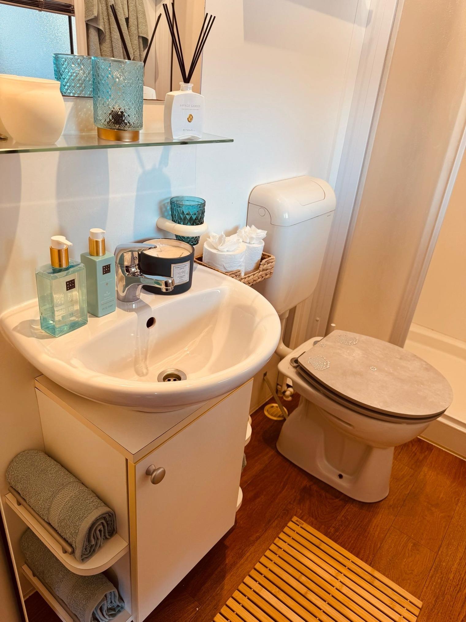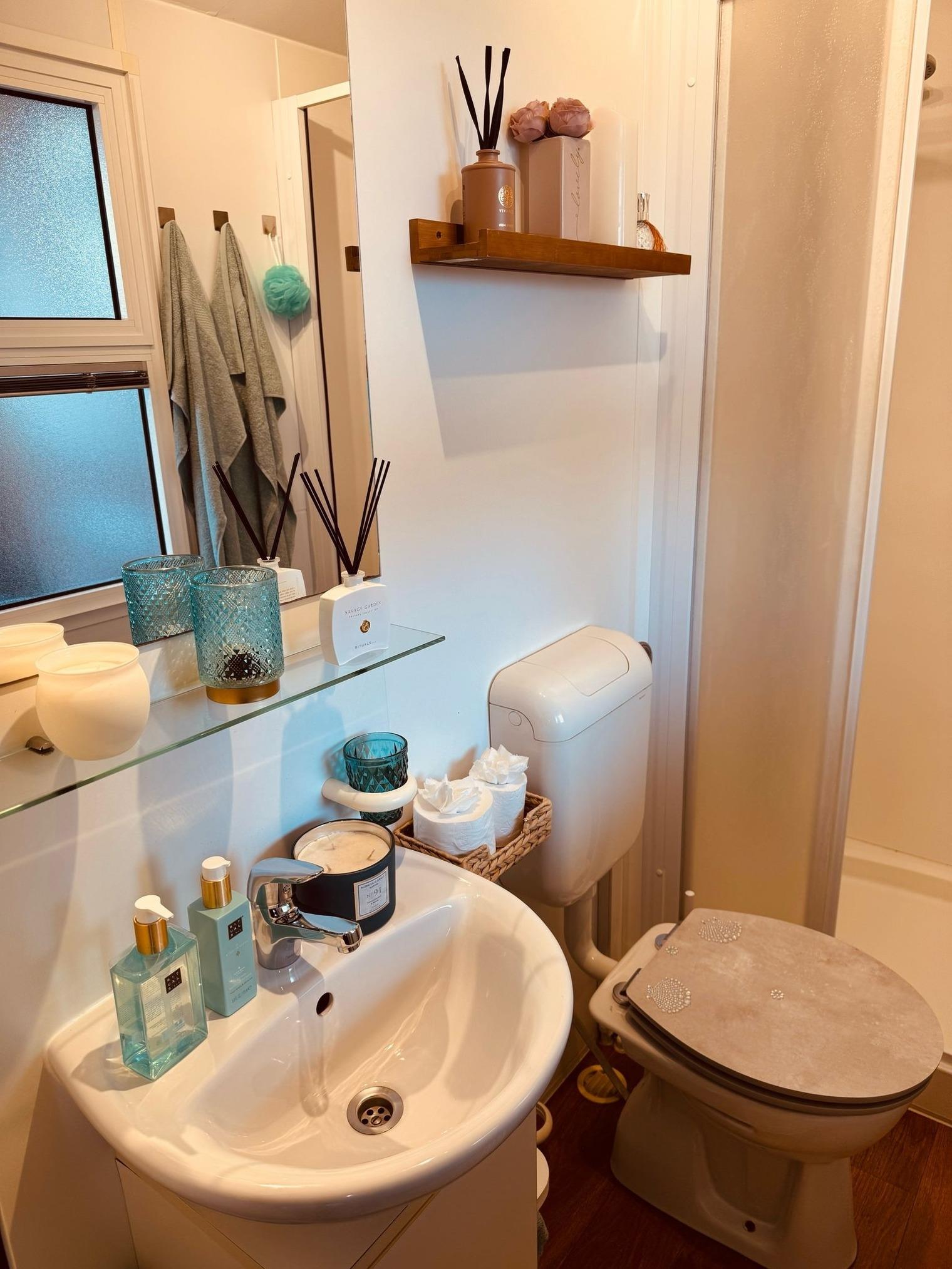 Bad/WC mit Fenster: Hier erwarten Sie Produkte von Rituals sowie ein Haarföhn mit Diffusor und einem Lockenstab von Braun
