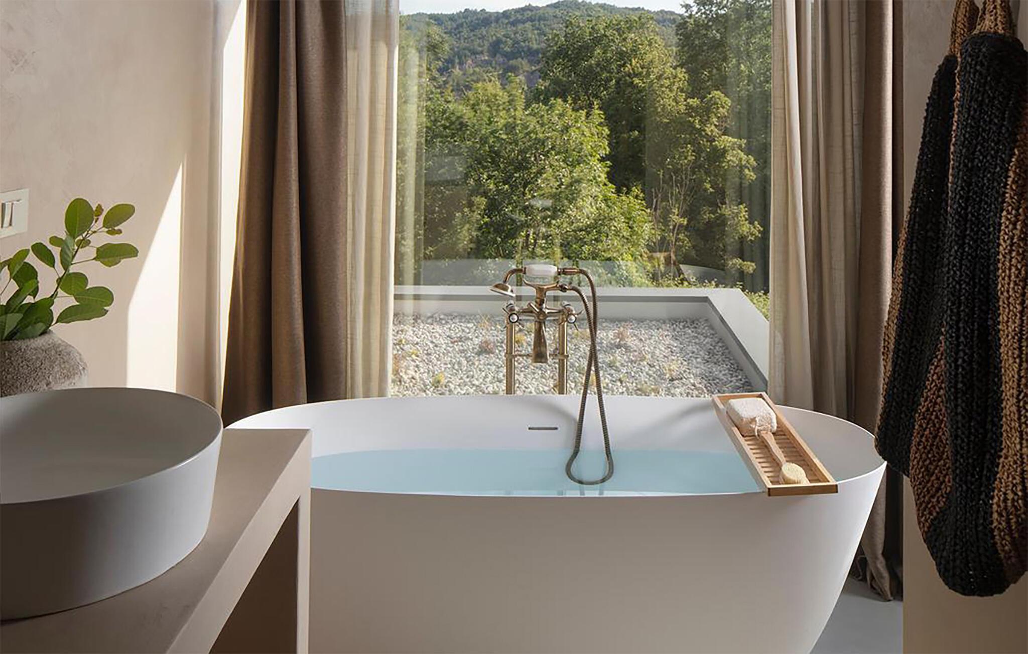 Den luksuriøse Villa Bagnoli giver jer en unik oase midt i naturen. Stil og komfort af høj kvalitet finder den optimale symbiose her, hvilket skaber det perfekte miljø til jer at føle jer godt tilpas og slappe af. Nyd gulv til loft-panoramavinduerne, hvorigennem det smukke hus smelter sammen med den omgivende natur og fylder rummene med dagslys. Villaen imponerer også med sin elegante indretning. Pejsen bidrager til hyggelige aftener, mens siddeområdet og balkonen lægger op til at nyde et glas vin. De allergivenlige møbler og saunaen fuldender den gode oplevelse.