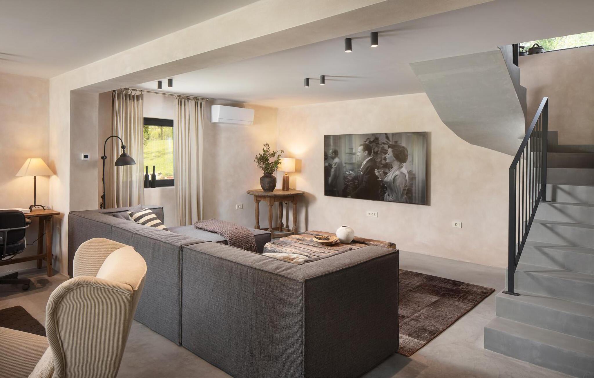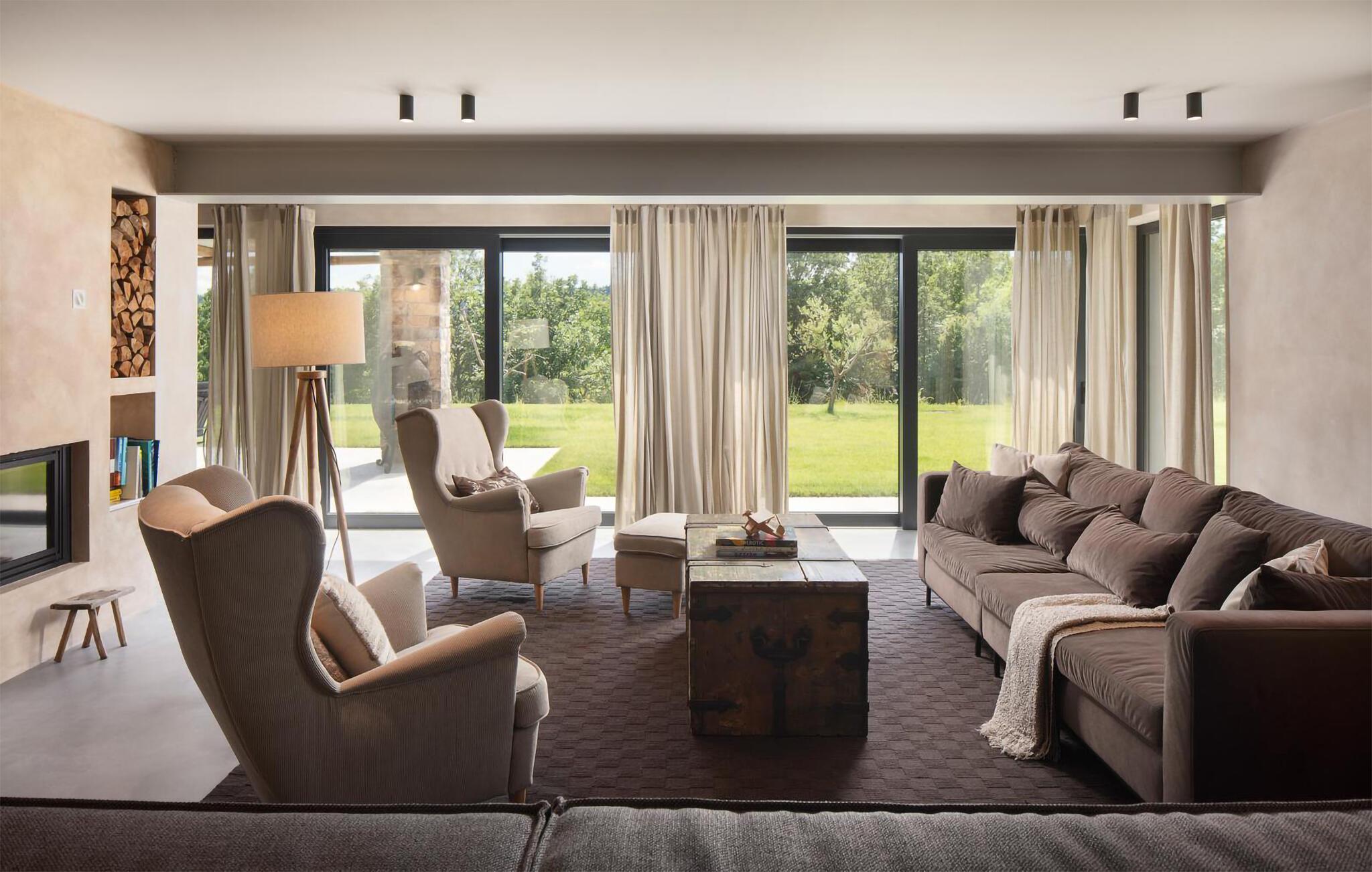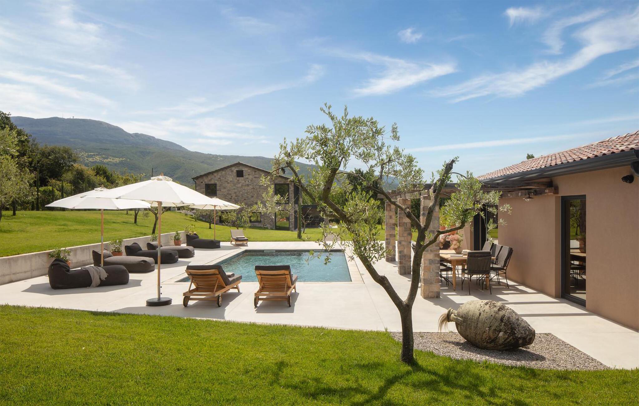 Grunden lægger op til at slappe af ved den private pool og på terrassen med betagende udsigt over bjergene. I de lune måneder lokker grillen i haven, mens den udendørs pejs sørger for varme efter en dag med vandreture.