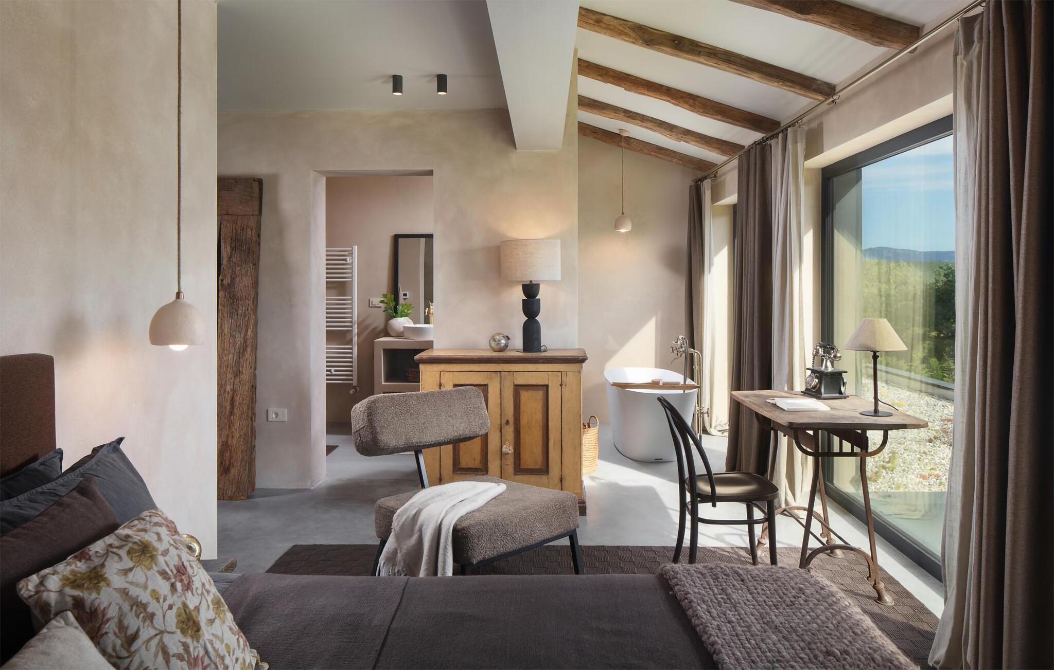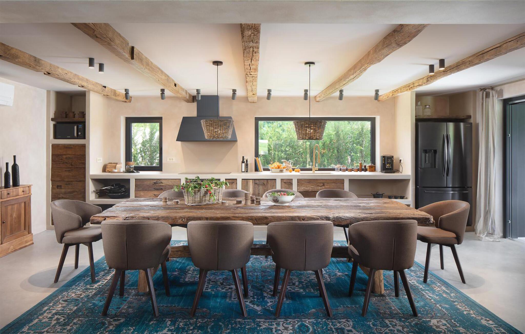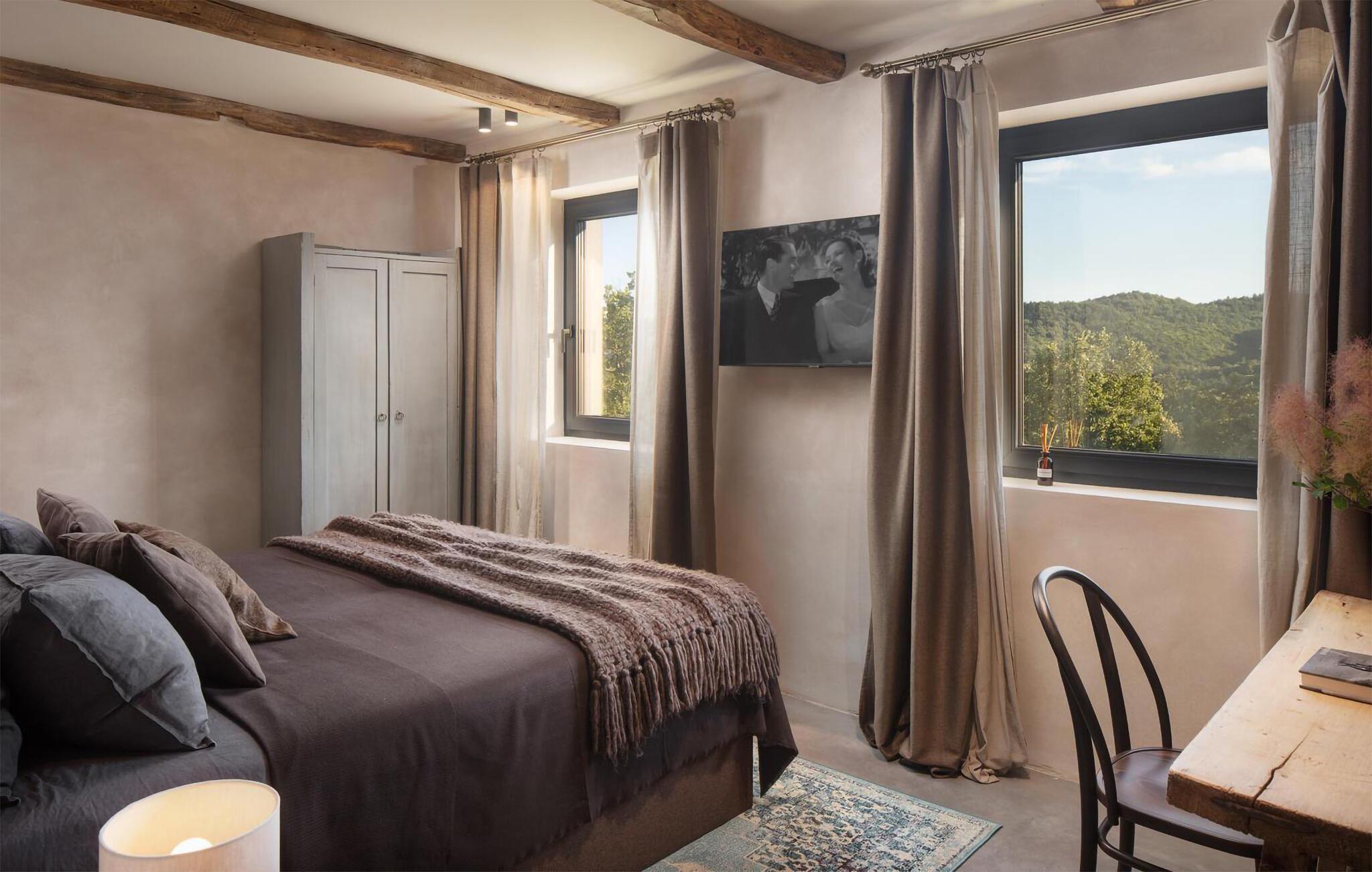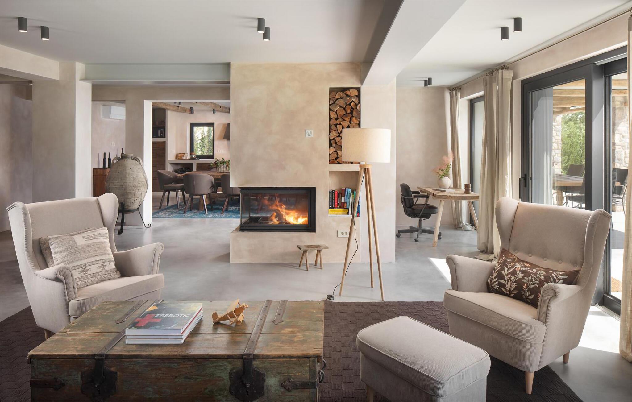 Grunden lægger op til at slappe af ved den private pool og på terrassen med betagende udsigt over bjergene. I de lune måneder lokker grillen i haven, mens den udendørs pejs sørger for varme efter en dag med vandreture.