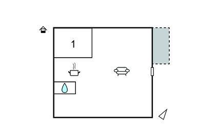 Opholdsstue/køkken 30m2 - 2 Sovepladser. (Sofa, madras eller lignende).