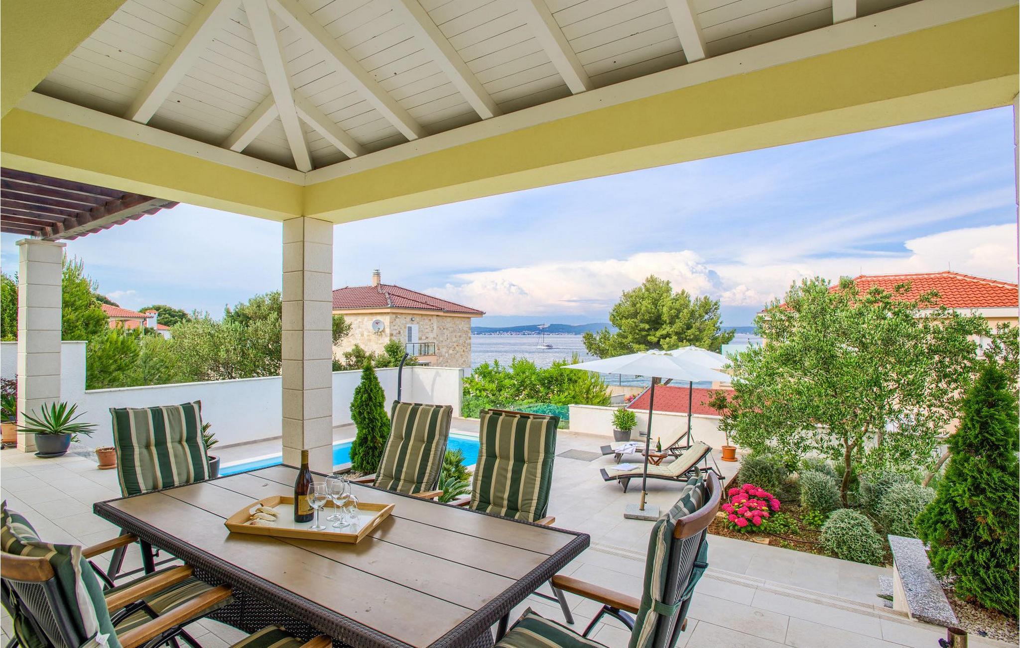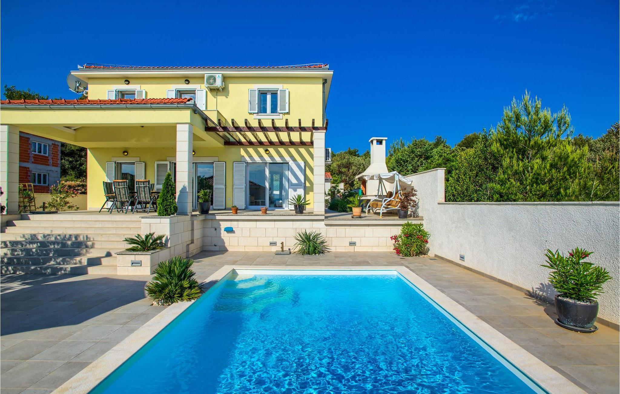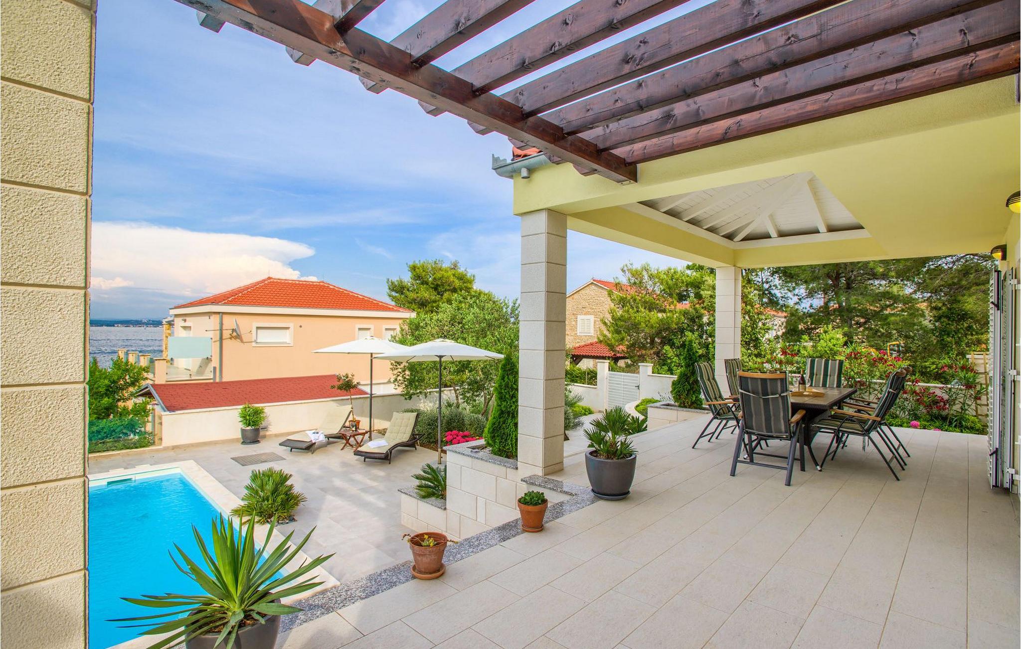 Den smukke Villa Tatijana ligger på øen Ugljan, i umiddelbar nærhed af havet. Den kan rumme op til 8 personer og er ideel til familier, vennegrupper eller par. Udearealet byder på en velholdt have dekoreret med middelhavsplanter, en privat pool med liggestole og en fantastisk havudsigt, som du helt sikkert vil nyde! Der er en overdækket terrasse og en grill til din rådighed - perfekt til at tilberede lækre specialiteter og tilbringe sommeraftenen med dine kære. Den åbne plan stueetagen består af et fuldt udstyret køkken med spiseplads og en stue. Så snart du træder ind i rummet, vil du bemærke den stilrene indretning med enkle farver og pejsen, der giver rummet en hyggelig atmosfære. Der er også fire komfortable soveværelser (et i stueetagen og tre på første sal) og to badeværelser. Bordtennis og dart er til rådighed. Den fuldt klimatiserede villa har internetadgang, privat parkering til fire biler, og ejendommen er fuldt indhegnet. Villa Tatijana er det perfekte valg, hvis du ønsker at tilbringe din afslappende ferie nær havet. Du vil føle dig hjemme her! Villa er beliggende i Kukljica, en lille landsby på øen Ugljan. Fra Zadar er der daglige forbindelser til øen Ugljan med færge til havnen i landsbyen Preko. Zadar er en gammel by med historisk og kulturel arv, der er værd at se. Den berømte Alfred Hitchcock sagde, at Zadar har den smukkeste solnedgang i verden - gå ikke glip af det! Den gamle bydel i Zadar byder på monumenter fra oldtiden, middelalderen og renæssancen, og i dag er den berømt for symfoni af Havorgelet og lysinstallationen "Pozdrav Suncu" (Greeating the Sun). I Kukljica finder du tætte fyrreskove, sand- og klippestrande og det krystalklare Adriaterhav! Kukljica er perfekt til daglige ture til nationalparken Telašcica og nationalparken Kornati. Hvis du leder efter en mere aktiv ferie, så gå ikke glip af vandre- og cykelstier.