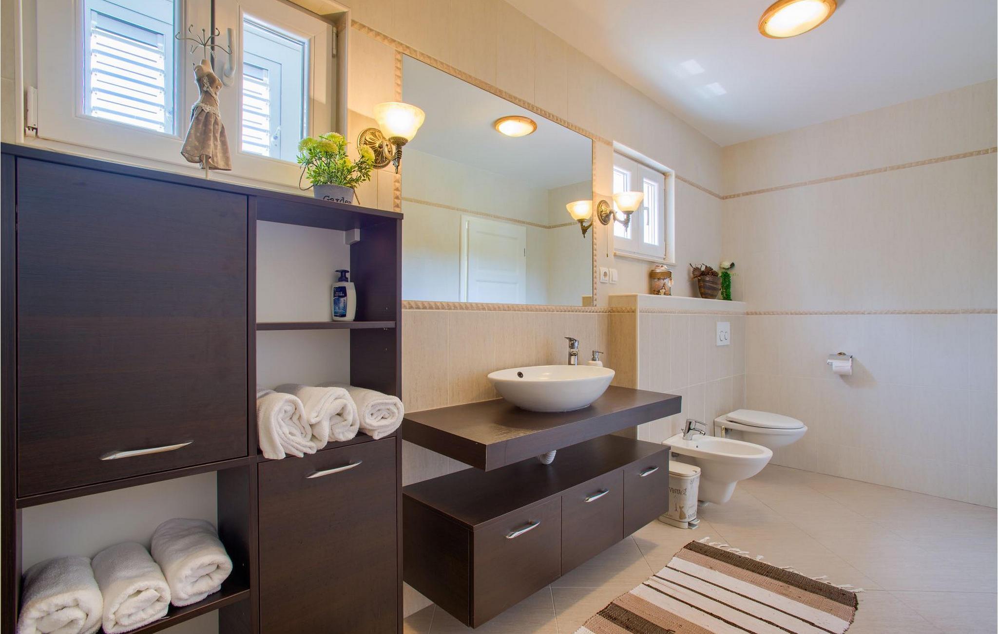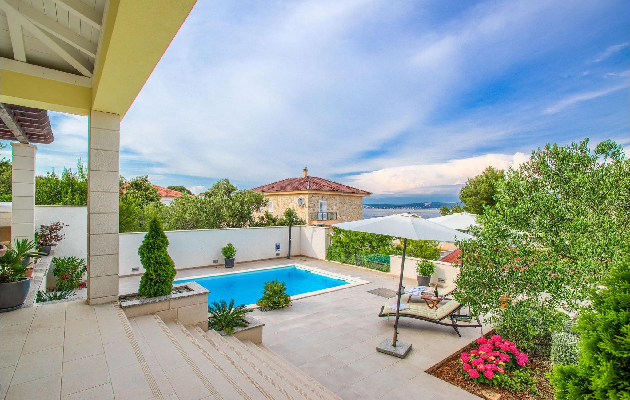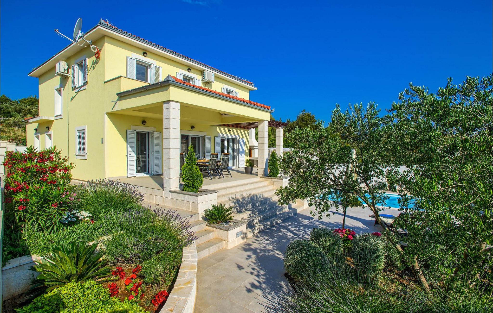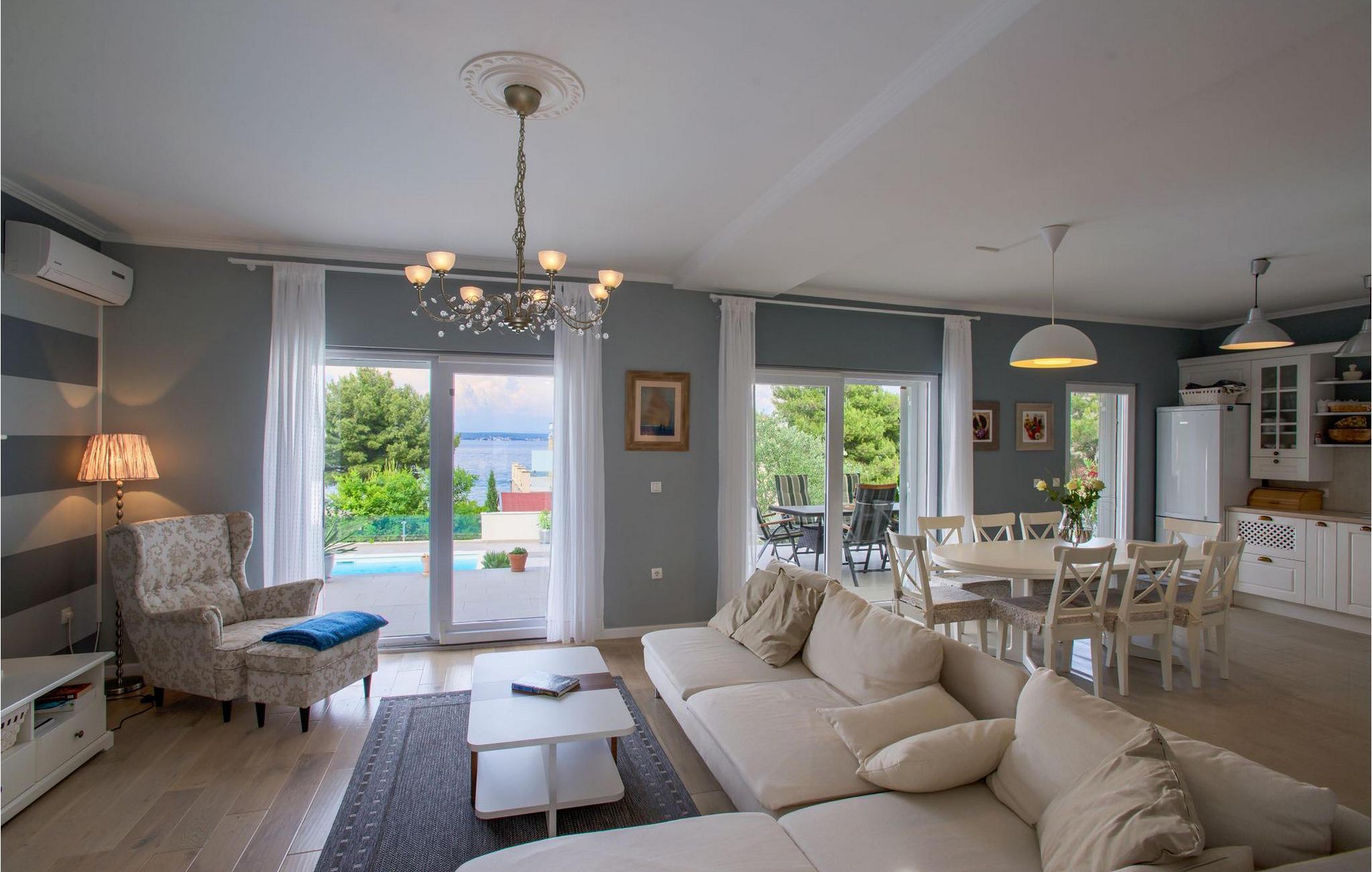 Den smukke Villa Tatijana ligger på øen Ugljan, i umiddelbar nærhed af havet. Den kan rumme op til 8 personer og er ideel til familier, vennegrupper eller par. Udearealet byder på en velholdt have dekoreret med middelhavsplanter, en privat pool med liggestole og en fantastisk havudsigt, som du helt sikkert vil nyde! Der er en overdækket terrasse og en grill til din rådighed - perfekt til at tilberede lækre specialiteter og tilbringe sommeraftenen med dine kære. Den åbne plan stueetagen består af et fuldt udstyret køkken med spiseplads og en stue. Så snart du træder ind i rummet, vil du bemærke den stilrene indretning med enkle farver og pejsen, der giver rummet en hyggelig atmosfære. Der er også fire komfortable soveværelser (et i stueetagen og tre på første sal) og to badeværelser. Bordtennis og dart er til rådighed. Den fuldt klimatiserede villa har internetadgang, privat parkering til fire biler, og ejendommen er fuldt indhegnet. Villa Tatijana er det perfekte valg, hvis du ønsker at tilbringe din afslappende ferie nær havet. Du vil føle dig hjemme her! Villa er beliggende i Kukljica, en lille landsby på øen Ugljan. Fra Zadar er der daglige forbindelser til øen Ugljan med færge til havnen i landsbyen Preko. Zadar er en gammel by med historisk og kulturel arv, der er værd at se. Den berømte Alfred Hitchcock sagde, at Zadar har den smukkeste solnedgang i verden - gå ikke glip af det! Den gamle bydel i Zadar byder på monumenter fra oldtiden, middelalderen og renæssancen, og i dag er den berømt for symfoni af Havorgelet og lysinstallationen "Pozdrav Suncu" (Greeating the Sun). I Kukljica finder du tætte fyrreskove, sand- og klippestrande og det krystalklare Adriaterhav! Kukljica er perfekt til daglige ture til nationalparken Telašcica og nationalparken Kornati. Hvis du leder efter en mere aktiv ferie, så gå ikke glip af vandre- og cykelstier.