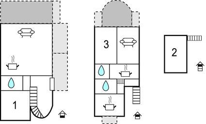 Badeværelse (nr. 2) - WC. Varmt og koldt vand. Bruser