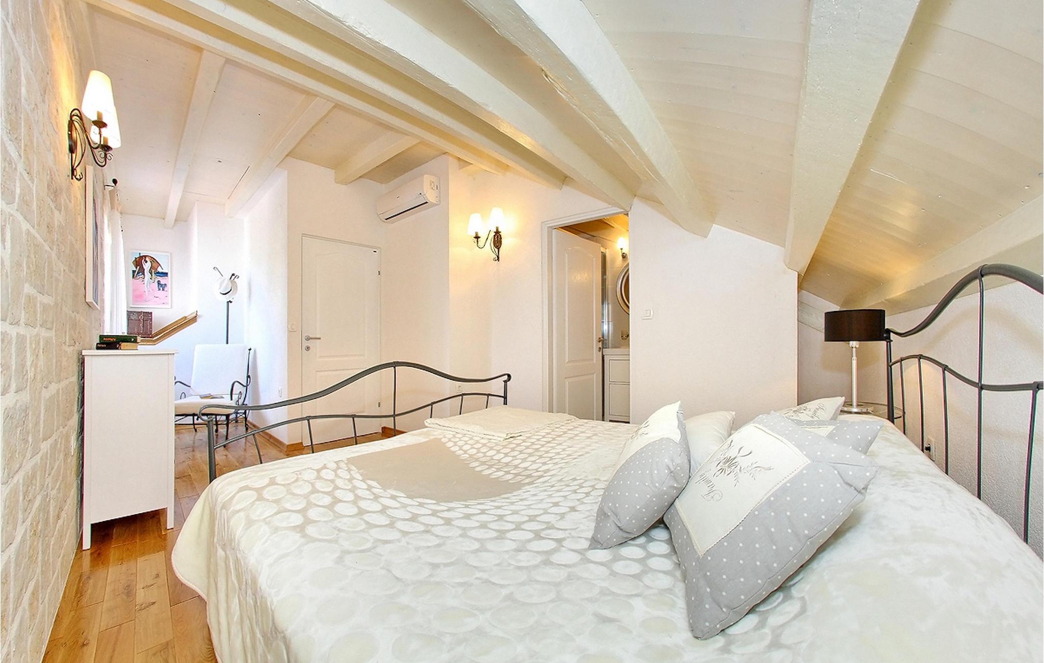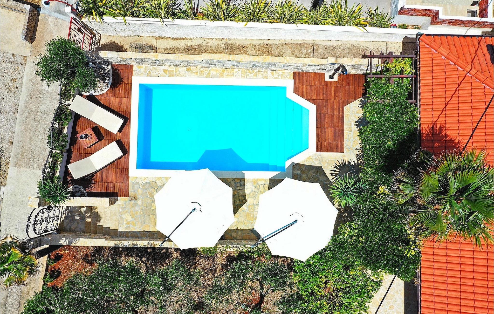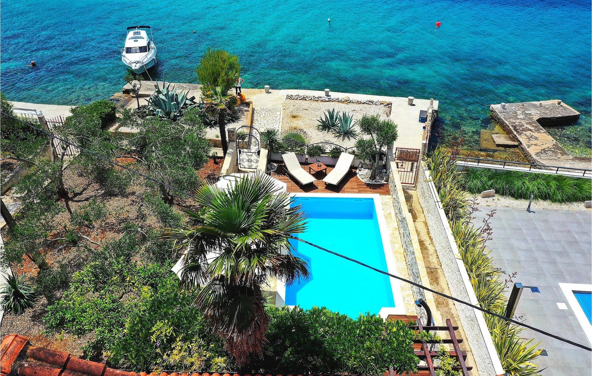 Denne smukke ejendom ved stranden er ideel til små grupper eller familier, der rejser sammen, og du kan nyde dalmatisk sol og hav på den bedst mulige måde. Villaen kan komfortabelt rumme 6 personer i 3 soveværelser med dobbeltsenge og 3 badeværelser. Soveværelserne er veludstyrede og kombinerer antikke og moderne møbler. I stueetagen er der rummelig stue og spiseplads samt fuldt udstyret køkken. Du kan nyde al fresco-spisning fra den dejlige store terrasse med grill med udsigt over swimmingpoolen og havet. Ejendommen har også aircondition og har trådløs internetadgang. Det er fuldt omgivet af mure og indhegnet, hvilket betyder, at du er indstillet til en perfekt afslappende ferie, med en betagende panoramaudsigt over havet, og ligger kun få skridt fra stranden. Meget gode restauranter, butikker og barer er rundt omkring, men villaen tilbyder fuldstændig privatliv. Der er en parkeringsplads til 2 biler. Denne villa er beliggende nær den smukke kystby Zadar. Det er en gammel by bygget i centrum af det kroatiske Adriaterhav, fuld af historisk og kulturel arv. Der er en romersk plads fra det 1. århundrede, kirken St. Donat fra 9. århundrede og kirken St. Marija fra år 1091, genopbygget i det 16. århundrede. St. Stosija-katedralen fra det 12. – 13. århundrede, delene af forsvarsmure ved byens havn, byporten Porta Terra Ferma fra år 1543, tårnet Bablja, Venedigs palads guvernør fra år 1607, bybygning fra 1562 og mere ! Denne beliggenhed tilbyder et fredeligt sted, mens du nyder godt af at være lige uden for byens centrum. Alt er tæt herfra - strand, historisk arkitektur, restauranter, national- og naturparker.. Villaen ligger kun 10 m fra havet og 500 m fra fremragende restauranter. Hvis du leder efter aktivitet, bemærkelsesværdige oplevelser og rig kulturarv, er Zadar stedet for dig. Der er strandklubber, kaffebarer, og efter midnat kan du nyde den behagelige atmosfære på natbarer og diskoteker. Intet andet end sjov fra solnedgang til solopgang!