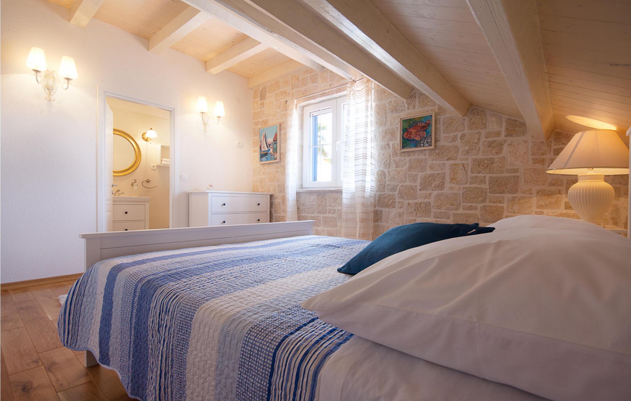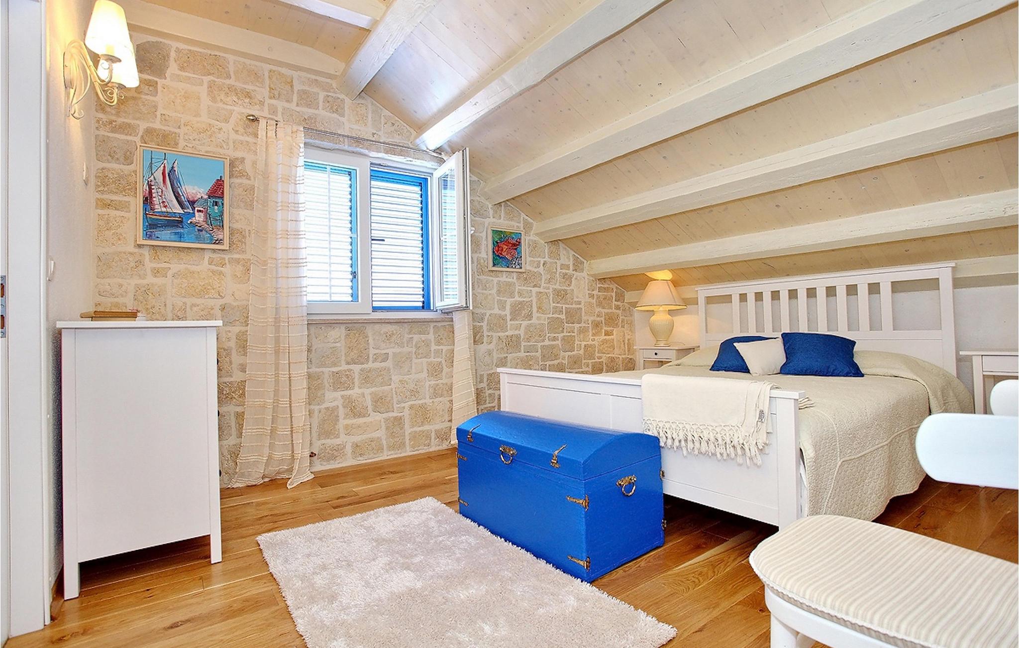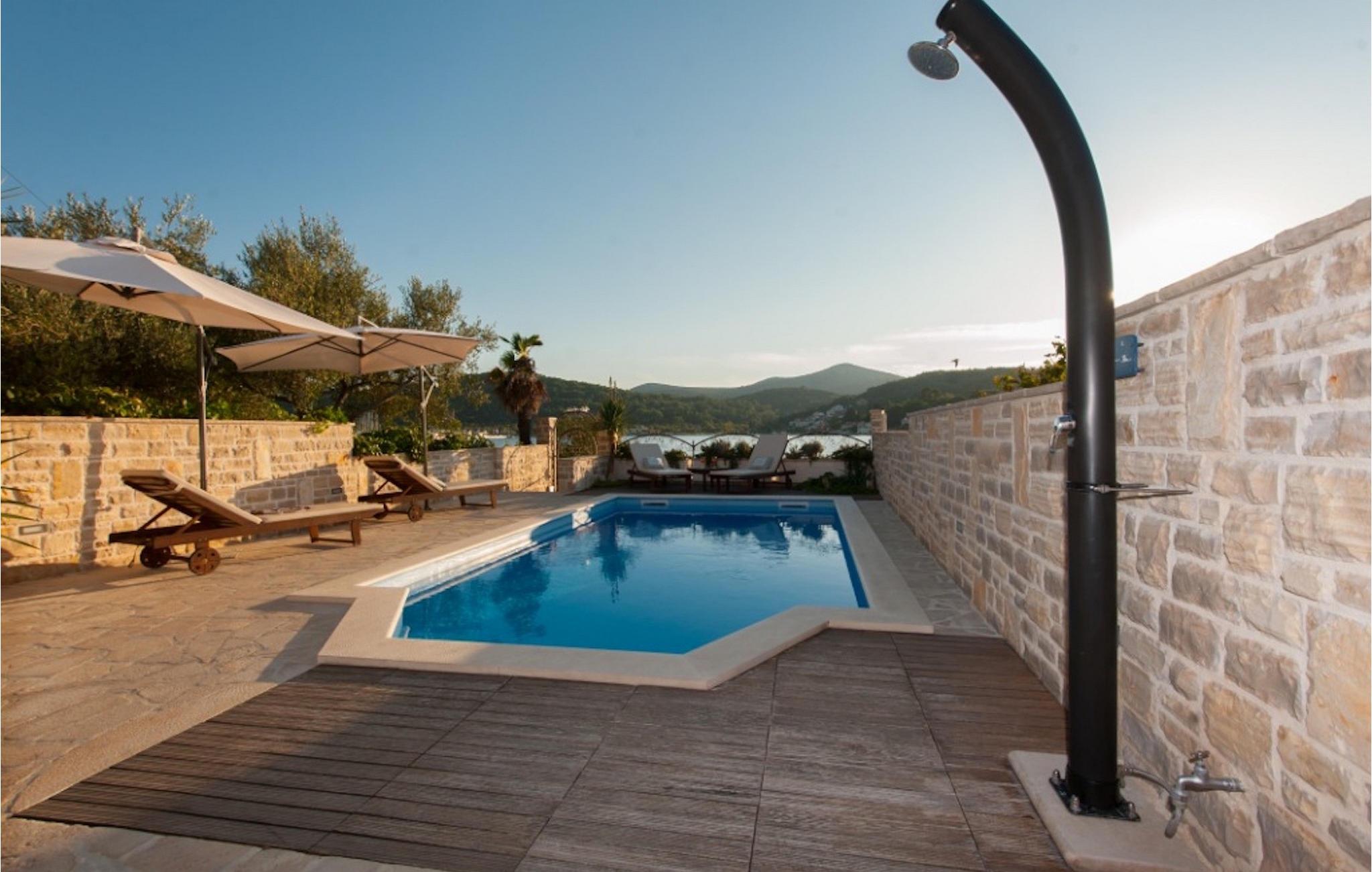 Denne smukke ejendom ved stranden er ideel til små grupper eller familier, der rejser sammen, og du kan nyde dalmatisk sol og hav på den bedst mulige måde. Villaen kan komfortabelt rumme 6 personer i 3 soveværelser med dobbeltsenge og 3 badeværelser. Soveværelserne er veludstyrede og kombinerer antikke og moderne møbler. I stueetagen er der rummelig stue og spiseplads samt fuldt udstyret køkken. Du kan nyde al fresco-spisning fra den dejlige store terrasse med grill med udsigt over swimmingpoolen og havet. Ejendommen har også aircondition og har trådløs internetadgang. Det er fuldt omgivet af mure og indhegnet, hvilket betyder, at du er indstillet til en perfekt afslappende ferie, med en betagende panoramaudsigt over havet, og ligger kun få skridt fra stranden. Meget gode restauranter, butikker og barer er rundt omkring, men villaen tilbyder fuldstændig privatliv. Der er en parkeringsplads til 2 biler. Denne villa er beliggende nær den smukke kystby Zadar. Det er en gammel by bygget i centrum af det kroatiske Adriaterhav, fuld af historisk og kulturel arv. Der er en romersk plads fra det 1. århundrede, kirken St. Donat fra 9. århundrede og kirken St. Marija fra år 1091, genopbygget i det 16. århundrede. St. Stosija-katedralen fra det 12. – 13. århundrede, delene af forsvarsmure ved byens havn, byporten Porta Terra Ferma fra år 1543, tårnet Bablja, Venedigs palads guvernør fra år 1607, bybygning fra 1562 og mere ! Denne beliggenhed tilbyder et fredeligt sted, mens du nyder godt af at være lige uden for byens centrum. Alt er tæt herfra - strand, historisk arkitektur, restauranter, national- og naturparker.. Villaen ligger kun 10 m fra havet og 500 m fra fremragende restauranter. Hvis du leder efter aktivitet, bemærkelsesværdige oplevelser og rig kulturarv, er Zadar stedet for dig. Der er strandklubber, kaffebarer, og efter midnat kan du nyde den behagelige atmosfære på natbarer og diskoteker. Intet andet end sjov fra solnedgang til solopgang!