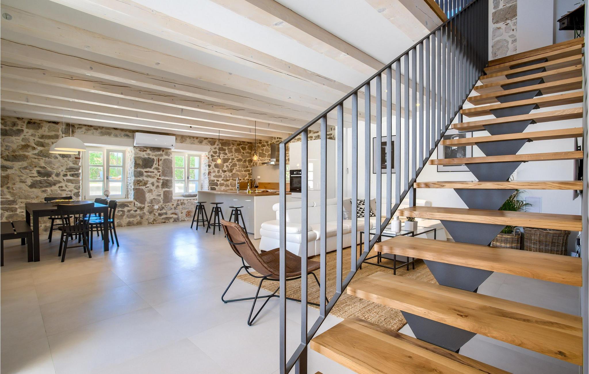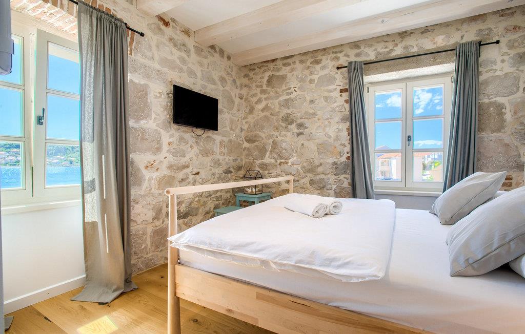 Mit insgesamt 4 Schlafzimmern kann die Villa bis zu 8+2 Personen beherbergen. Das stilvolle Interieur der Villa ist von modernen Möbeln, Holzbalken und rustikalem Hauch eines Steinhauses geprägt. Im Erdgeschoss befinden sich ein offener Wohn- und Essbereich mit komplett ausgestatteter Küche, sowie ein Doppelzimmer mit ensuite Bad. Im Obergeschoss sind drei charmante Doppelschlafzimmer mit jeweils privatem Bad. Die Villa verfügt über 2 Balkons. Kochservice gegen Aufpreis auf Anfrage verfügbar.Die Villa befindet sich in Sutomišcica, einem kleinen Dorf auf der Insel Ugljan. Aus Zadar gibt es tägliche Fähreverbindungen zur Insel Ugljan bzw. zum Hafen im Dorf namens Preko. Zadar ist eine alte sehenswerte Stadt reich an Kulturerbe und historischen Attraktionen. Der berühmte Alfred Hitchcock sagte, in Zadar sei der schönste Sonnenuntergang- verpassen Sie ihn nicht! Die Altstadt bietet die Denkmäler aus der Antike, dem Mittelalter und der Renaissance. Heutzutage ist Zadar bekannt für die Meeresorgel und die Lichtinstallation "Pozdrav suncu" (Gruß an die Sonne). Auf der Insel gibt es Kiefernwälder, Sand- und Steinstrände sowie die kristallblaue Adria.n. Ugljan ist der perfekte Ausgangspunkt für Tagesausflüge zu den Nationalparks Telašcica und Kornati. Falls Sie sich eher für aktiven Urlaub interessieren, finden Sie hier Wander- und Radwege.