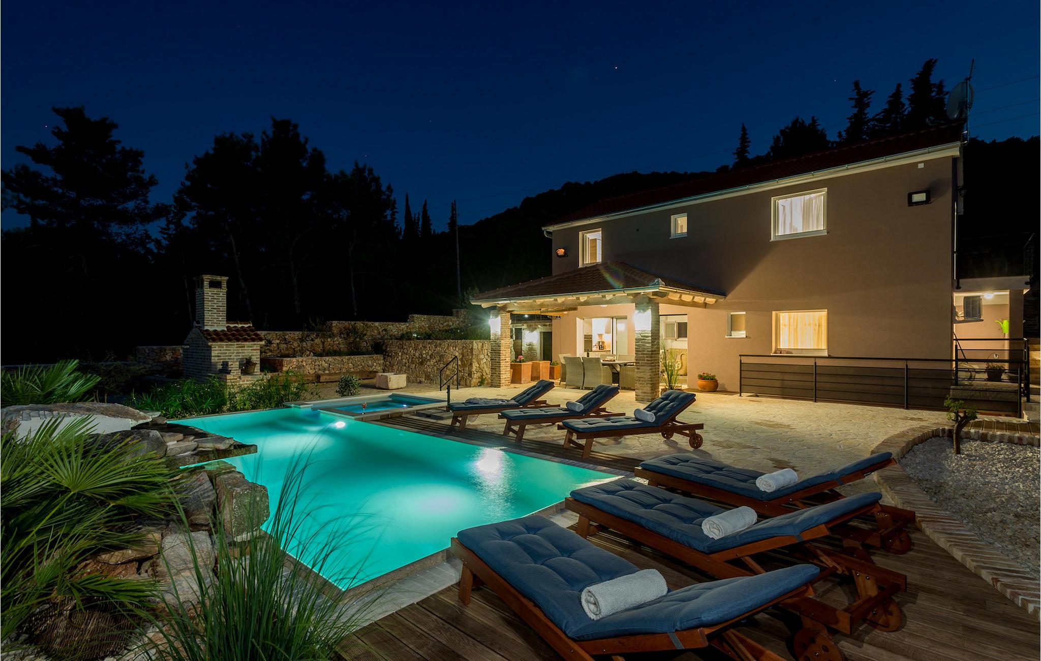 Duften af fyrretræer, en kort gåtur til havet og en luksusvilla med 3 soveværelser - hvad mere kan en person have brug for? Smukke Villa Punte Bianche ligger på øen Ugljan i Dalmatien og garanterer en skøn familieferie! På ydersiden, midt i villaens omhyggeligt plejede have, er der en dejlig pool, perfekt til varme sommerdage. Men hvis du ikke har lyst til at svømme, kan du slappe af på villaens overdækkede terrasse, der er direkte forbundet med stueetagen. Selve huset har 2 etager. I stueetagen er der en charmerende opholds- og spisestue samt et af soveværelserne med tilhørende badeværelse. De resterende to soveværelser med eget badeværelse er placeret ovenpå, på første sal. Villaen blev omhyggeligt indrettet for at sikre den bedst mulige ferie - den tilbyder værelser med aircondition, Wi-Fi, eget badeværelse, SAT TV og meget mere. Ejendommen og poolen er godt oplyst, så du kan nyde dagen og natten.