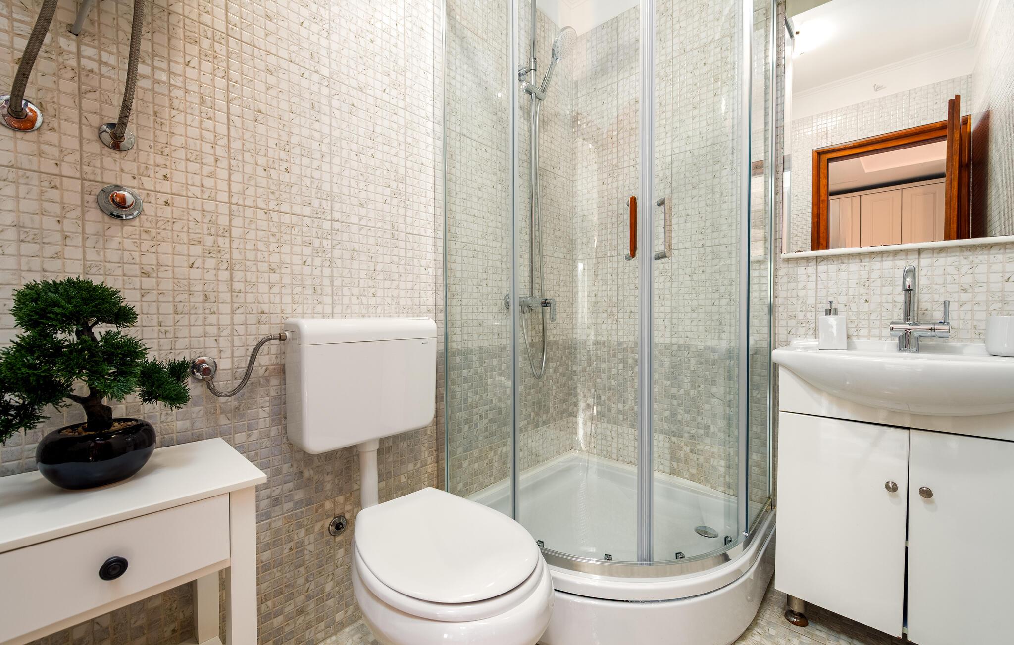 Badeværelse (nr. 1) - WC. Varmt og koldt vand. Bruser