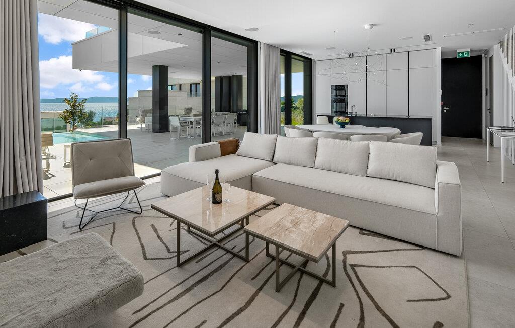Dette hus er ikke kun noget særligt på grund af sin fantastiske beliggenhed ved stranden, men også med sit moderne interiørdesign. Diskrete farver og stilfulde møbler vil hurtigt sætte jer i ferietilstand. Nyd den vidunderlige havudsigt med en kølig drink, stream en god serie eller tilbered friske måltider i det veludstyrede køkken.