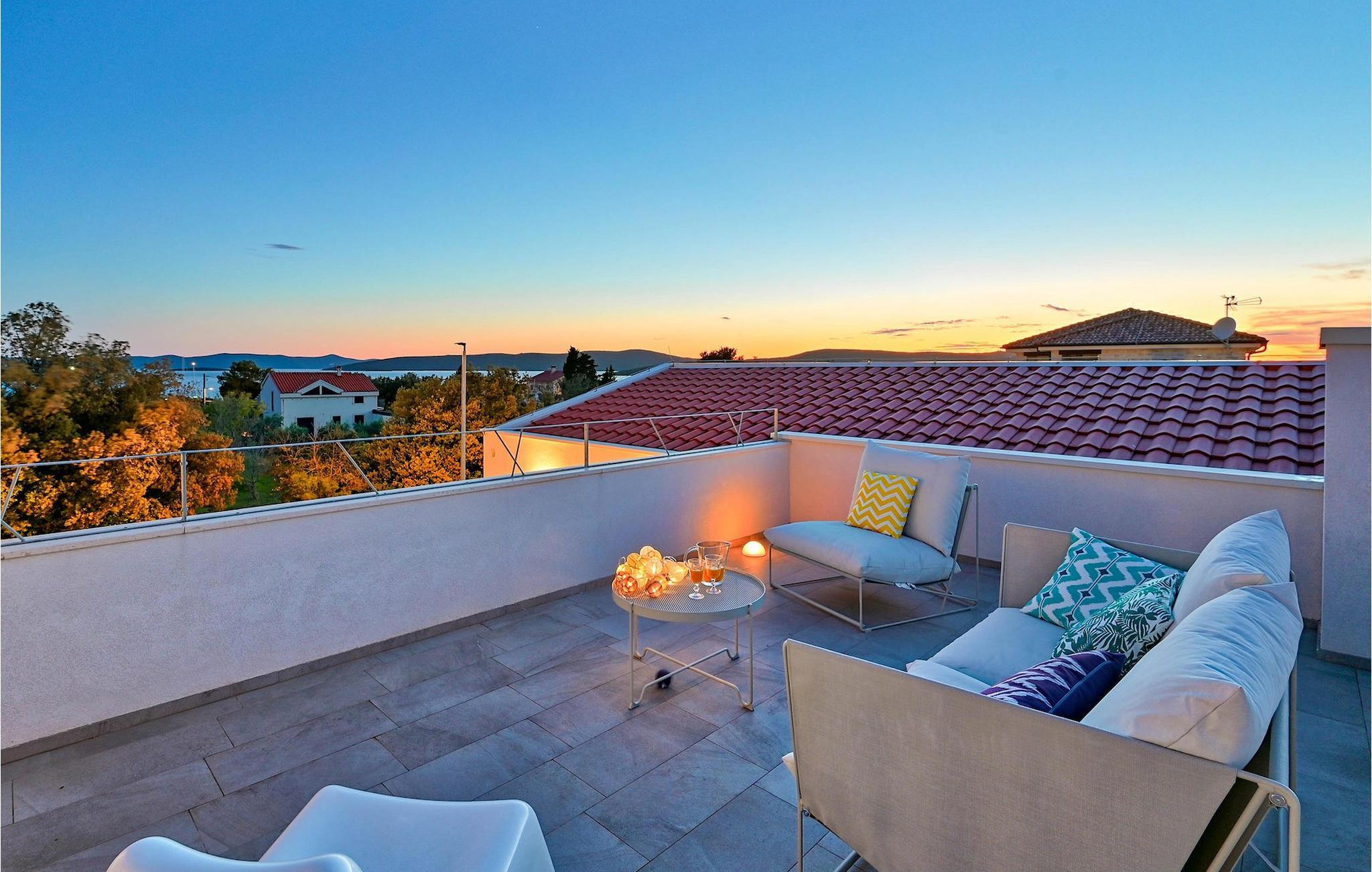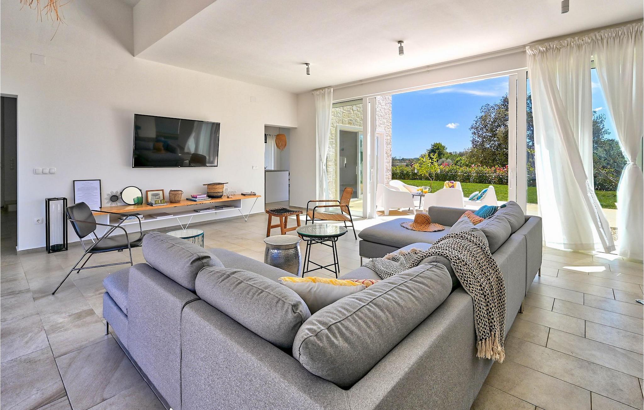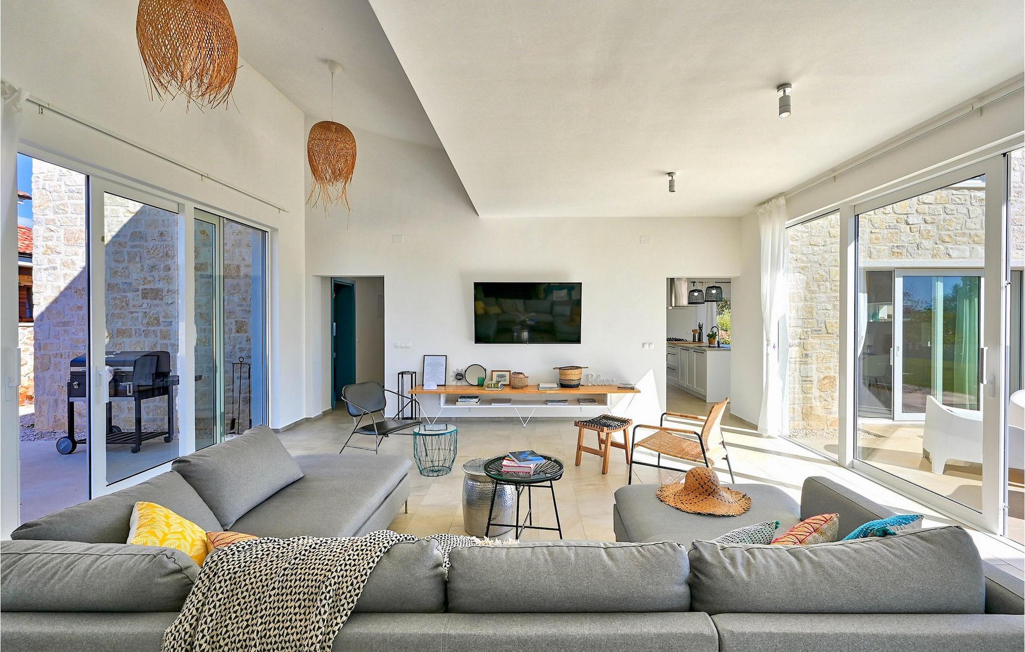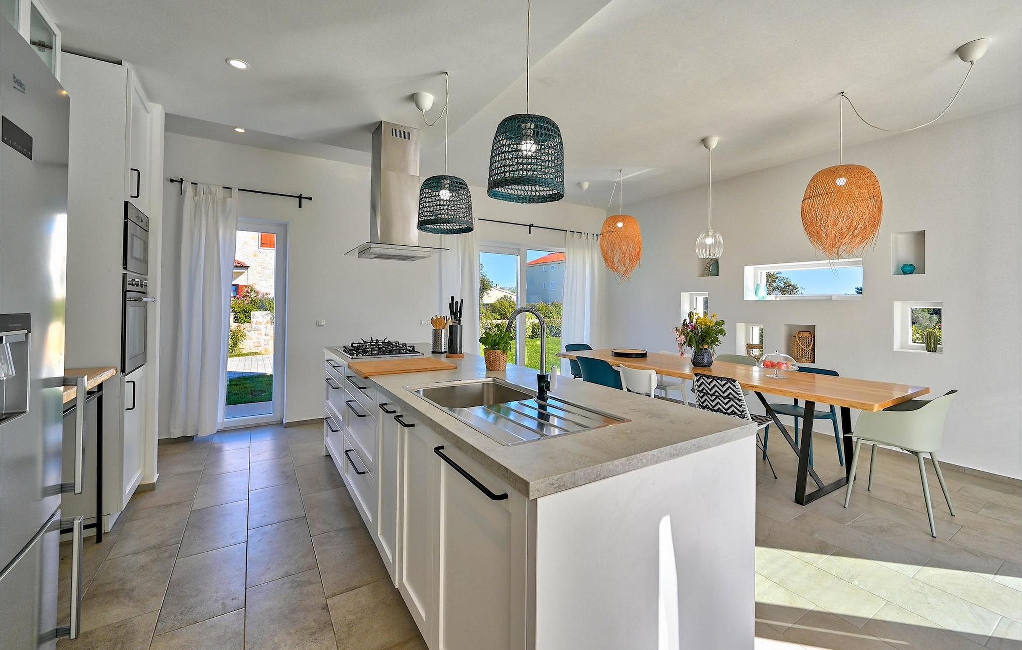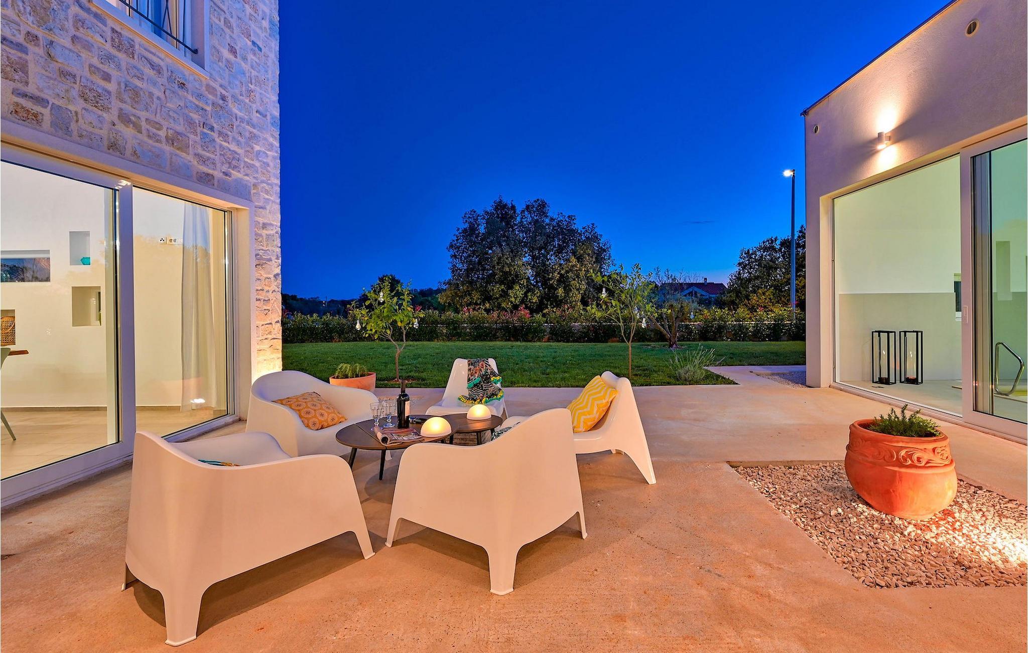 Villa Vela Muline er en smuk villa beliggende i idylliske omgivelser tæt på havet. Villa Vela Muline er virkelig speciel, da den har en opvarmet indendørs pool med store glasskydedøre, så selvom vejret er dårligt, kan du nyde at svømme. Villaen er ideel til en afslappende familieferie for op til 10 gæster. Den overordnede følelse af villaen er luftig med en masse naturligt lys. Villaen har en åbent koncept stue med et fuldt udstyret køkken og spisebord til 10 gæster i stueetagen. Den moderne indrettede stue er den centrale del af villaen, og på venstre fløj fortsætter den til wellness-zonen med indendørs pool. Mod højre fløj er den forbundet med køkkenet med spiseplads. Mellem stuen, køkkenet til højre og den indendørs pool til venstre er der et dejligt hjørne med en udendørs lounge. I venstre side af wellness er zonen et solterrasse med liggestole, så du kan arbejde på din brunfarve. I stueetagen er der også et soveværelse med eget badeværelse og et "spillerum", der fungerer som et multifunktionelt rum og kan omdannes enten til et legerum for børn, hjemmekontor eller ekstra soveværelse med sovesofa. På første sal er der yderligere 3 soveværelser med eget badeværelse, og der er en stor terrasse, der har en flot udsigt over havet og tilbyder fuldstændig privatliv. Villaen er delvist omgivet af en plejet græsplæne, som er perfekt for børn at løbe rundt eller kæledyr at lege med. Villa Vela Muline ligger i den lille landsby Muline på øen Ugljan. Ugljan er den nærmeste ø til Zadar, det kulturelle og økonomiske centrum i amtet. Det er forbundet med Zadar med mange færgelinjer og kan nås inden for 25 minutter.