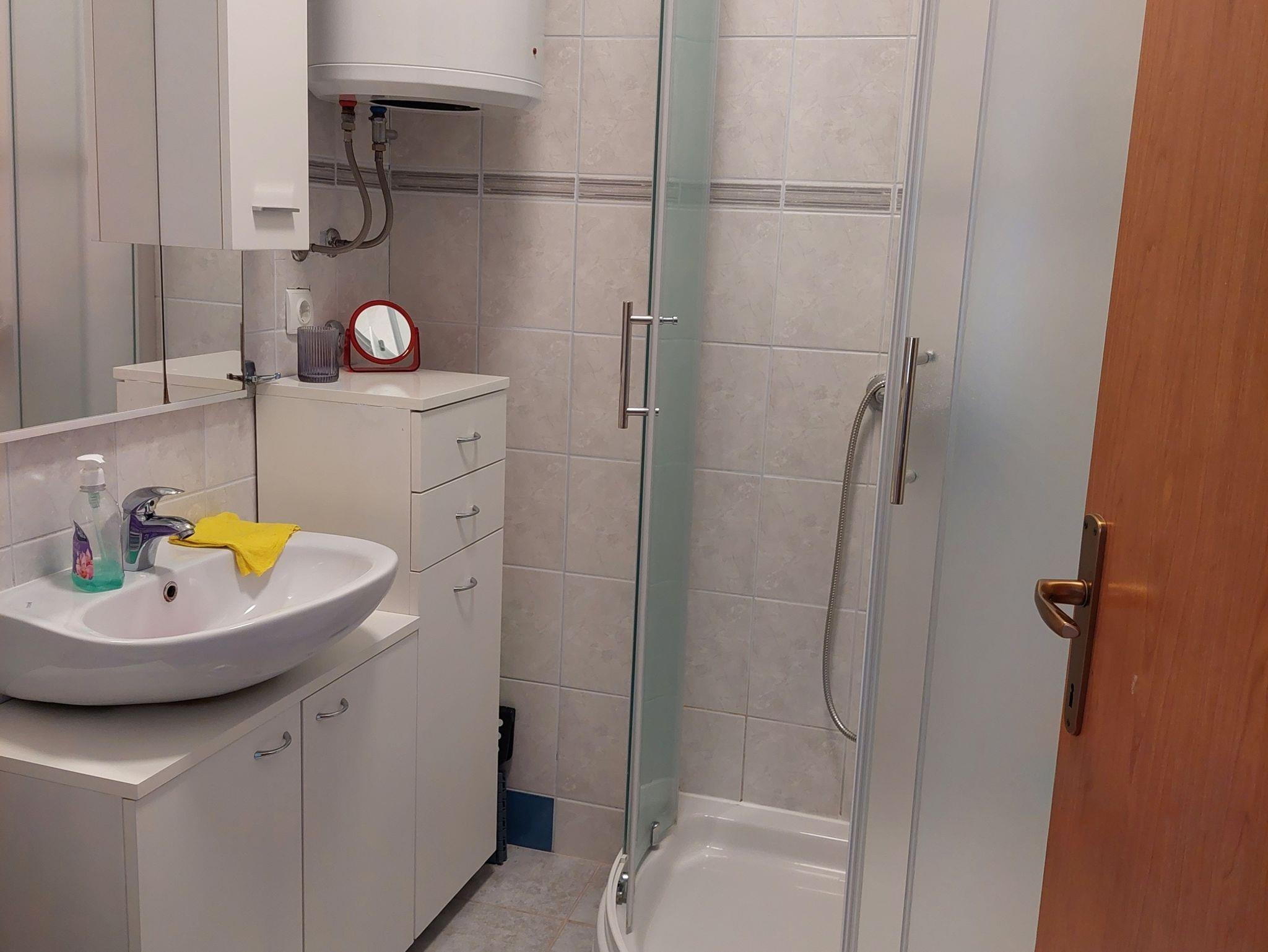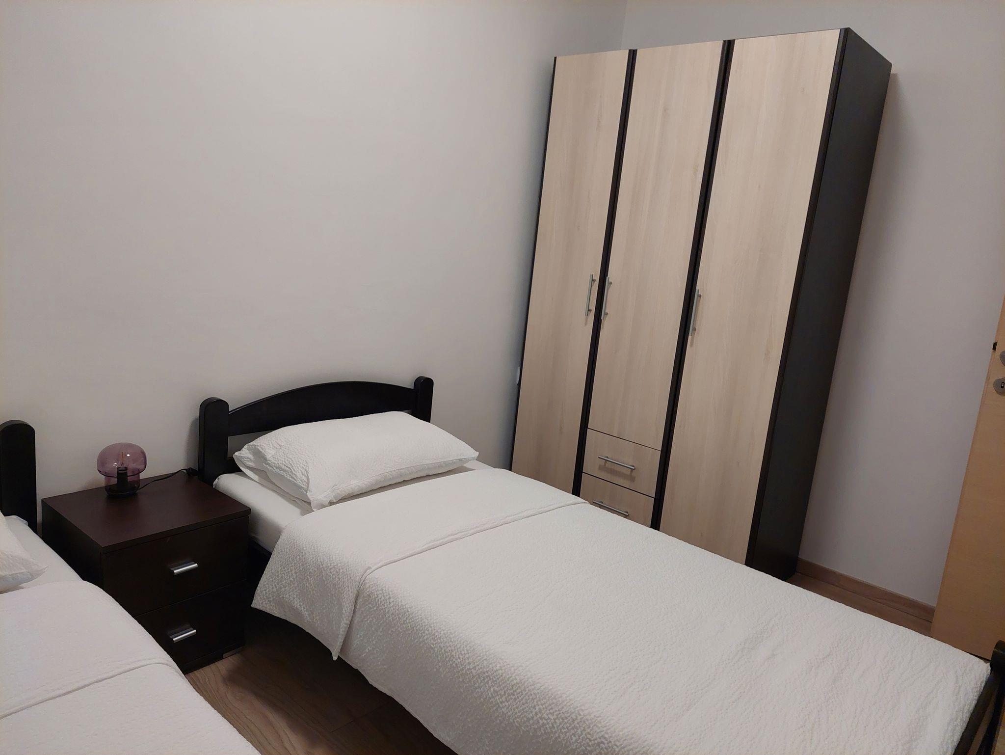 Ferienwohnung bietet Platz für 4 Gäste. Die Betten sind in Schlafzimmern, die es 2 gibt, innerhalb einer Gesamtfläche von 46m2, angeordnet. Die Gäste haben eine eigene Terrasse zur Verfügung, auf der sie in warmen Sommernächten genießen können. Es ist erlaubt, Speisen auf dem Gemeinschafts-Grill vorzubereiten. In der Unterkunftseinheit besteht die Möglichkeit des Mitbringens von Haustieren, und die Dienstleistung ist im Preis der Unterkunft enthalten. IM PREIS INBEGRIFFEN: Kurtaxe, Endreinigung, Klimatisierung, Parkplatz, Internet, Wäschewaschen, Haustiere, Kinderbett, Zusatzbett, Bügeleisen, Bügelbrett, Föhn, tragbarer Grill. VERBINDLICHE ZUSÄTZLICHE KOSTEN: Aufzahlung für Kurzaufenthalte (prozentualer Zuschlag pro Nächtigungsanzahl: 30% - 1, 20% - 2, 10% - 3). Die Verfügbarkeit zusätzlicher Dienstleistungen in Ihrem reservierten Termin und die Preise derselben (falls nicht aufgeführt) müssen im Voraus überprüft werden. Zusätzliche Dienstleistungen die in der Zahlungsaufforderung nicht aufgeführt sind werden direkt beim Vermieter bezahlt, angenommen der Gast nutzt auch diese.