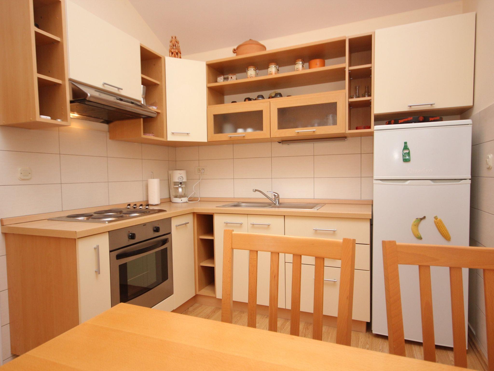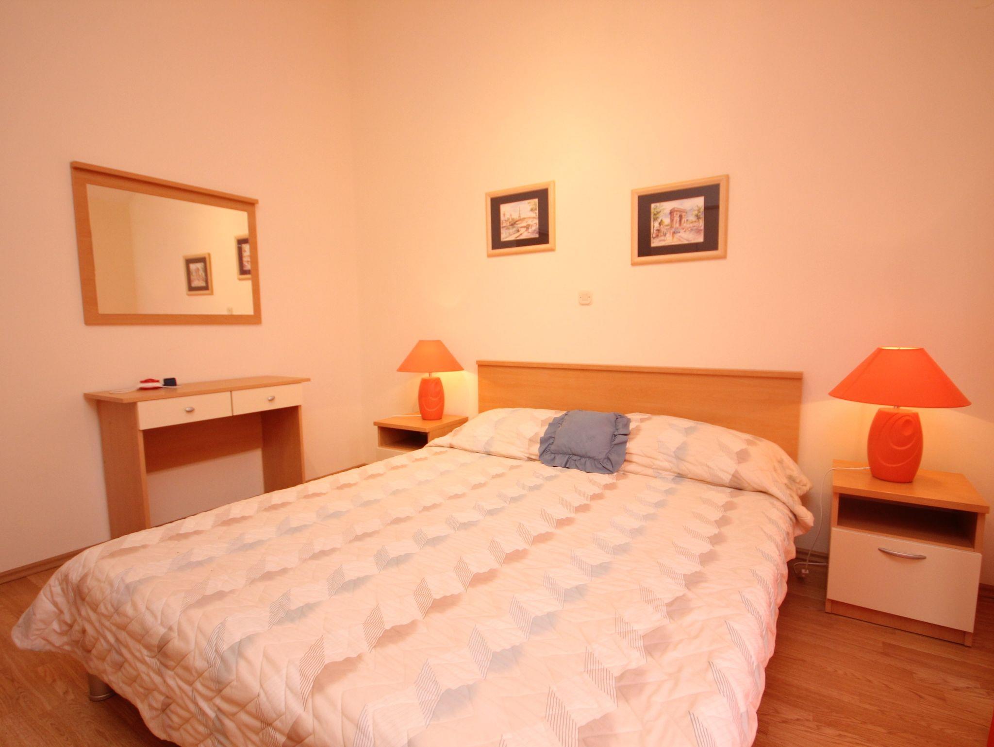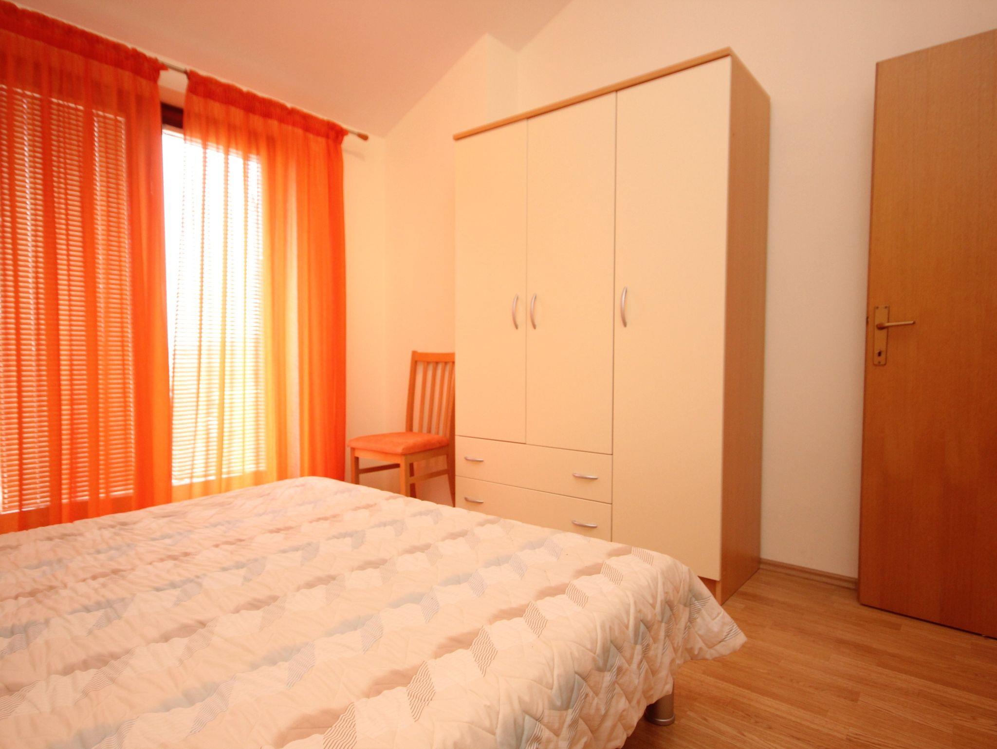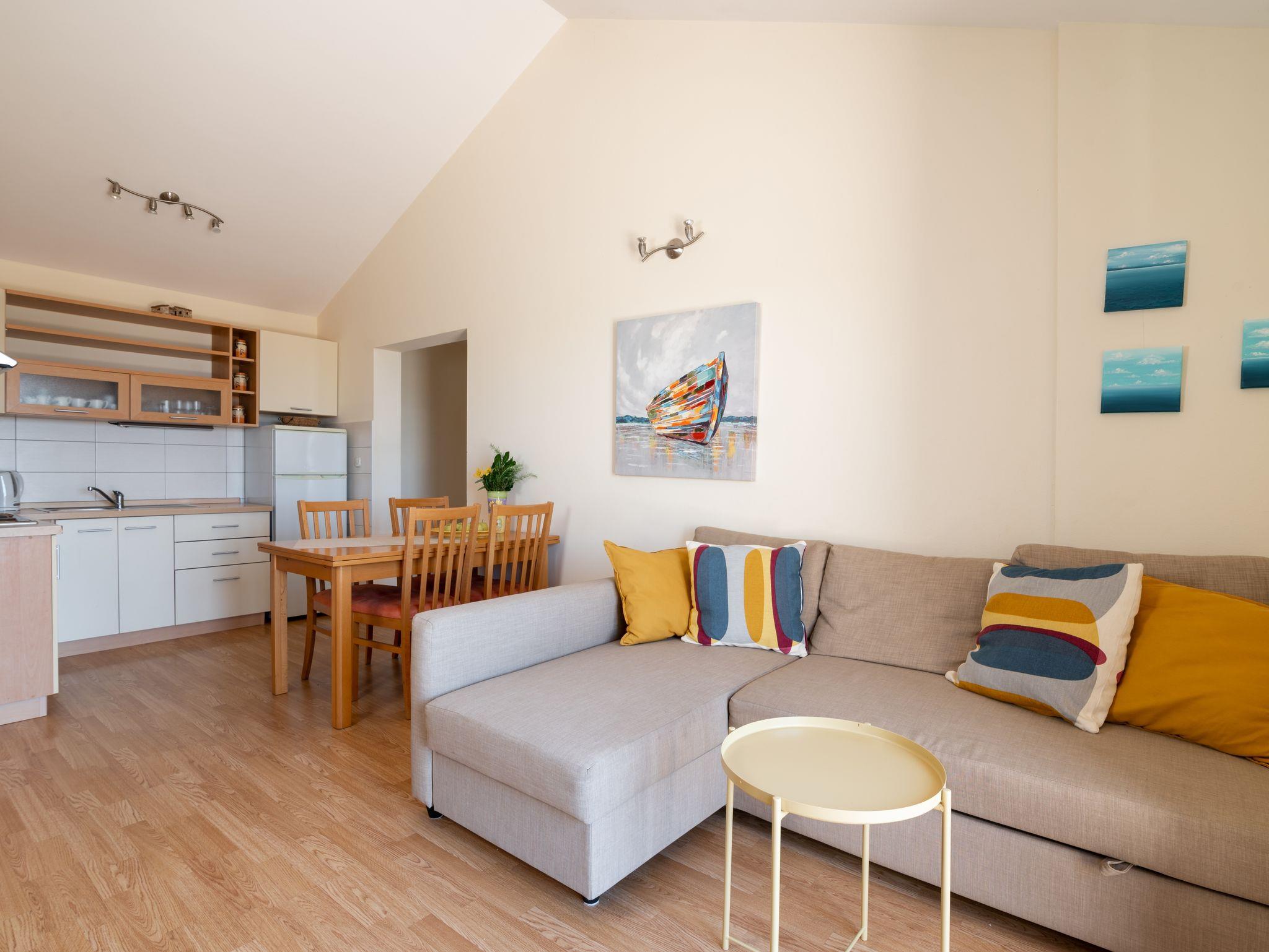 Ferienwohnung bietet Platz für 5 Gäste. Die Betten sind in Schlafzimmern, die es 2 gibt, und in Wohnzimmer, innerhalb einer Gesamtfläche von 49m2, angeordnet. Die Gäste haben eine eigene Terrasse zur Verfügung, auf der sie in warmen Sommernächten genießen können. Das Apartment bietet Meerblick. Es ist erlaubt, Speisen auf dem Gemeinschafts-Grill vorzubereiten. IM PREIS INBEGRIFFEN: Kurtaxe, Endreinigung, Klimatisierung, Parkplatz, Internet, Kinderbett. VERBINDLICHE ZUSÄTZLICHE KOSTEN: Aufzahlung für Kurzaufenthalte (prozentualer Zuschlag pro Nächtigungsanzahl: 30% - 1, 20% - 2, 10% - 3). Die Verfügbarkeit zusätzlicher Dienstleistungen in Ihrem reservierten Termin und die Preise derselben (falls nicht aufgeführt) müssen im Voraus überprüft werden. Zusätzliche Dienstleistungen die in der Zahlungsaufforderung nicht aufgeführt sind werden direkt beim Vermieter bezahlt, angenommen der Gast nutzt auch diese.