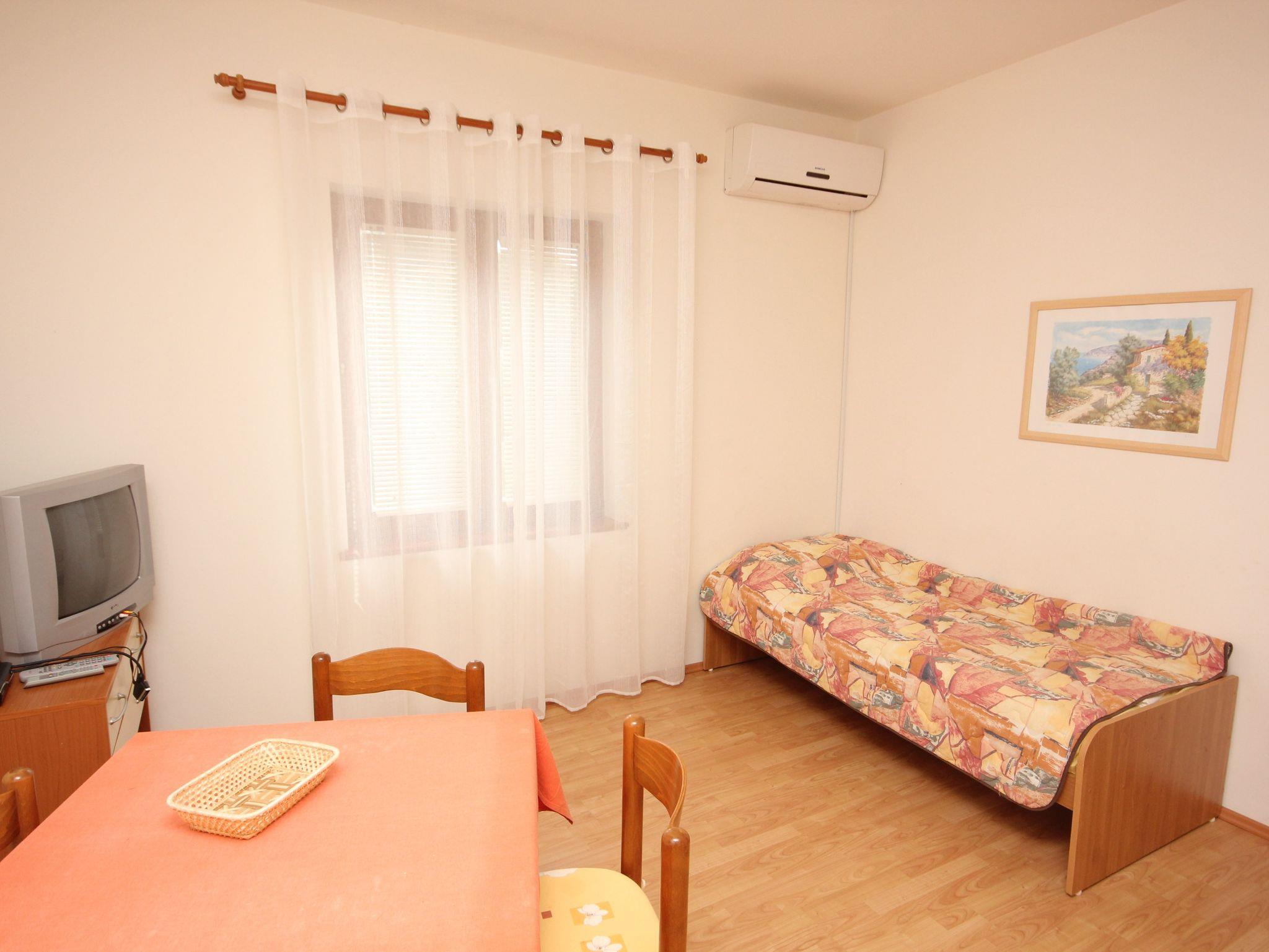 Ferienwohnung bietet Platz für 3 Gäste. Die Betten sind in Schlafzimmern, die es 1 gibt, und in Wohnzimmer, innerhalb einer Gesamtfläche von 30m2, angeordnet. Die Gäste haben eine eigene Terrasse zur Verfügung, auf der sie in warmen Sommernächten genießen können. Es ist erlaubt, Speisen auf dem Gemeinschafts-Grill vorzubereiten. IM PREIS INBEGRIFFEN: Kurtaxe, Endreinigung, Klimatisierung, Parkplatz, Internet, Kinderbett. VERBINDLICHE ZUSÄTZLICHE KOSTEN: Aufzahlung für Kurzaufenthalte (prozentualer Zuschlag pro Nächtigungsanzahl: 30% - 1, 20% - 2, 10% - 3). Die Verfügbarkeit zusätzlicher Dienstleistungen in Ihrem reservierten Termin und die Preise derselben (falls nicht aufgeführt) müssen im Voraus überprüft werden. Zusätzliche Dienstleistungen die in der Zahlungsaufforderung nicht aufgeführt sind werden direkt beim Vermieter bezahlt, angenommen der Gast nutzt auch diese.