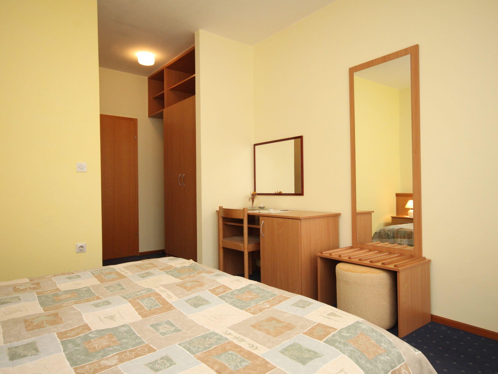 Zimmer bietet Platz für 2 Gäste. Die Betten sind in Schlafzimmern, die es 1 gibt, innerhalb einer Gesamtfläche von 18m2, angeordnet. Die Gäste haben einen eigenen Balkon zur Verfügung, auf der sie in warmen Sommernächten genießen können. Die reservierte Unterkunftseinheit ist ein Zimmer mit eigenem Badezimmer ohne die Möglichkeit der Nutzung einer Küche. IM PREIS INBEGRIFFEN: Endreinigung, Parkplatz, Internet, Bootsanlegeplatz, Föhn. VERBINDLICHE ZUSÄTZLICHE KOSTEN: Kurtaxe (Erwachsene 0,93 € - 1,50 € Nacht/Person, Kinderermäßigung 12 - 17 Jahre), Aufzahlung für Kurzaufenthalte (prozentualer Zuschlag pro Nächtigungsanzahl: 30% - 1, 20% - 2, 10% - 3). UNVERBINDLICHE ZUSÄTZLICHE KOSTEN: Frühstück (14,00 €, 50% Nachlass für Kinder zwischen 4 und 12 Jahren, Kinder bis 4 Jahre sind frei.). Die Verfügbarkeit zusätzlicher Dienstleistungen in Ihrem reservierten Termin und die Preise derselben (falls nicht aufgeführt) müssen im Voraus überprüft werden. Zusätzliche Dienstleistungen die in der Zahlungsaufforderung nicht aufgeführt sind werden direkt beim Vermieter bezahlt, angenommen der Gast nutzt auch diese. Ermäßigung auf den Grundpreis: Gratistag 14=13 (bei einem Aufenthalt von 14 Tagen oder mehr erhalten Sie einen Gratistag für den Aufenthalt bis 31.12.26).