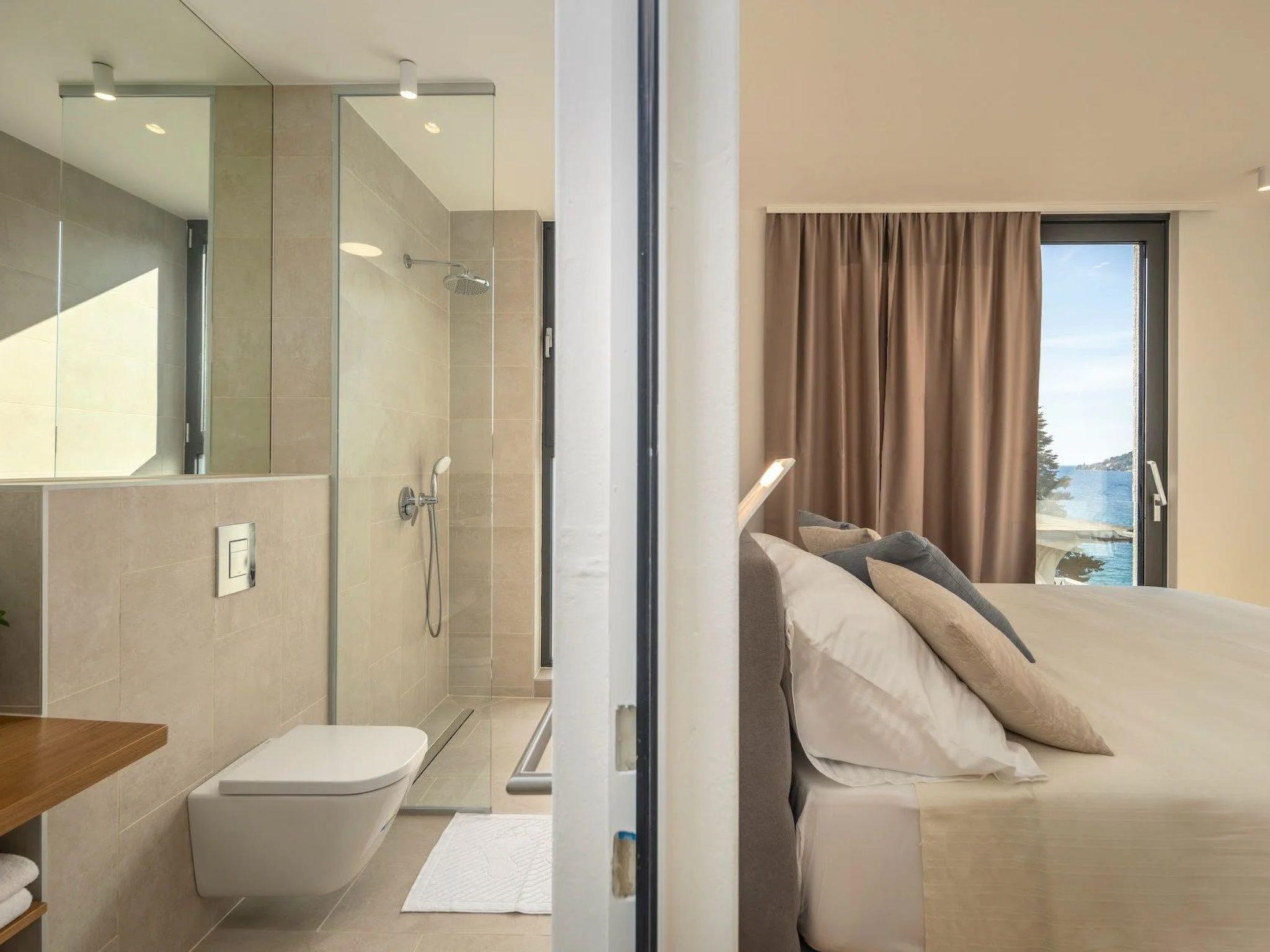 The exterior of the house is just as impressive as its interiors. The highlight is undoubtedly the private infinity pool, a haven for relaxation and enjoyment, flanked by sun loungers for basking in the sun. The terrace offers an al fresco dining area with a BBQ, perfect for enjoying meals under the shade. The garden, reserved solely for the guests' use, houses a children's playground, adding delight for younger visitors.