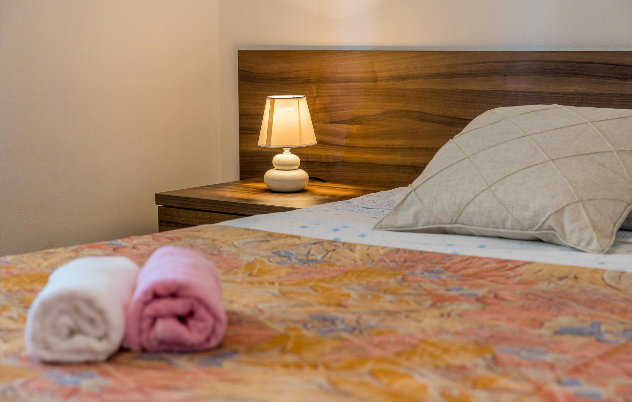 De to soveværelser er begge udstyret med dobbeltsenge, så lejligheden kan rumme fire personer. Boligen er enkelt og funktionelt indrettet og tilbyder alt, hvad I behøver for en vellykket ferie. Her kan I bo når som helst på året, for selv om sommeren er der en behagelig temperatur takket være klimaanlægget.