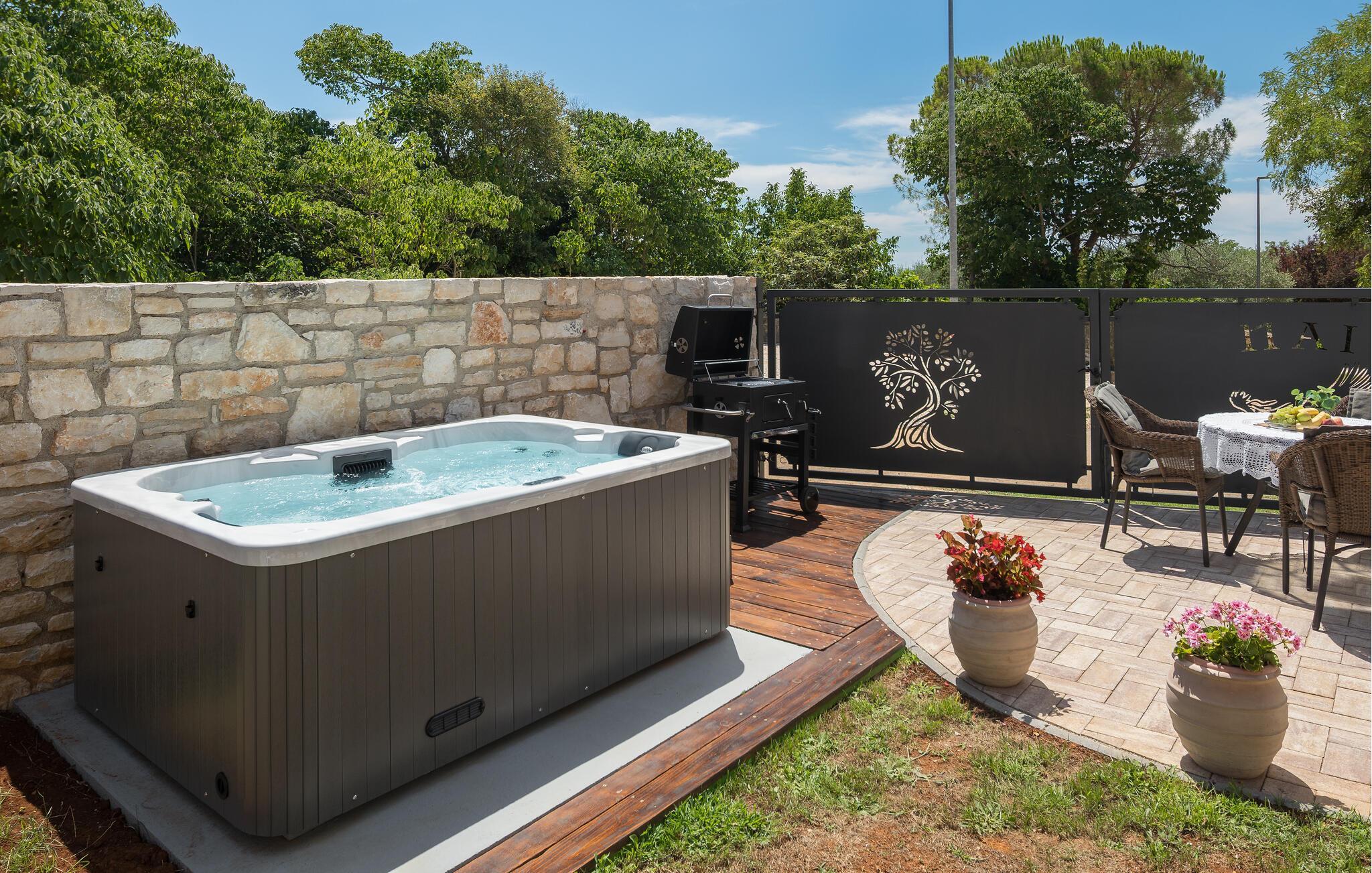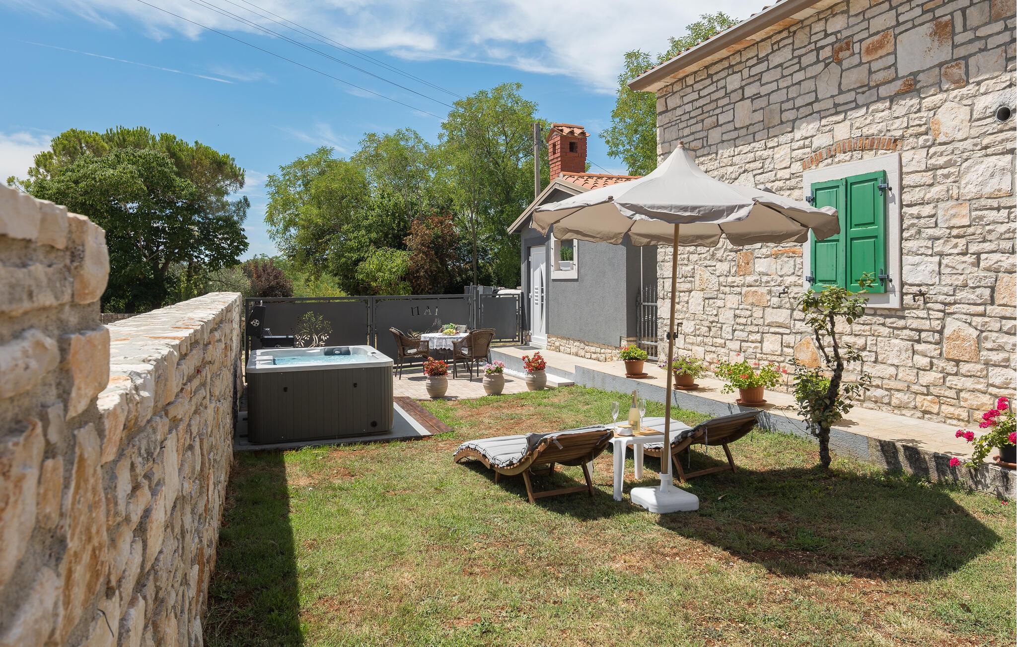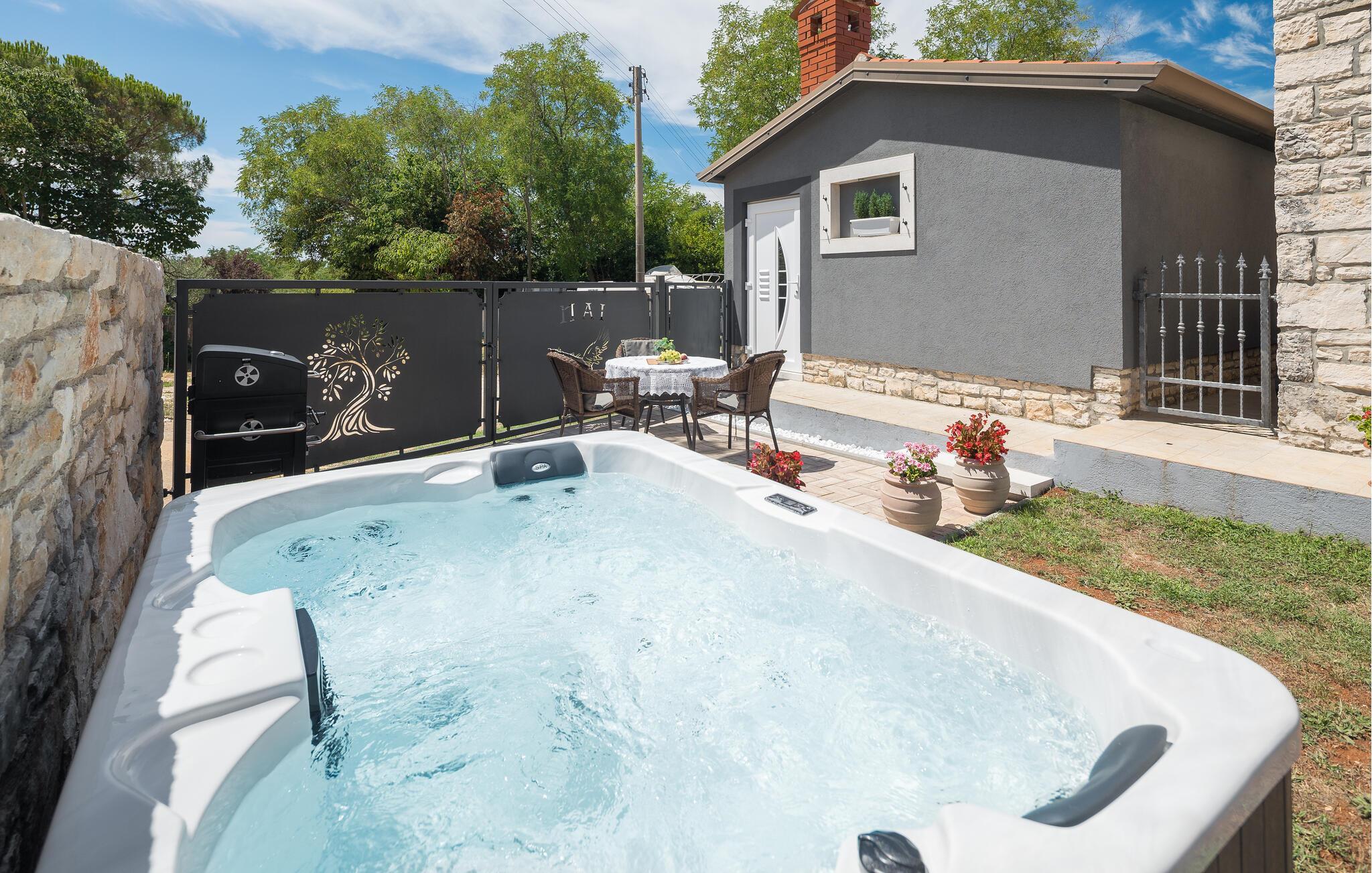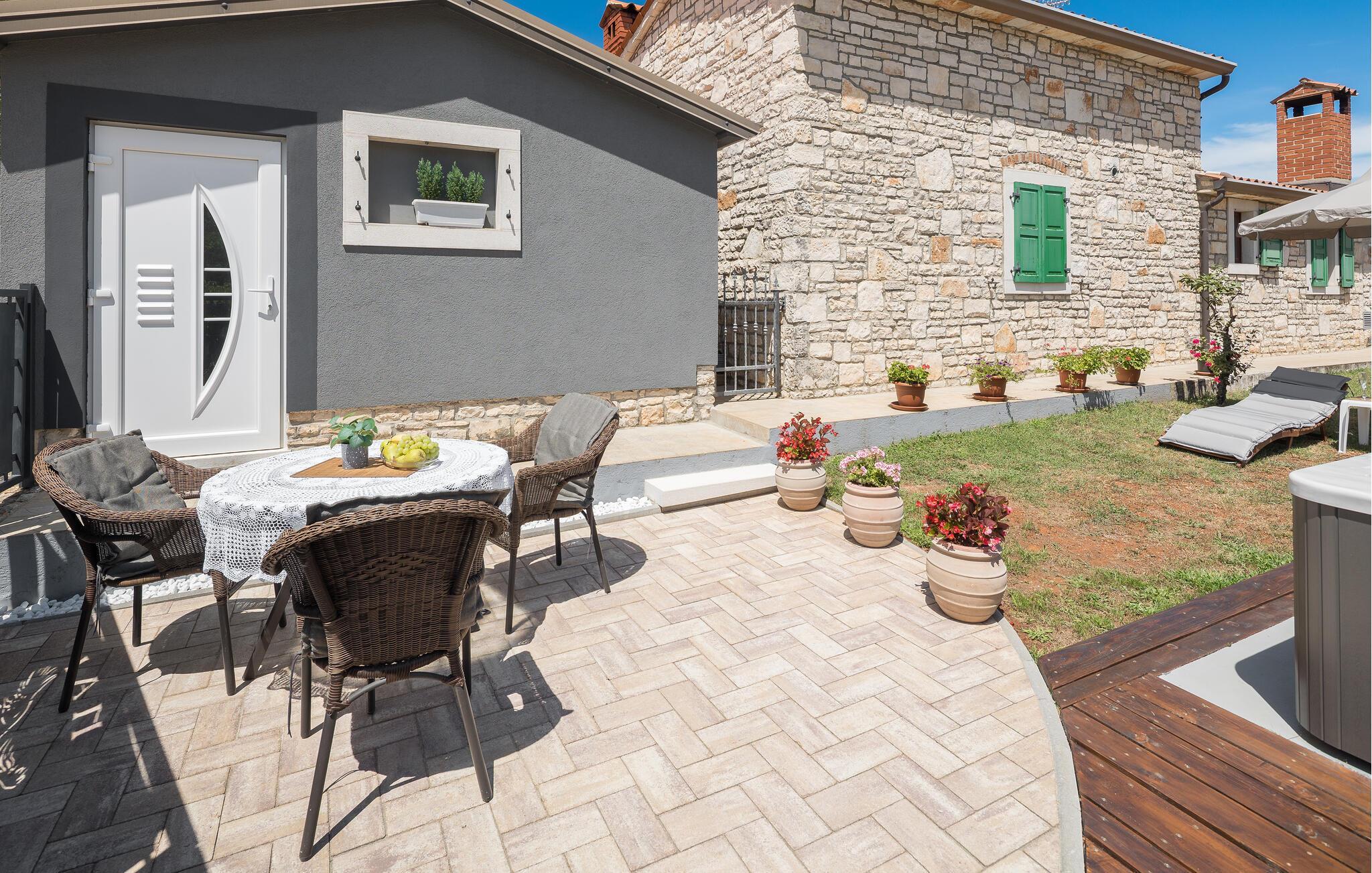 Oplev en uforglemmelig ferie i dette idyllisk beliggende feriehus med spabad. I dette komfortabelt møblerede hus kombineres tidløst design og hygge for at skabe en afslappende atmosfære. Diskrete farver, et moderne køkken og et tv skaber en atmosfære, hvor I hurtigt kan slappe af. Uanset om I laver mad sammen, slapper af med en drink eller nyder en hyggelig filmaften – her finder I de perfekte rammer for afslappende dage. Gå udenfor om morgenen og tag en forfriskende dukkert i spabadet. Nyd udsigten over det smukke landskab, og slap derefter af i solen med en kølig drink. Om aftenen er haven det ideelle sted til en afslappende grillfest under stjernerne. Tilbring afslappende timer på de nærliggende strande, hvor klart vand og lavvandede indsejlinger inviterer til at svømme. Udforsk området omkring Murine på cykel eller på en gåtur gennem olivenlunde og vinmarker. Oplev den charmerende kystby Umag med dens marina, historiske bygninger og indbydende caféer langs promenaden. Lad jer forkæle på de lokale restauranter og nyd regionale specialiteter fra Istrien.