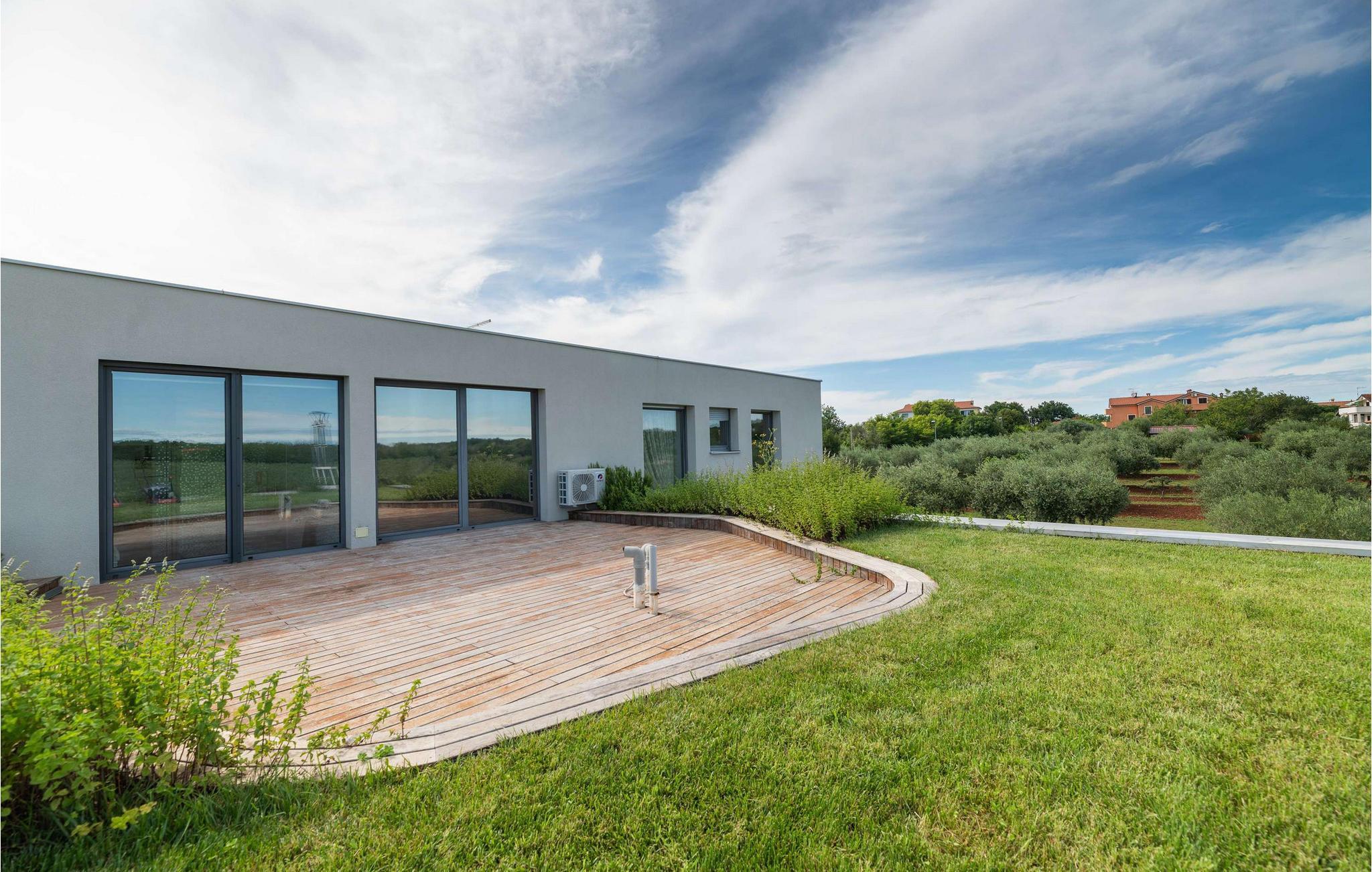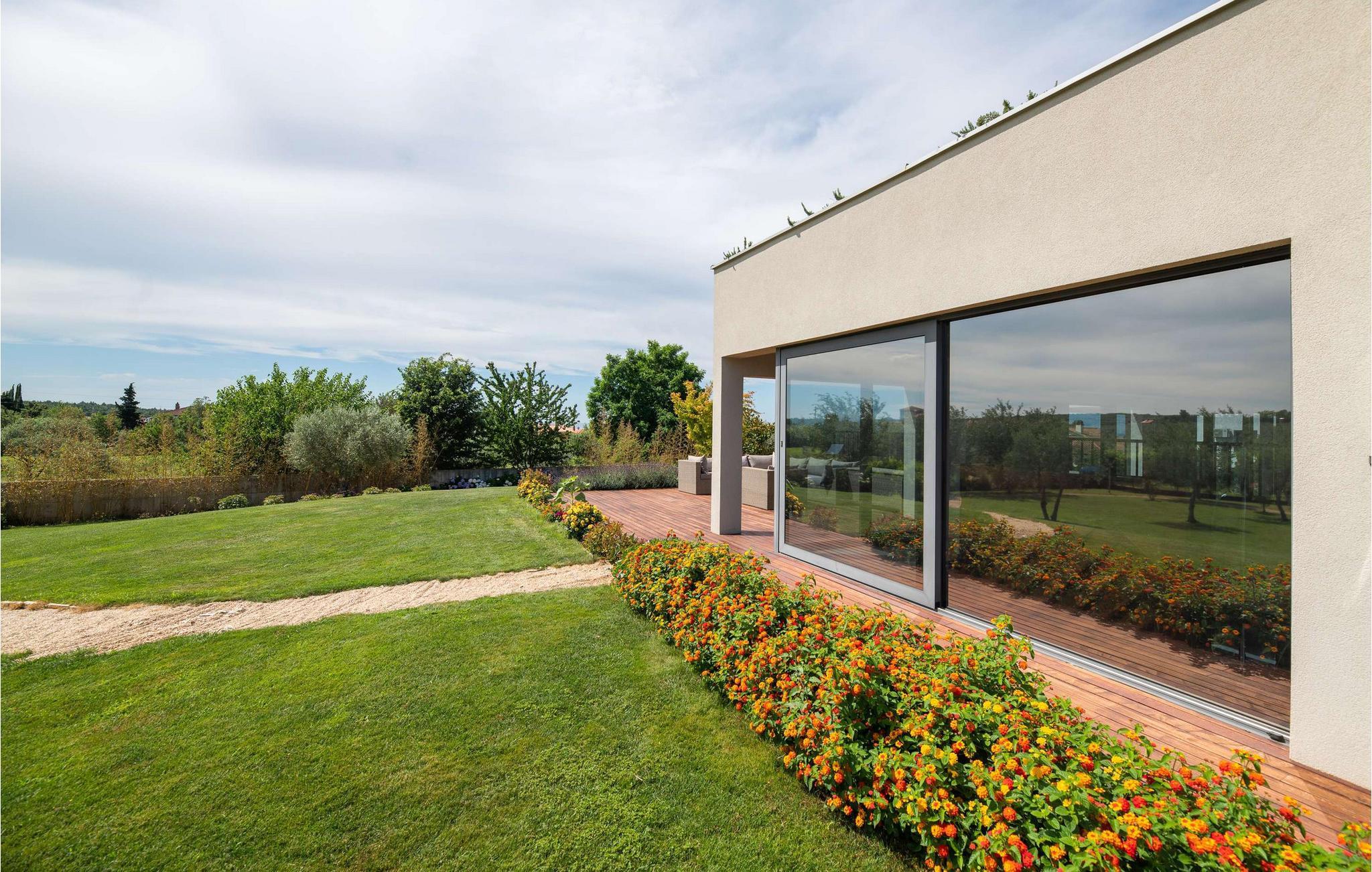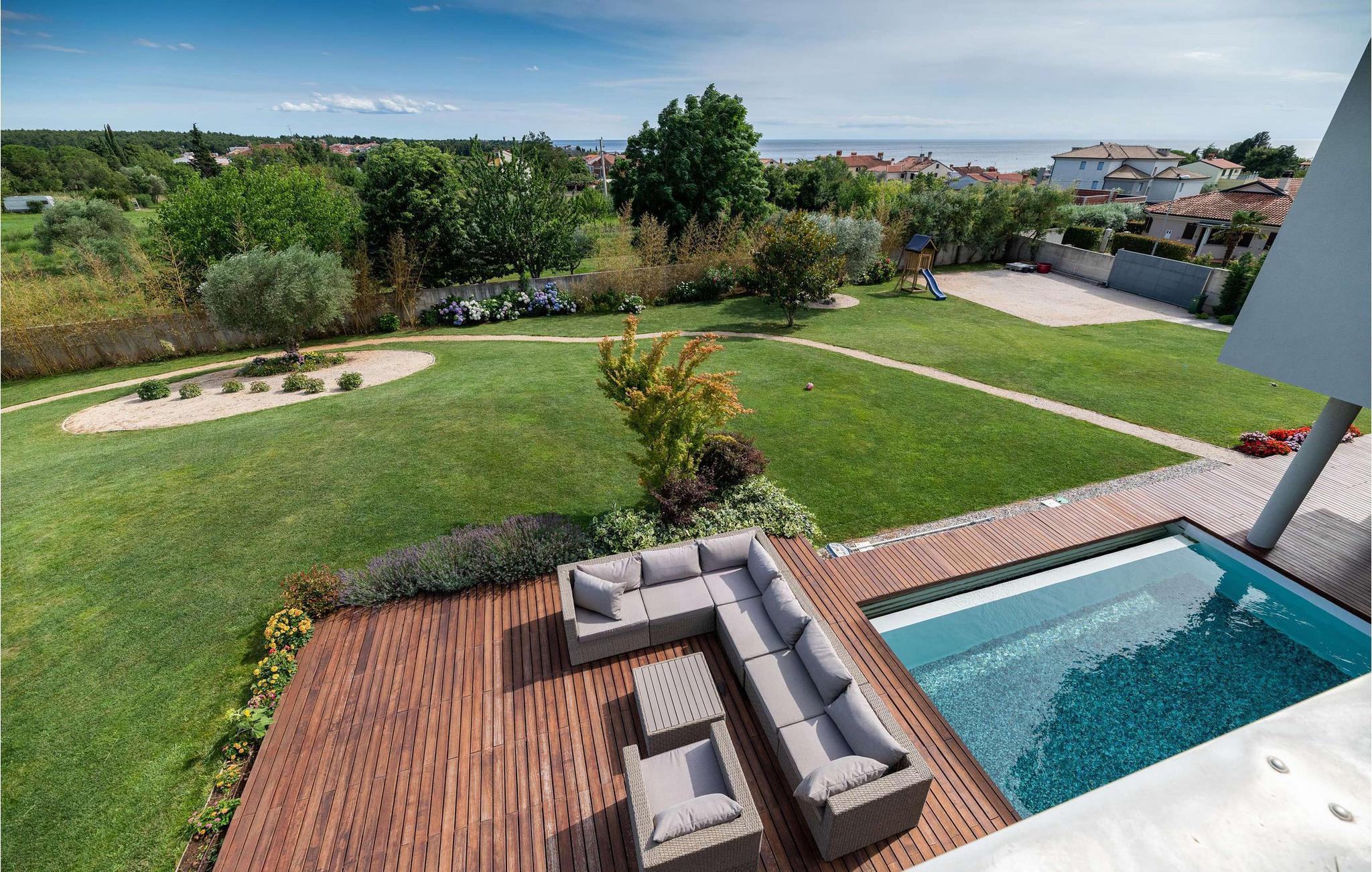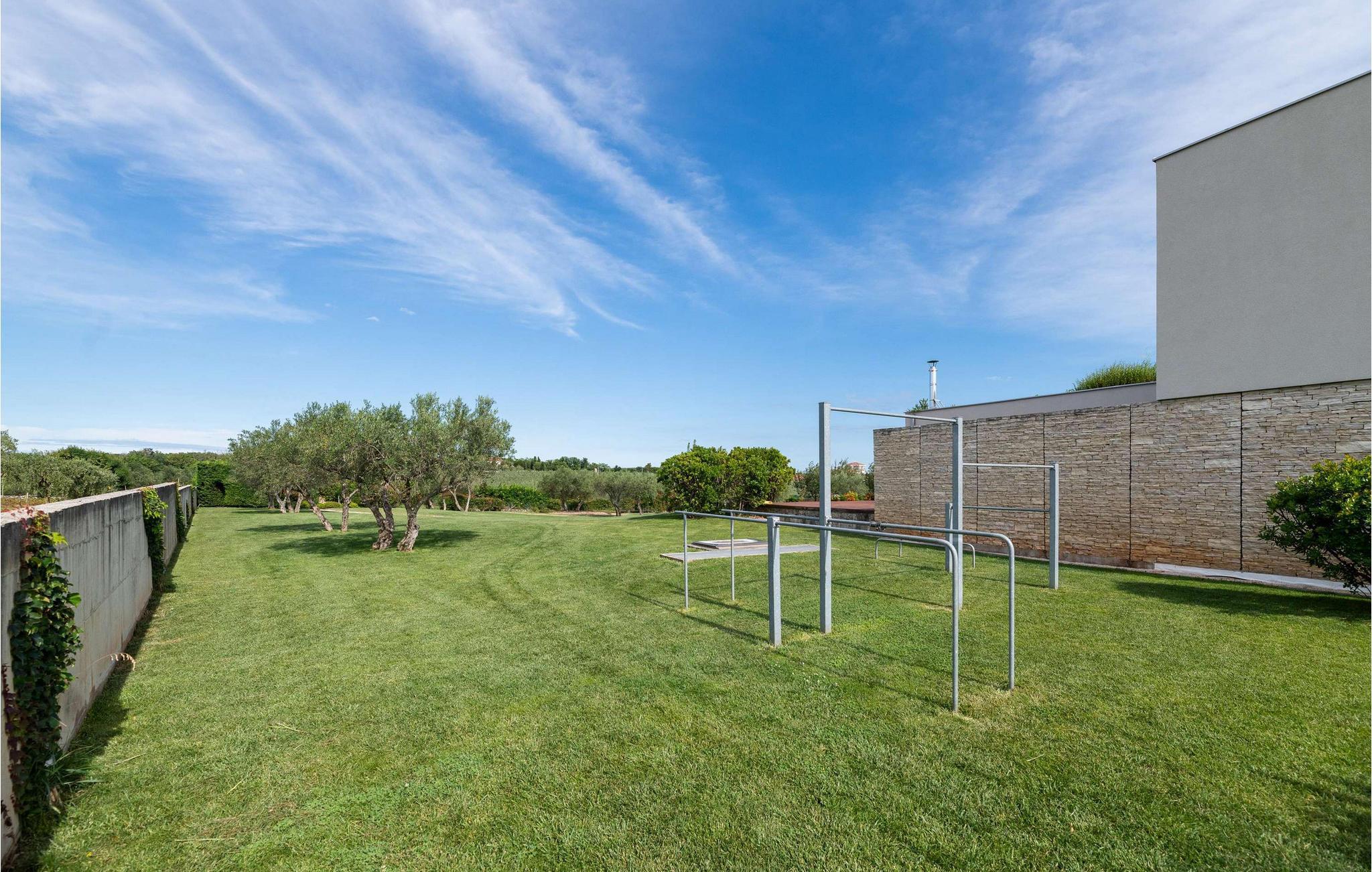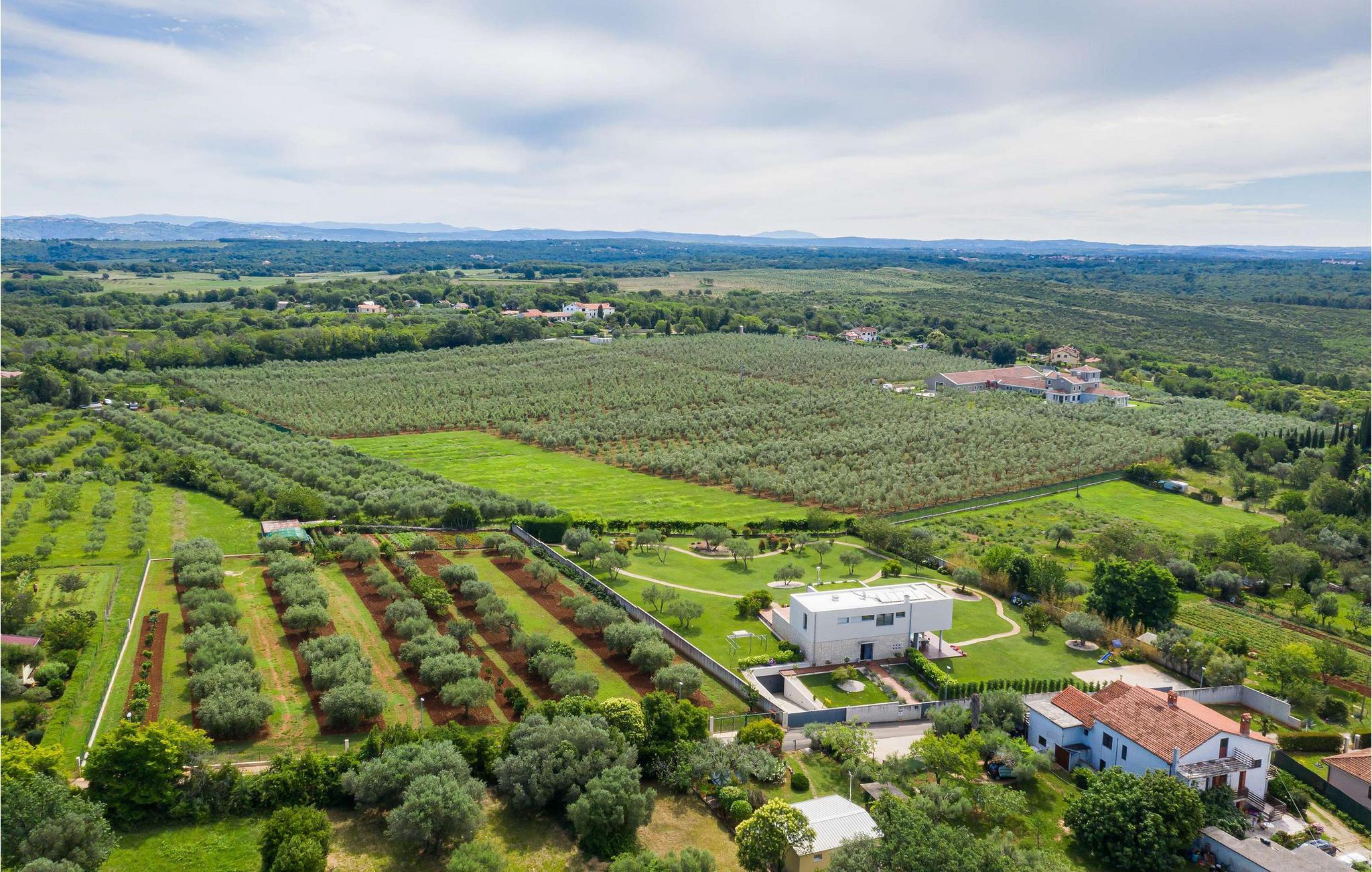 Villa Cantera ligger i Istrien, i Savudrija, der er kendt som en lille fiskerlandsby med en rig historie. Det blev første gang hørt om i 1100-tallet, og arkæologiske fund viser, at området var beboet allerede i stenalderen. Savudrija er et sted, hvor lokale og udenlandske gæster kan nyde et behageligt klima, hvile, svømme og solbade. Hvis du ønsker at give dig selv og din familie en glad og fornøjelig ferie, så er Villa Cantera noget for dig! Villaen blev bygget i 2015 i moderne stil, har aircondition og tilbyder gæsterne 400 m2 boligareal og utrolige 5000 m2 samlet jord, der kan kendes på de mange grønne områder, steder at slappe af, lege eller solbade. Det er 600 m væk fra nærmeste hav og strand og kun 400 m fra nærmeste restaurant og cafe, hvor du kan nyde lækre sommercocktails. Under opholdet har gæsterne stueetagen og første sal til deres rådighed, villaen kan højst rumme 8 personer. En rummelig stue med hjørnesofa, sofabord, tv, taburetter og en romantisk pejs venter på dig i stueetagen. Fra stuen kan du nyde en afslappende udsigt over den grønne have og oliventræer. Et karakteristisk træk ved Villa Cantera er biografrummet, et rum, hvor børn og voksne kan more sig med at se interessante filmtitler eller tegnefilm for børn. I biografsalen er der bord, to sækkestole, hjemmebiograf og hjørnesofa. Det moderne udstyrede og smukt indrettede køkken er udstyret med alt hvad du behøver for at tilberede måltider. Nær køkkenet er der spisestue med spisebord til 8 personer. I stueetagen af villaen er der et soveværelse med eget brusebad og ovenpå tre yderligere soveværelser med dobbeltsenge og eget bruserum, et med badekar. Villa Cantera har havudsigt fra det ene soveværelse og fra terrassen ovenpå. Den udendørs terrasse vil glæde dig fuldstændigt takket være den opvarmede pool på 45 m2 og en dybde på 1,3 m - 1,7 m. Yderligere udstyr til poolen er et vandfald og ved siden af poolen er der 8 liggestole. Du kan også tilberede lækre måltider på den udendørs grill på kul eller træ og smage dem ved det overdækkede spisebord. Villa Cantera har en smukt anlagt have og gårdhave, masser af farverige blomster og et opholdsområde, der er ideelt til morgenkaffen eller en social aften. Uanset hvor du vender dig, vil du være omgivet af grønne områder, der byder på en særlig oplevelse. Børn nyder bordtennis og trampoliner, mens ældre kan smage lækre dråber af topkvalitetsvine i vinkælderen. Som ekstraudstyr har du en vaskemaskine, en tørretumbler og et strygejern til din rådighed, og du kan også bruge en babyseng og en foderautomat, hvis de små kommer med. Villaen har også to separate toiletter. Villaen er helt indhegnet og byder på 6 private parkeringspladser i gården. Blandt attraktioner og lokale aktiviteter til din rådighed er vinture, olivenolieture, strande, cykling, et vandland og vandsport. Savudrijas klippekyst har små stenstrande og er omgivet af rig middelhavsvegetation (palmetræer, cypresser og forskellige typer stedsegrønne buske). Det specielle ved dette sted er, at forholdet mellem plante- og havaerosol i luften favoriserer det sundhedsfremmende klima i Savudrija, hvorfor det også er kendt for sundhedsturisme. Hav det sjovt med at spille tennis eller golf eller udforske havbunden i det rene og klare Adriaterhav. Der er også mulighed for at prøve windsurfing, fordi havet omkring Savudrija-halvøen byder på fremragende forhold: næsten konstant vind, nem adgang til havet og behagelige temperaturer. Villa Cantera er ideel for dem, der leder efter absolut ro, den er omgivet af olivenlunde rundt omkring og er meget tæt på byen, hvis du har brug for butikker eller markeder. Der er et ridecenter kun 2 km fra villaen, som kunne være interessant for børn, og en dykkerskole ligger 3 km fra villaen. Derudover ligger huset 16 km fra Kaštel grænseovergangen til Slovenien. Bring minderne tilbage fra en vidunderlig ferie på Villa Cantera! Poolopvarmning er tilgængelig på anmodning og fra 01/05. ledig. indtil 01.10 betales lokalt mod betaling. Kæledyr er tilladt på denne ejendom efter ejerens skøn eller mod et gebyr.