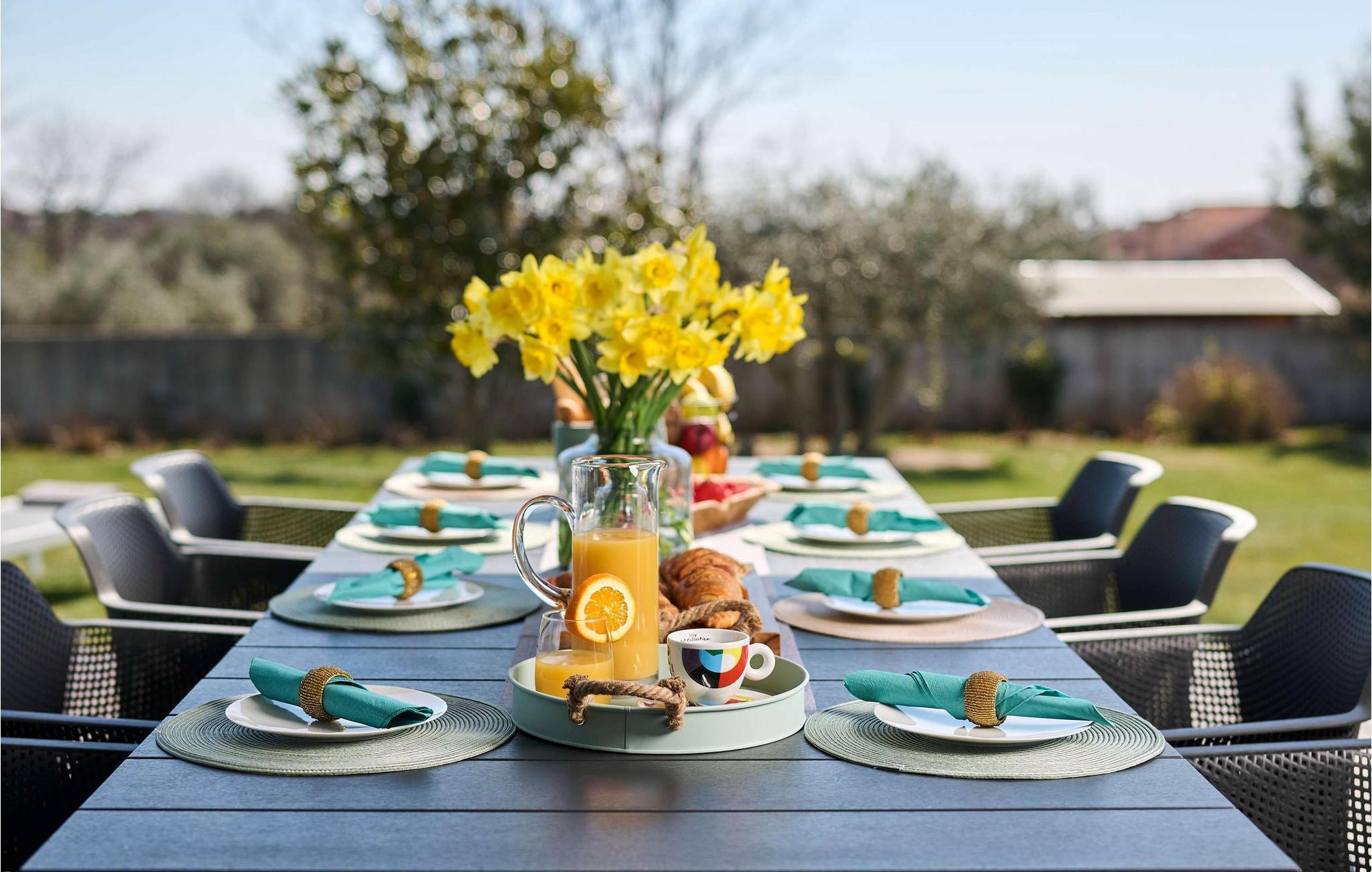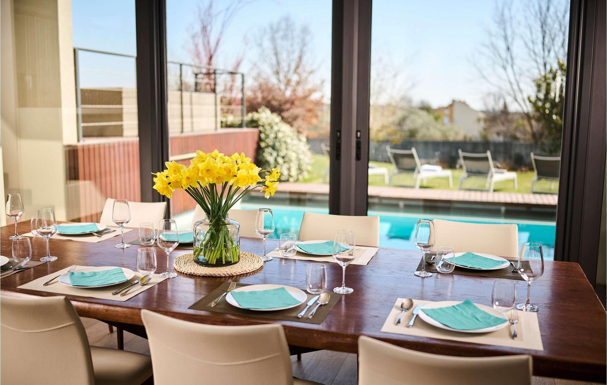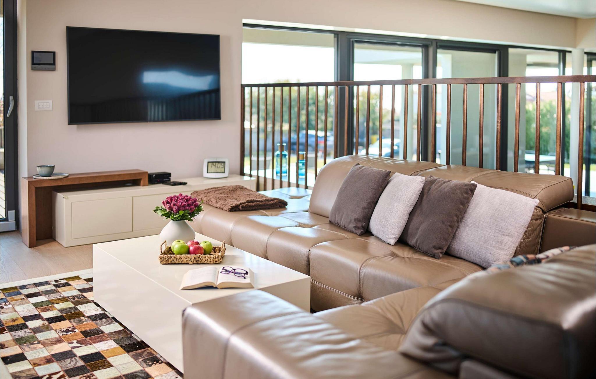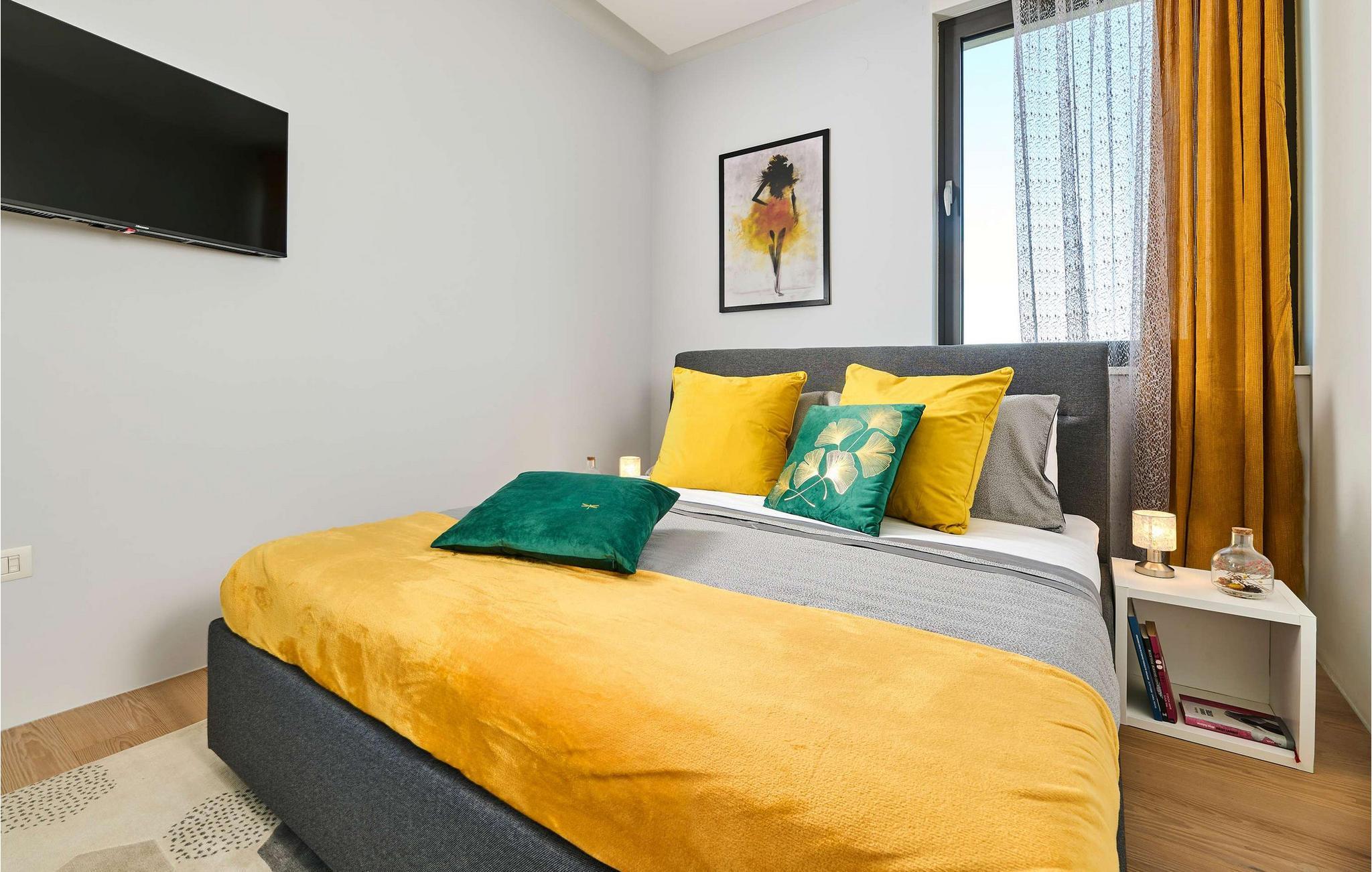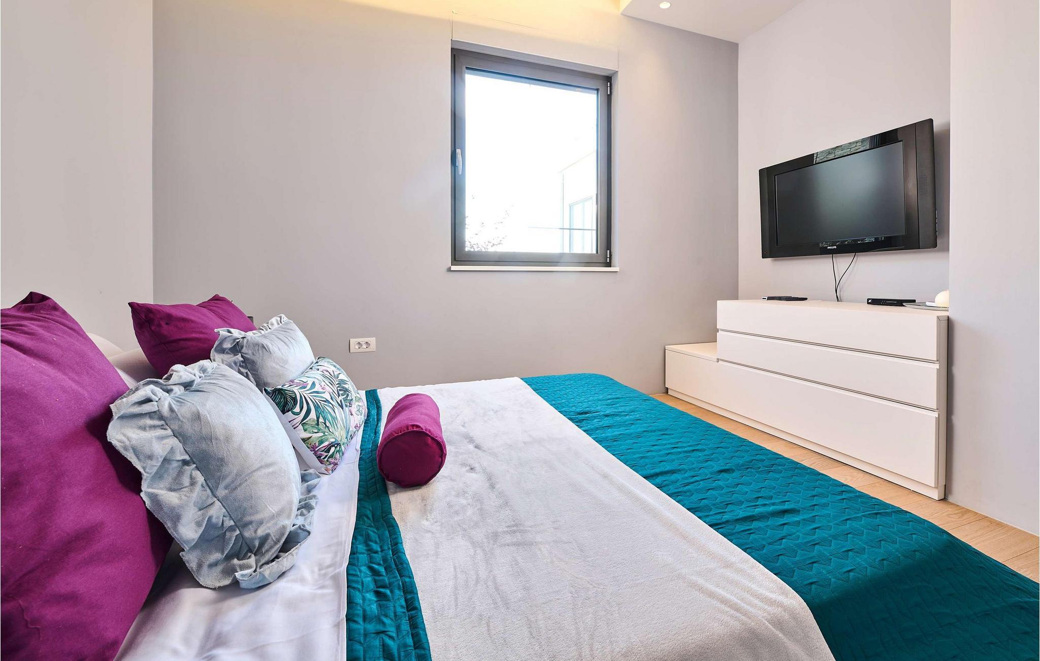 Villa Cantera ligger i Istrien, i Savudrija, der er kendt som en lille fiskerlandsby med en rig historie. Det blev første gang hørt om i 1100-tallet, og arkæologiske fund viser, at området var beboet allerede i stenalderen. Savudrija er et sted, hvor lokale og udenlandske gæster kan nyde et behageligt klima, hvile, svømme og solbade. Hvis du ønsker at give dig selv og din familie en glad og fornøjelig ferie, så er Villa Cantera noget for dig! Villaen blev bygget i 2015 i moderne stil, har aircondition og tilbyder gæsterne 400 m2 boligareal og utrolige 5000 m2 samlet jord, der kan kendes på de mange grønne områder, steder at slappe af, lege eller solbade. Det er 600 m væk fra nærmeste hav og strand og kun 400 m fra nærmeste restaurant og cafe, hvor du kan nyde lækre sommercocktails. Under opholdet har gæsterne stueetagen og første sal til deres rådighed, villaen kan højst rumme 8 personer. En rummelig stue med hjørnesofa, sofabord, tv, taburetter og en romantisk pejs venter på dig i stueetagen. Fra stuen kan du nyde en afslappende udsigt over den grønne have og oliventræer. Et karakteristisk træk ved Villa Cantera er biografrummet, et rum, hvor børn og voksne kan more sig med at se interessante filmtitler eller tegnefilm for børn. I biografsalen er der bord, to sækkestole, hjemmebiograf og hjørnesofa. Det moderne udstyrede og smukt indrettede køkken er udstyret med alt hvad du behøver for at tilberede måltider. Nær køkkenet er der spisestue med spisebord til 8 personer. I stueetagen af villaen er der et soveværelse med eget brusebad og ovenpå tre yderligere soveværelser med dobbeltsenge og eget bruserum, et med badekar. Villa Cantera har havudsigt fra det ene soveværelse og fra terrassen ovenpå. Den udendørs terrasse vil glæde dig fuldstændigt takket være den opvarmede pool på 45 m2 og en dybde på 1,3 m - 1,7 m. Yderligere udstyr til poolen er et vandfald og ved siden af poolen er der 8 liggestole. Du kan også tilberede lækre måltider på den udendørs grill på kul eller træ og smage dem ved det overdækkede spisebord. Villa Cantera har en smukt anlagt have og gårdhave, masser af farverige blomster og et opholdsområde, der er ideelt til morgenkaffen eller en social aften. Uanset hvor du vender dig, vil du være omgivet af grønne områder, der byder på en særlig oplevelse. Børn nyder bordtennis og trampoliner, mens ældre kan smage lækre dråber af topkvalitetsvine i vinkælderen. Som ekstraudstyr har du en vaskemaskine, en tørretumbler og et strygejern til din rådighed, og du kan også bruge en babyseng og en foderautomat, hvis de små kommer med. Villaen har også to separate toiletter. Villaen er helt indhegnet og byder på 6 private parkeringspladser i gården. Blandt attraktioner og lokale aktiviteter til din rådighed er vinture, olivenolieture, strande, cykling, et vandland og vandsport. Savudrijas klippekyst har små stenstrande og er omgivet af rig middelhavsvegetation (palmetræer, cypresser og forskellige typer stedsegrønne buske). Det specielle ved dette sted er, at forholdet mellem plante- og havaerosol i luften favoriserer det sundhedsfremmende klima i Savudrija, hvorfor det også er kendt for sundhedsturisme. Hav det sjovt med at spille tennis eller golf eller udforske havbunden i det rene og klare Adriaterhav. Der er også mulighed for at prøve windsurfing, fordi havet omkring Savudrija-halvøen byder på fremragende forhold: næsten konstant vind, nem adgang til havet og behagelige temperaturer. Villa Cantera er ideel for dem, der leder efter absolut ro, den er omgivet af olivenlunde rundt omkring og er meget tæt på byen, hvis du har brug for butikker eller markeder. Der er et ridecenter kun 2 km fra villaen, som kunne være interessant for børn, og en dykkerskole ligger 3 km fra villaen. Derudover ligger huset 16 km fra Kaštel grænseovergangen til Slovenien. Bring minderne tilbage fra en vidunderlig ferie på Villa Cantera! Poolopvarmning er tilgængelig på anmodning og fra 01/05. ledig. indtil 01.10 betales lokalt mod betaling. Kæledyr er tilladt på denne ejendom efter ejerens skøn eller mod et gebyr.