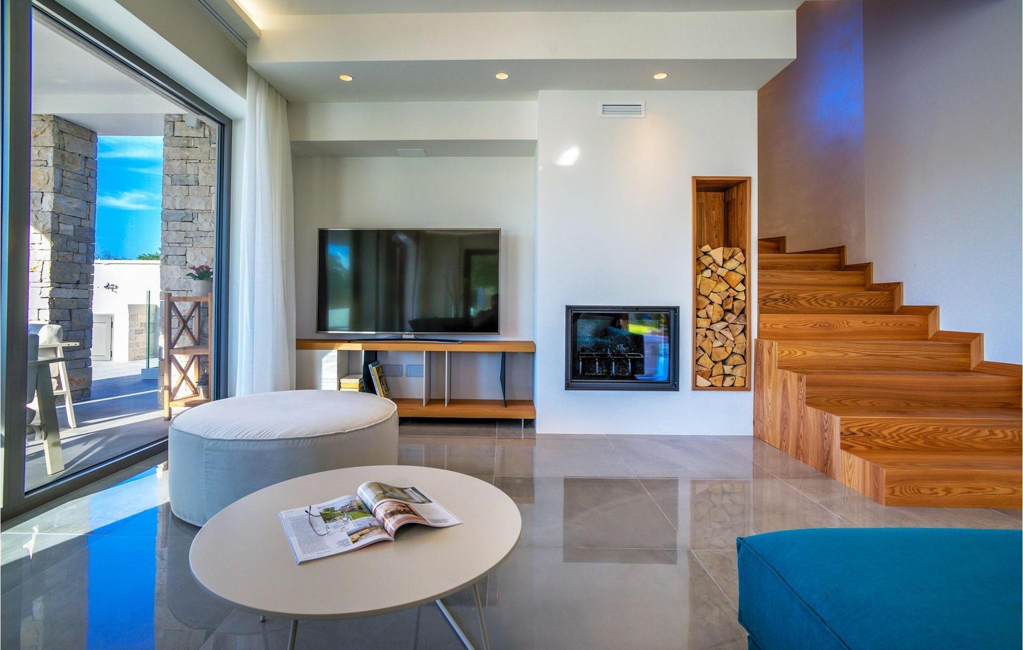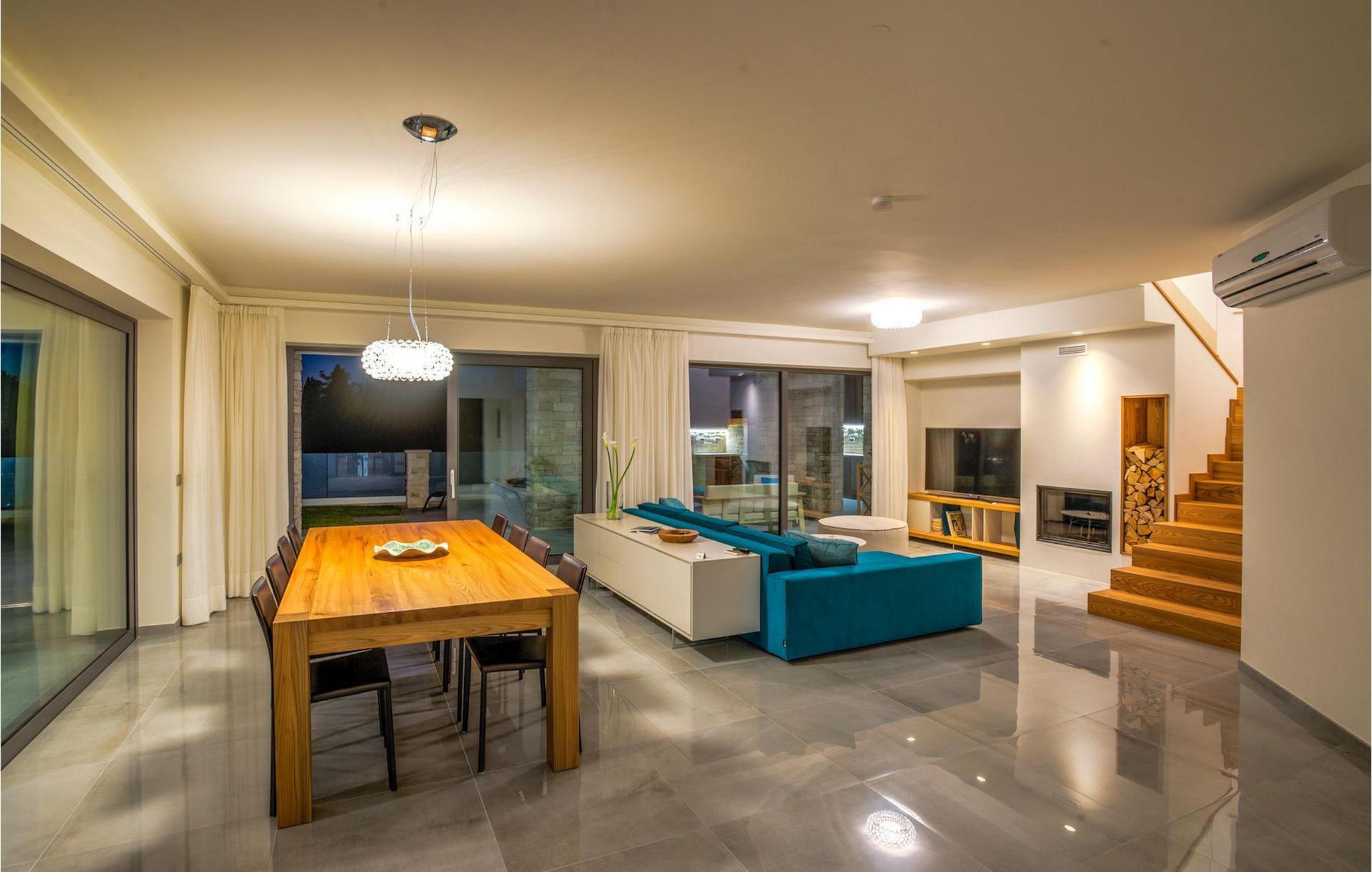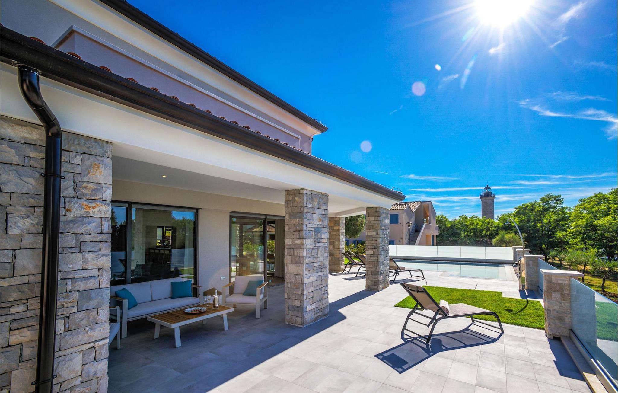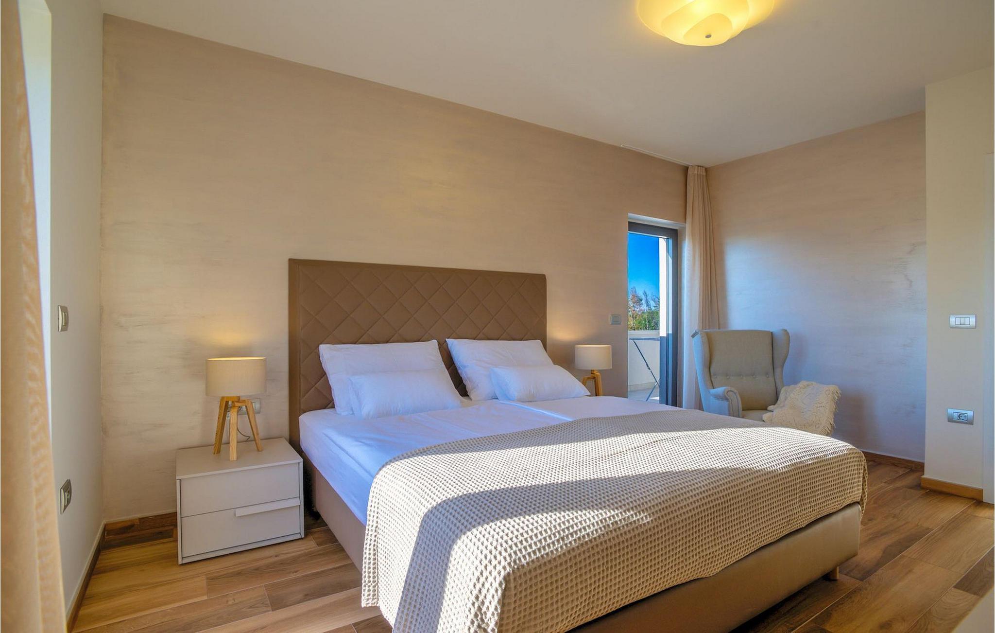 Fantastiske Villa Vista Savudrija er uden tvivl et fremragende valg til en afslappende ferie for familie og venner. Denne rummelige og moderne designet villa kan rumme i alt 8 gæster fordelt på 2 etager og 4 soveværelser. Det udendørs område vil helt sikkert opfylde alle dine ferieforventninger. En 33m2 privat pool med hydromassage vil ikke kun holde børnene beskæftiget i temmelig lang tid, men den vil tilbyde dig en tiltrængt forfriskning på de varme middelhavssommerdage. Slap af ved poolen på liggestolene, læs din yndlingsbog, eller nyd blot en forfriskende drink. Udendørsområdet har også et forbløffende gammelt oliventræ, hvorunder naturlig skygge kan du helt slippe hverdagens stress. Et dejligt overdækket loungeområde er også perfekt til f.eks. at nippe til din morgenkaffe. Herfra kan du komme ind i den rummelige indendørs opholdsstue bestående af stue, spiseplads og fuldt udstyret køkken. Dette rum er fuldt airconditioneret, fyldt med naturligt lys takket være gallerivinduerne og moderne designet med træ og blå detaljer. På denne etage vil gæsterne finde et soveværelse med en dobbeltseng og et badeværelse med bruser. På anden sal er 3 ekstra soveværelser, 2 med 2 enkeltsenge og 1 med en dobbeltseng, og 2 badeværelser hver med bruser. Så hvis du ønsker at udforske Istrien og blive indkvarteret i en pæn og moderne villa, er Vista Savudrija måske den perfekte pasform. Begynd at planlægge dit kroatiske eventyr i dag, og kom for at finde ud af, hvorfor gæsterne elsker det her!Villa Vista Savudrija er beliggende i hjertet af Savudrija, den nordvestlige top af Istriens kyst. Dette område er kendt for windsurfing og golf. Villaen er beliggende tæt på stranden, barer, restauranter. Savudrija, engang fiskerlandsby, ligger kun en kort køretur fra kystbyen Umag. Umag tilbyder et stort udvalg af fritidsaktiviteter, turistfaciliteter samt en lille havn. Fremragende restauranter, barer og caféer kan findes i dens brostensbelagte gader. Hver juli finder ATP Croatian Open sted på Stella Maris tenniscenter, hvor mange af de største navne deltager i mændene. Det magiske istriske landskab, der er berømt for sine fortryllende middelalderbyer på en bakketop samt gastronomiske fornøjelser, nås hurtigt ad fremragende veje.