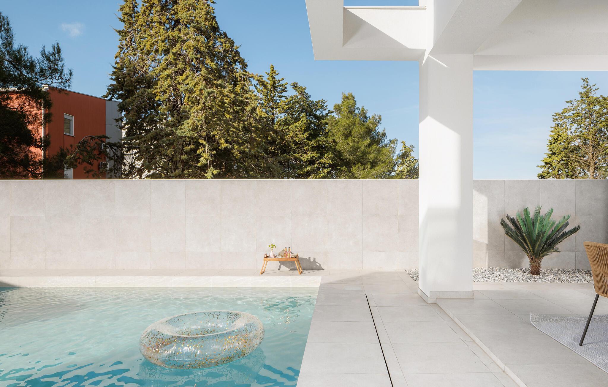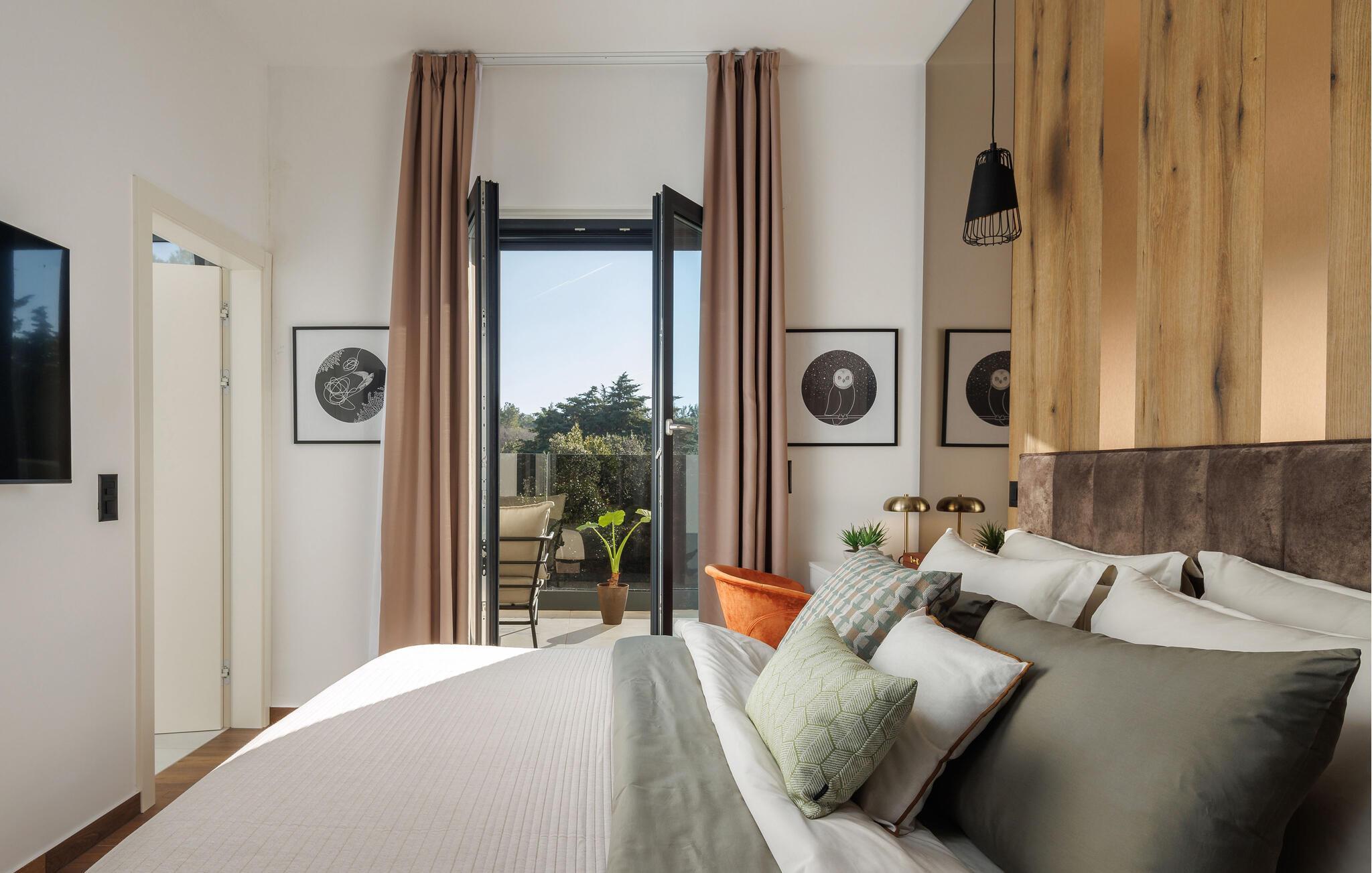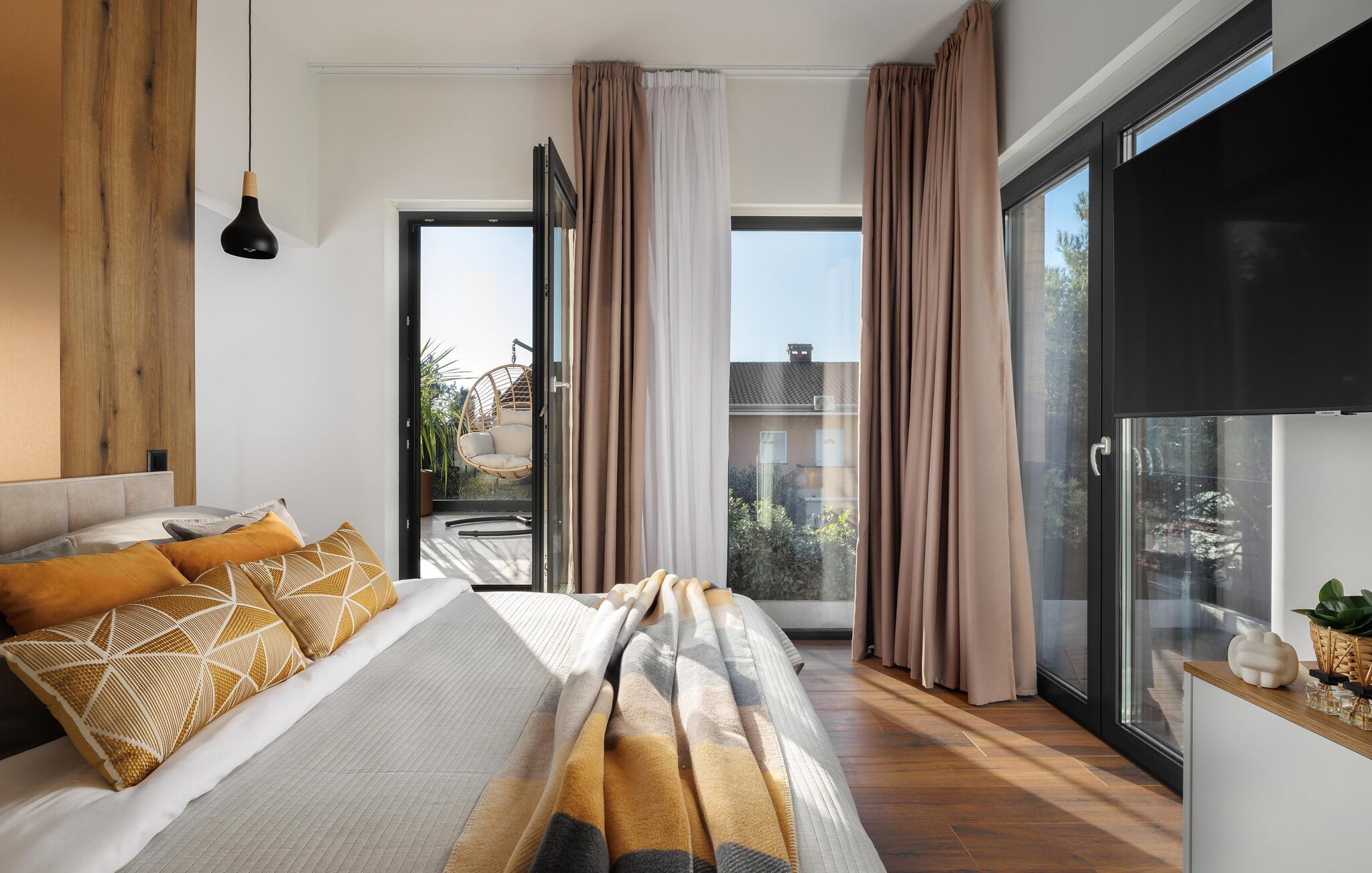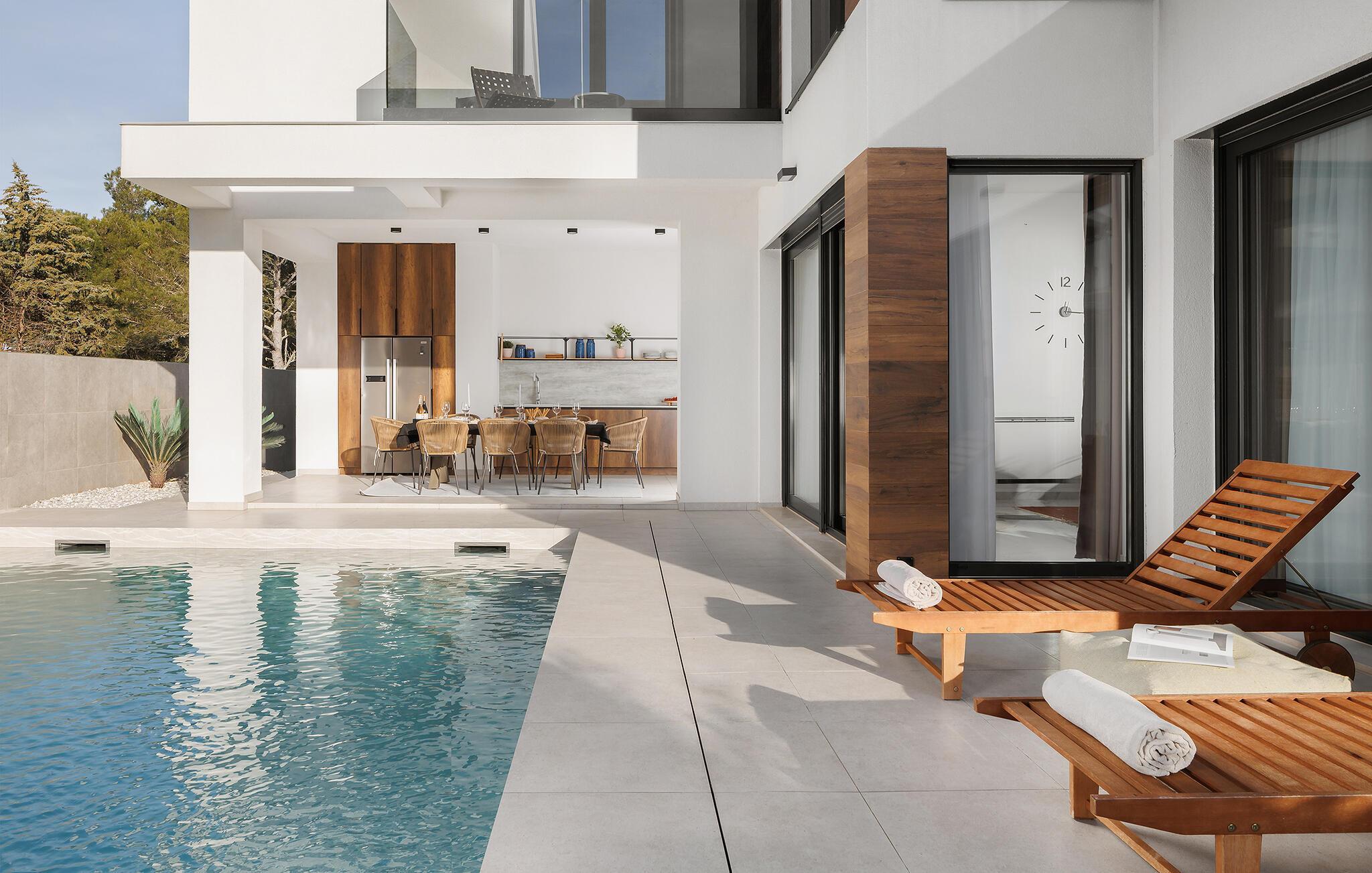 Et feriehus taget lige ud af et indretningsmagasin? Ja, det er, hvad der venter jer i denne luksuriøse bolig i Zambratija. Her kan I se frem til et spekakulært syn, når I første gang beskuer den moderne indretning, der kombinerer lyse farver med sten og træ. Indgangen med den store vinduesvæg er imponerende nok i sig selv, og de store soveværelser giver jer masser af komfort og mulighed for ro og afslapning. I kan også glæde jer til fitnessudstyret og den store sauna, hvor I kan svede hverdagens stress og jag ud af kroppen. I haven kan I slappe af i spabadet eller tage en dukkert i poolen. På altanerne kan I trække jer tilbage med en god bog eller blot nyde solen og roen.