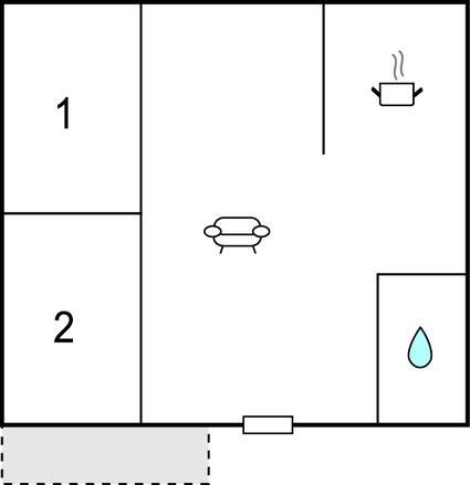 Dette moderne feriehus ligger i stueetagen af et familiehus tæt ved havet. Lejligheden består af et køkken med spisestue, stue, to soveværelser og et badeværelse. Det er ideelt til fire personer.
