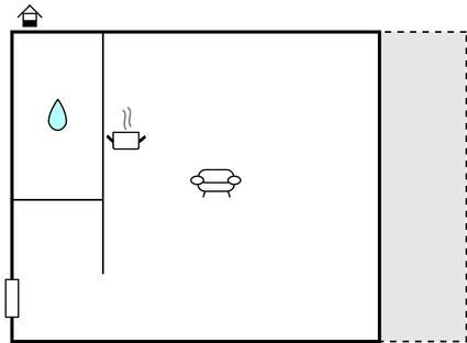Opholdsstue/køkken - 2 Sovepladser. (Dobbeltseng(e)).