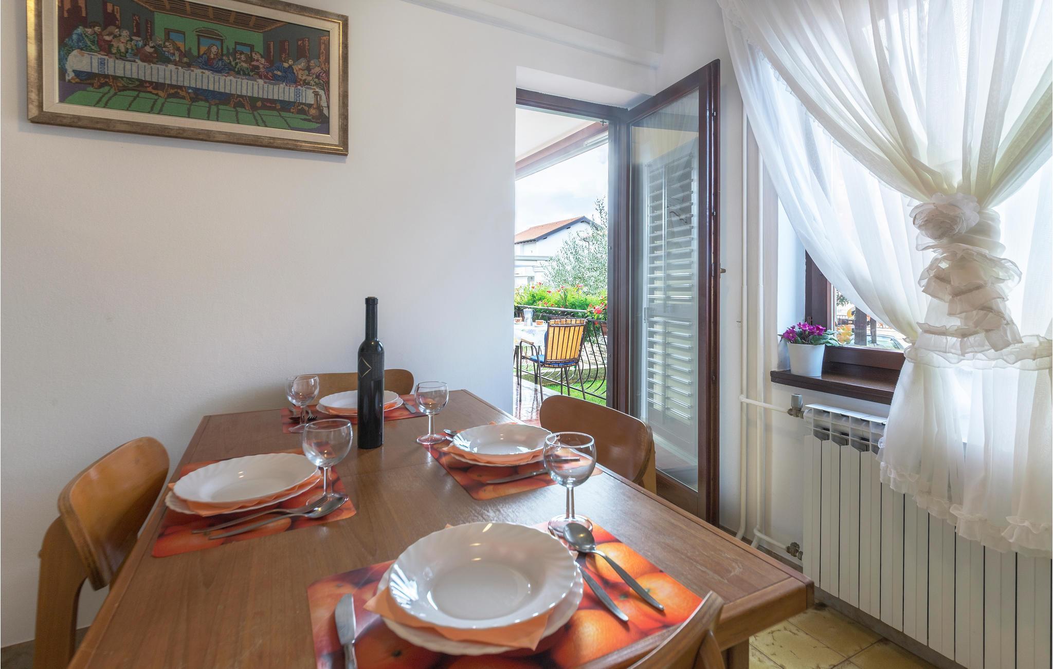 Denne ferielejlighed ligger på førstesalen af et familiehus og råder over en skøn terrasse, hvor I kan nyde jeres morgenkaffe. Den velplejede have er et utroligt smukt syn med den skønne middelhavsflora. De nærmeste strande samt centrum af byen kan I nå til fods på ca. 15 minutter. Omkring byen Umag findes en strandpromenade, hvor I kan nyde lokale delikatesser og velsmagende fiskeretter på en af restauranterne.