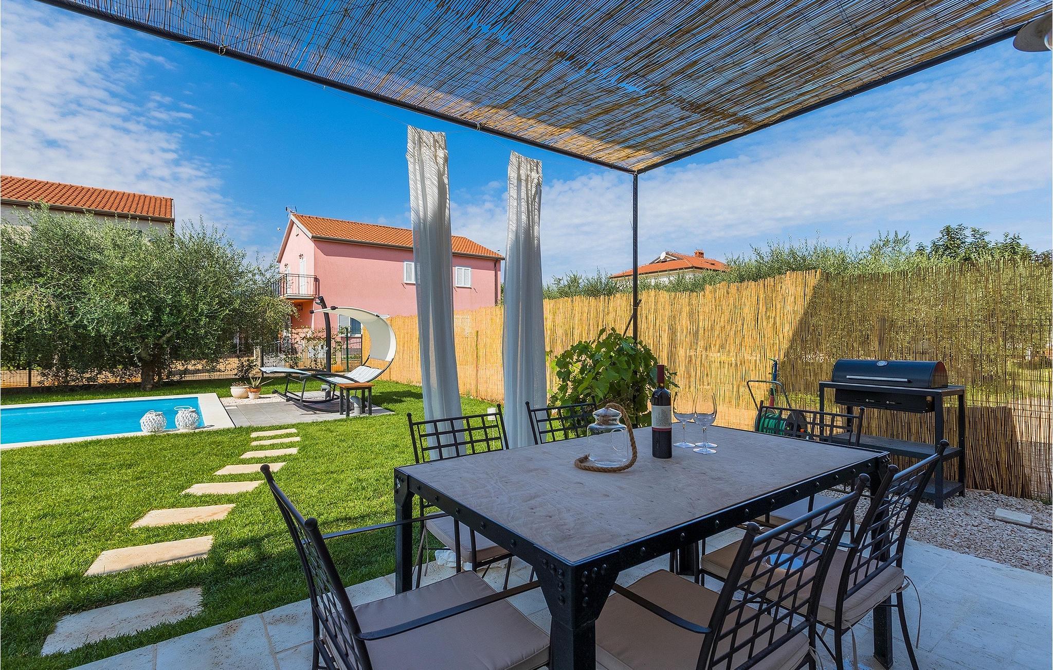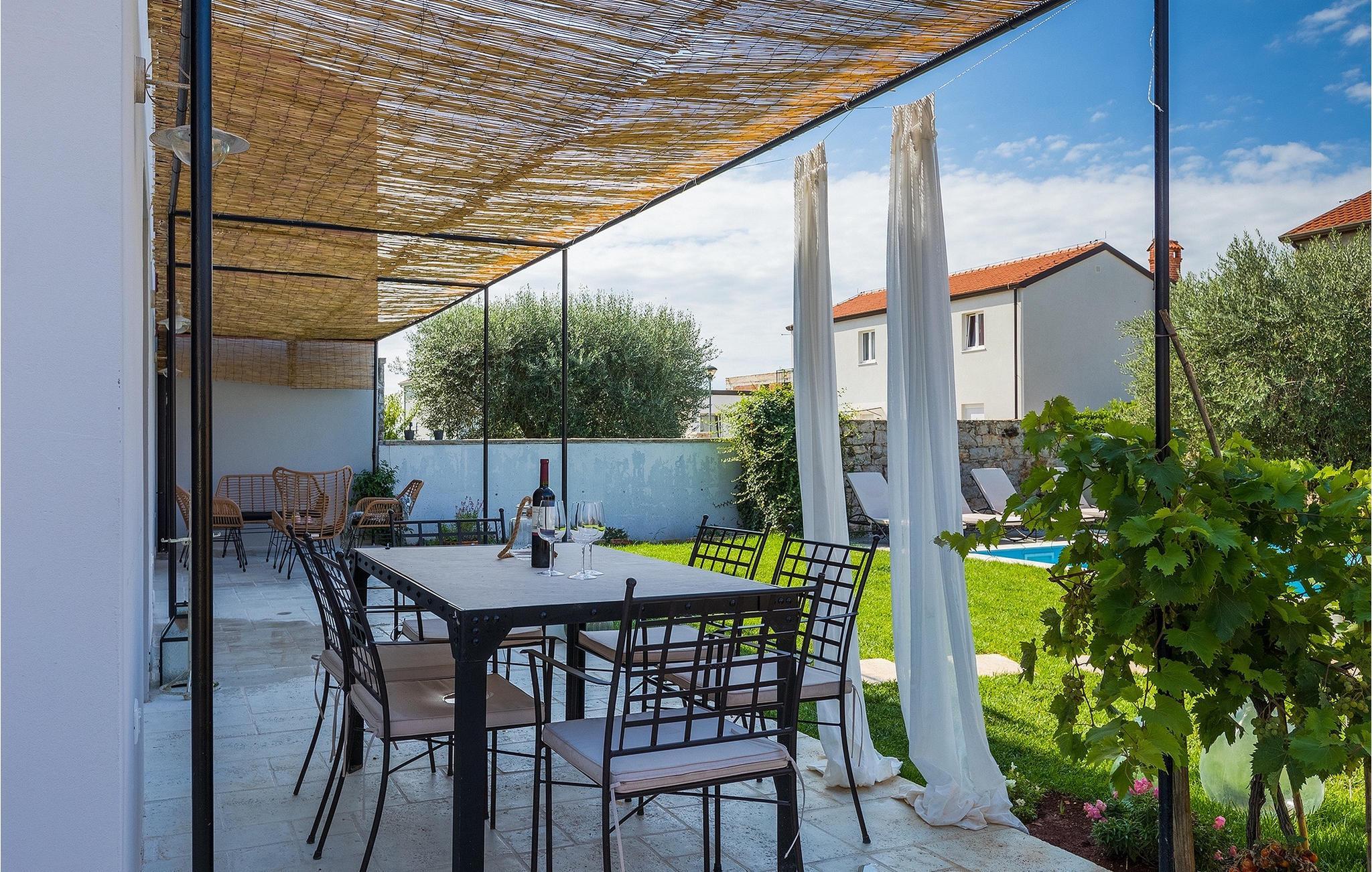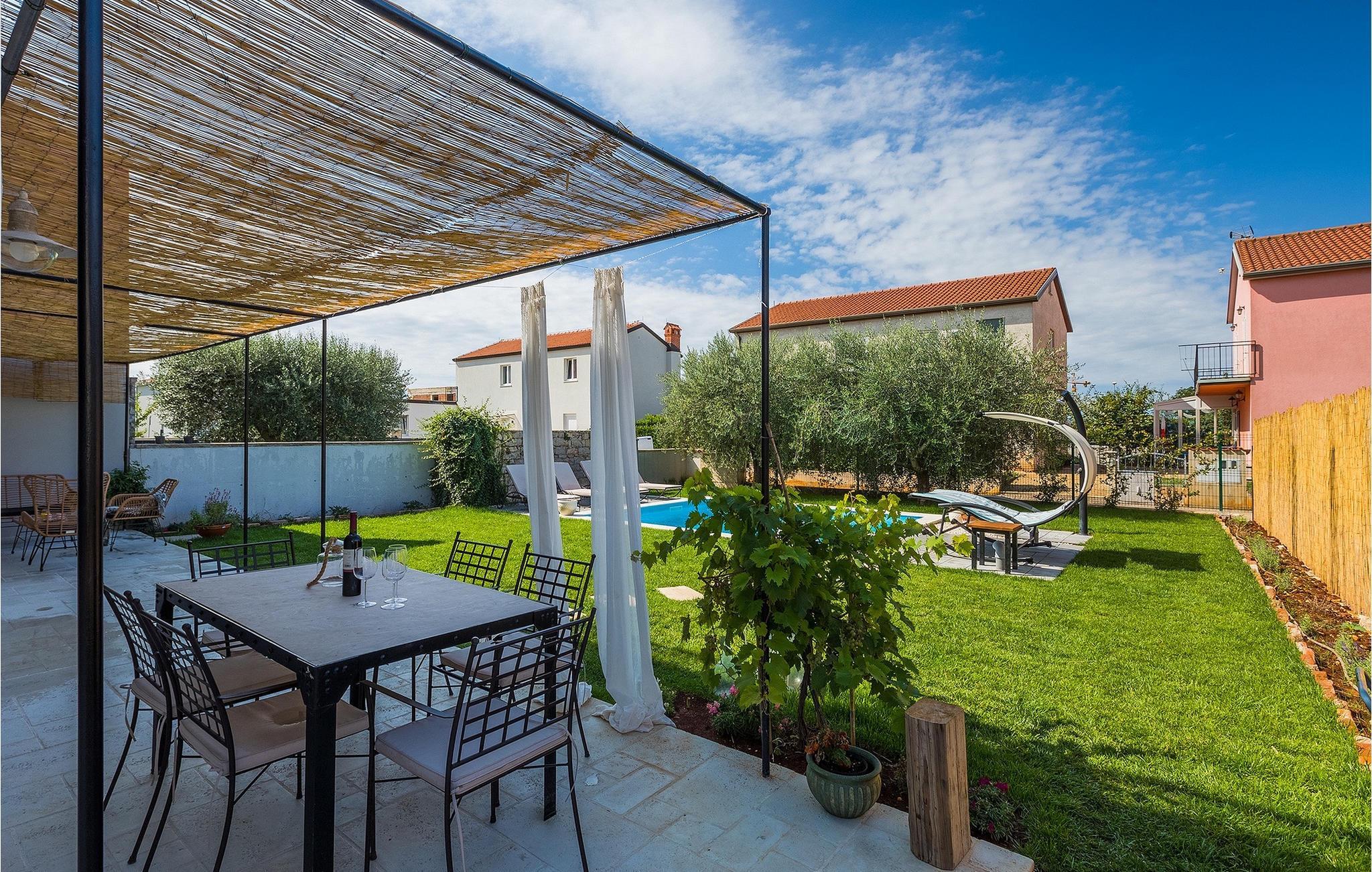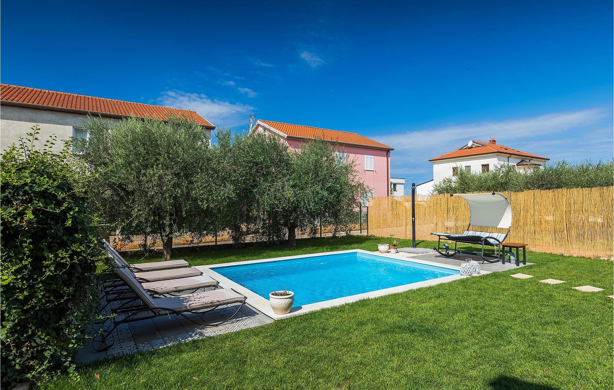 Villa Mediteranea ist perfekt für diejenigen, die einen ruhigen und erholsamen Urlaub verbringen möchten und in der Nähe des Meeres sind. Die Villa verfügt über 3 Schlafzimmer und bietet Platz für bis zu 8 Personen. Auf dem gepflegten Grundstück befindet sich ein privater Außenpool, der an heißen Sommertagen zur Erfrischung einlädt. Entspannen Sie auf den Liegen welche sich rund um den Pool befinden. Ein Holzkohlegrill steht Ihnen zur Verfügung um leckere Gerichte vorzubereiten. Das Erdgeschoss der Villa besteht aus einem Esszimmer, einer voll ausgestatteten Küche mit Zugang zur Terrasse, einem Schlafzimmer mit Zugang zur Terrasse und zum Garten und einem Badezimmer. Die Terrasse ist der perfekte Platz, um Ihren Morgenkaffee zu genießen. Im ersten Stock befinden sich zwei komfortable Schlafzimmer, jedes mit eigenem Bad. Private Parkplätze für bis zu 2 Autos sind ebenfalls vorhanden. Buchen Sie die Villa Mediteranea und entdecken Sie die Schönheiten Istriens!Villa Mediteranea liegt nur wenige Autominuten von der berühmten Stadt Umag entfernt. Umag und seine Umgebung sind bekannt für die Herstellung von Wein und Olivenöl. An der Küste von Umag finden Sie eine große Auswahl an Aktivitäten, um Ihre Freizeit zu genießen, touristische Einrichtungen und einen kleinen Hafen. Ausgezeichnete Restaurants, Bars und Cafés befinden sich in den charmanten Kopfsteinpflasterstraßen der Stadt. Heute ist Umag vor allem für seinen Sport bekannt: Jedes Jahr im Juli finden die ATP Croatia Open mit vielen großen Namen aus der Herrentenniswelt statt. In der Nähe der Stadt befindet sich der preisgekrönte Wasserpark Istralandia - ideal für einen Tag voller Spaß für die ganze Familie. Neben sportlichen Aktivitäten sollten Sie das Innere Istriens, das für seine ausgezeichnete Gastronomie bekannt ist, und zahlreiche kleine Städte auf den Hügeln mit einem einzigartigen Blick auf das Tal des Flusses Mirna, nicht verpassen. Auch Städte an der Küste wie Pula mit seinem berühmten römischen Amphitheater, Rovinj mit bunten Häusern und engen Gassen und Porec mit seiner unter Unesco-Schutz stehenden Euphrasius-Basilika sind einen Besuch wert!
