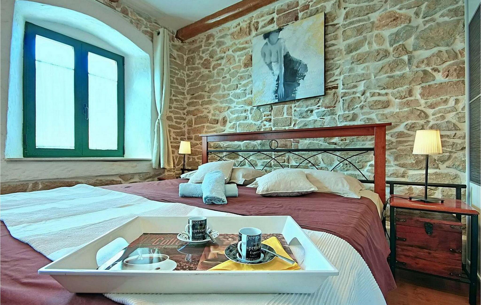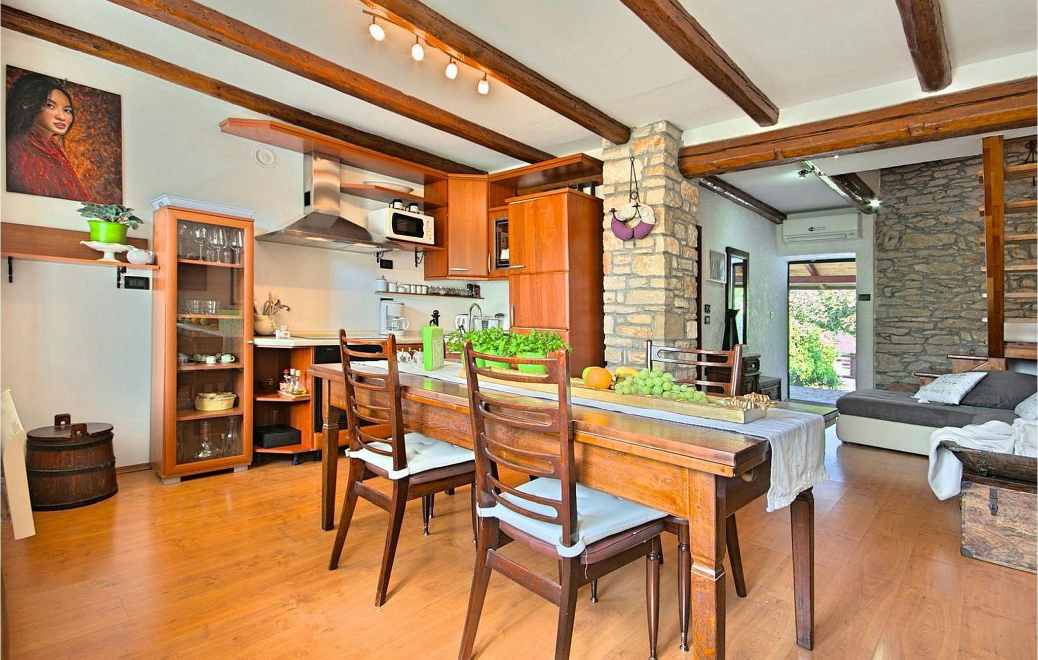 House Ester er et gammelt renoveret stenhus beliggende mellem rækkehuse på stedet Materada, 7 km fra Umag og 4,5 km fra Buje. Huset er bygget i 1920 og blev totalrenoveret i 2014. Den særlige charme, har huset selv efter renoveringen på grund af sine originale detaljer. Følgende faciliteter på ejendommen på 500 kvm er til gæsternes rådighed: overdækket terrasse med siddesæt, pool på 24 kvm med pavillon, grill og parkeringsplads. Hus til 6 gæster med et samlet areal på 135 kvm består af en klimatiseret stueetage, hvori er placeret en stue, satellit-tv, spisebord, fuldt udstyret køkken og bad/toilet. På første sal er der et dobbeltværelse med aircondition og privat balkon. Der er også et soveværelse med dobbeltseng indrettet med traditionelle møbler. På loftet med aircondition er der et soveværelse med dobbeltseng med dobbeltseng. Bemærk venligst, at denne ejendom ikke accepterer ungdomsgrupper eller polterabends. En ungdomsgruppe på denne ejendom er en gruppe bestående af personer på 26 år eller derunder. Book ikke denne ejendom, hvis du er en ungdomsgruppe eller et polterabend, da din reservation vil blive afvist efter booking, hvilket kan omfatte ved ankomst til ejendommen eller under dit ophold, og du vil ikke blive refunderet.