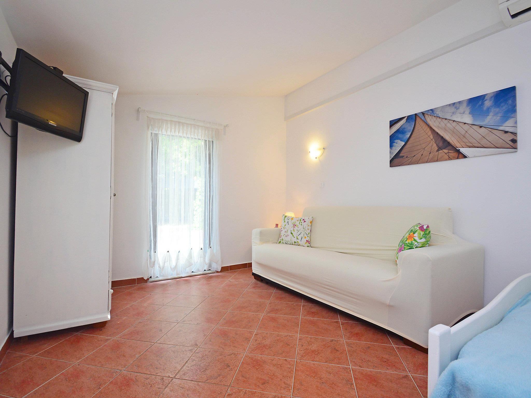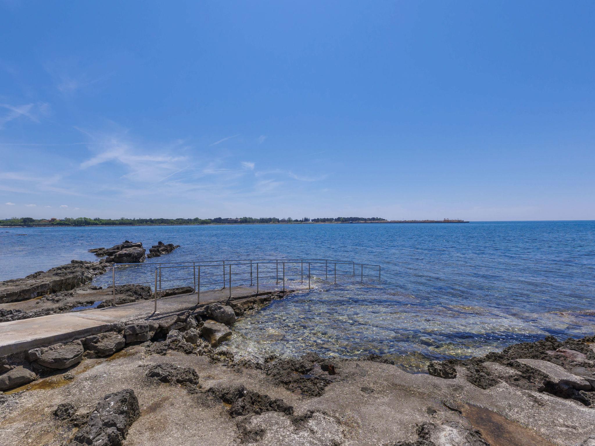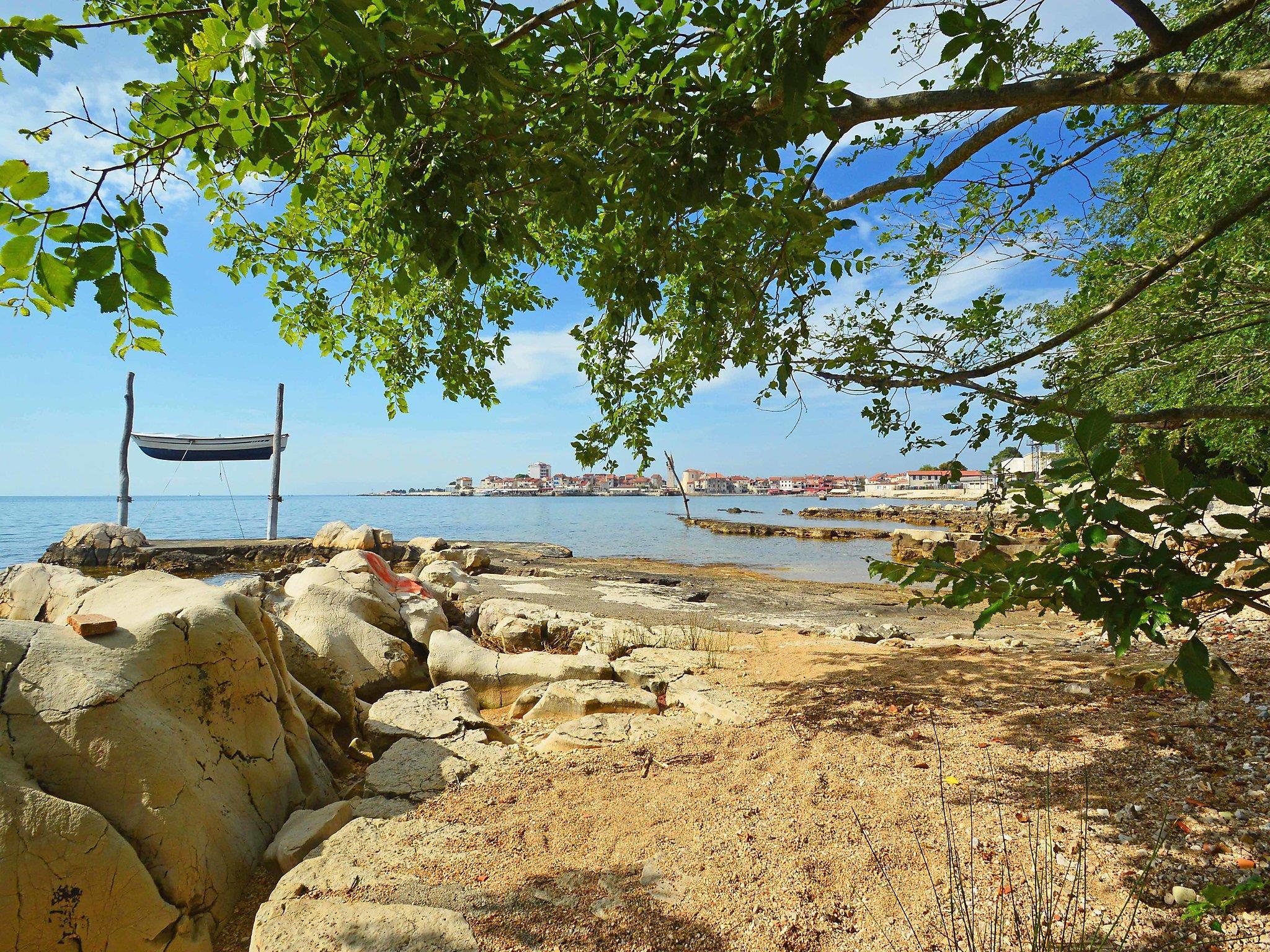 Small single-family house "Aron". 400 m from the centre of Umag, in a sunny position, 50 m from the sea, 200 m from the beach, in a cul-de-sac. Private: property 200 m2, garden trees, natural garden. Pergola (10 m2). In the house: internet access. Public parking. Shop, restaurant 300 m, bus stop 1.3 km, railway station 33 km, sandy beach 300 m, rocky beach, concrete beach 200 m. Golf course (18 hole) 9 km, tennis 1.5 km, walking paths from the house 200 m, cycle lane 250 m, children's playground 200 m. Access to the neighbouring house HR2200.113.1 via the grounds of the house.