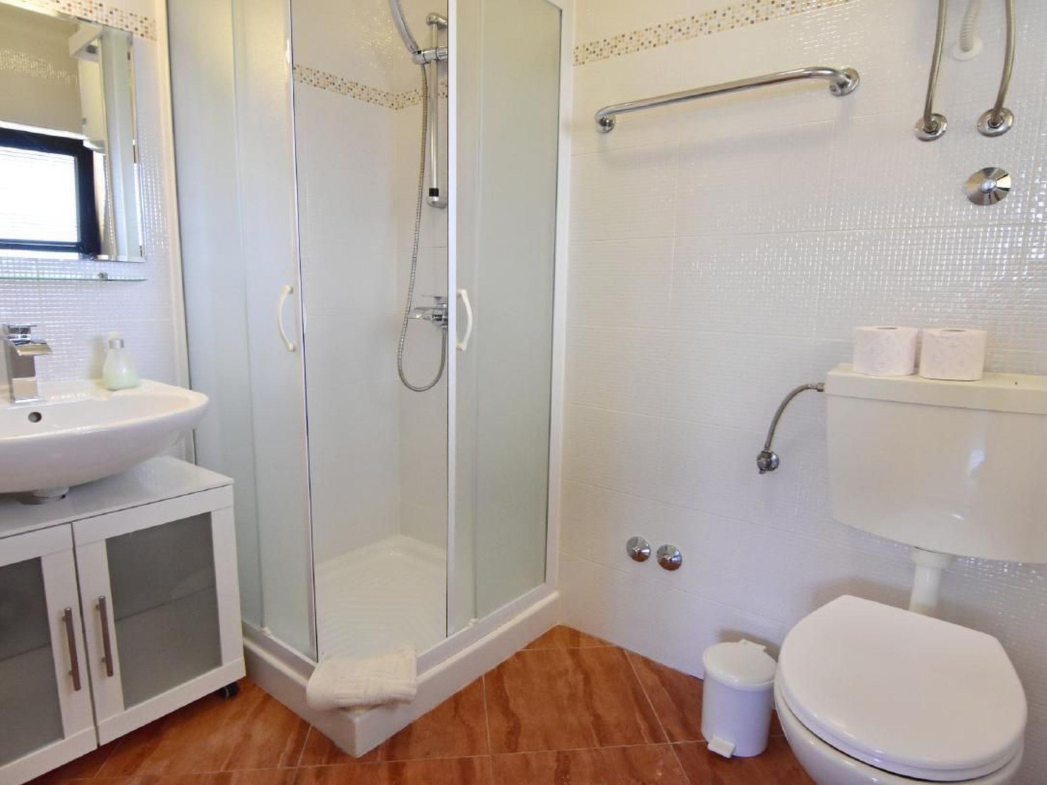 The villa's interiors are characterised by their attention to detail and modern style, designed to make you feel at home. The holiday flat on the first floor, perfect for any guest, whether couples or families, offers two bedrooms with double beds, fully equipped with all the necessary comforts. A bathroom with shower, WC and extensive amenities leaves nothing to be desired. The open-plan living area includes a kitchen equipped with modern appliances and a cosy living area with a sofa bed, satellite TV and air conditioning, which leads onto a covered terrace with idyllic garden views.