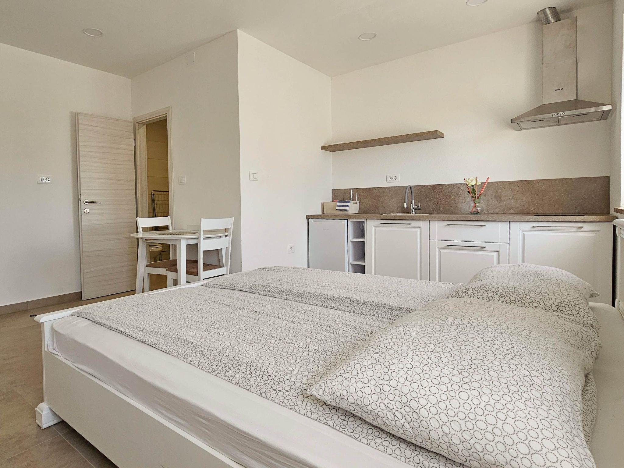 Welcome to our modern studio apartment in the heart of Umag. Located on the ground floor, this apartment offers comfort and convenience for up to two people.