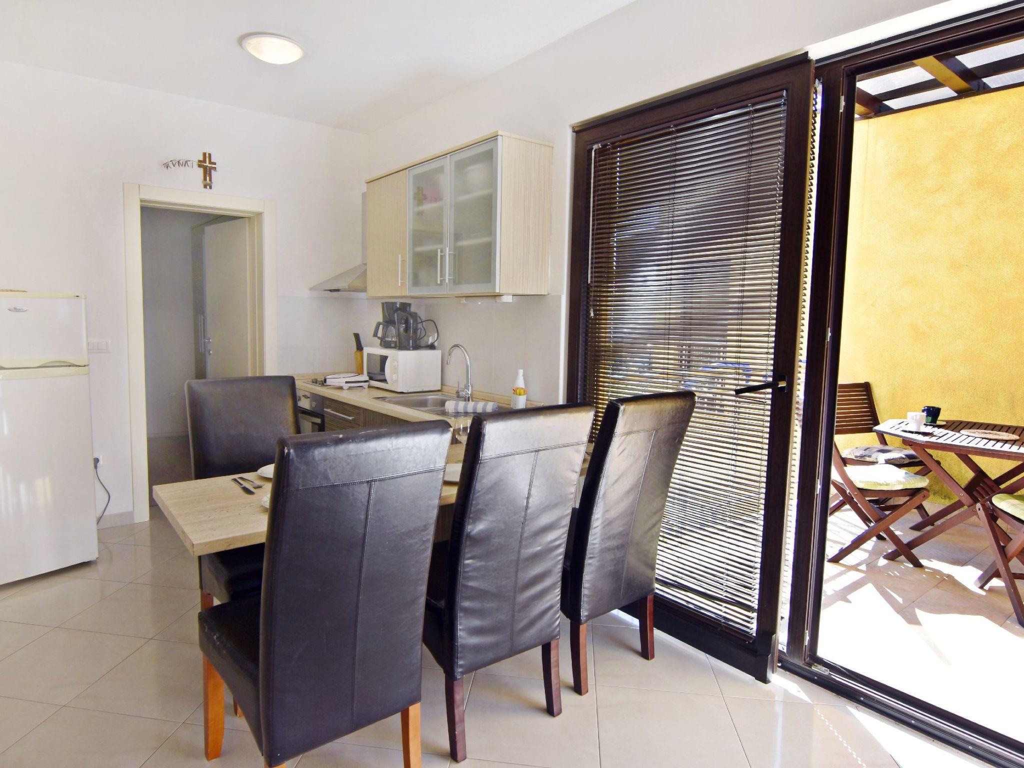 The 42 m² flat 5 awaits you on the first floor of Villa Alpa, furnished with care and love in a modern style. You will immediately feel at home. The flat has a cosy bedroom with a comfortable double bed, a spacious wardrobe and an elegant chest of drawers. In the fully equipped bathroom you will find a shower cubicle, a hairdryer and fresh towels. The living area is equipped with a kitchenette that leaves nothing to be desired, a dining table, a comfortable sofa bed and a flat-screen satellite TV. In addition, air conditioning ensures pleasant temperatures and free Wi-Fi provides entertainment and comfort.