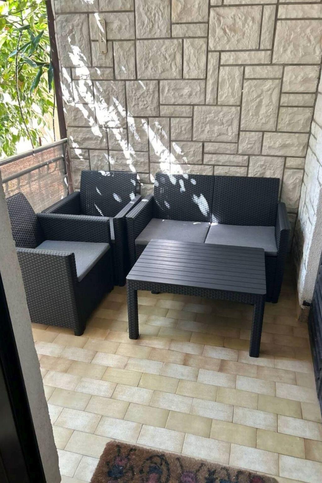 Flat with balcony, 40 m², 70 metres from the beach, space for up to 3 people, ground floor, WLAN, satellite TV, air conditioning, shared use of garden