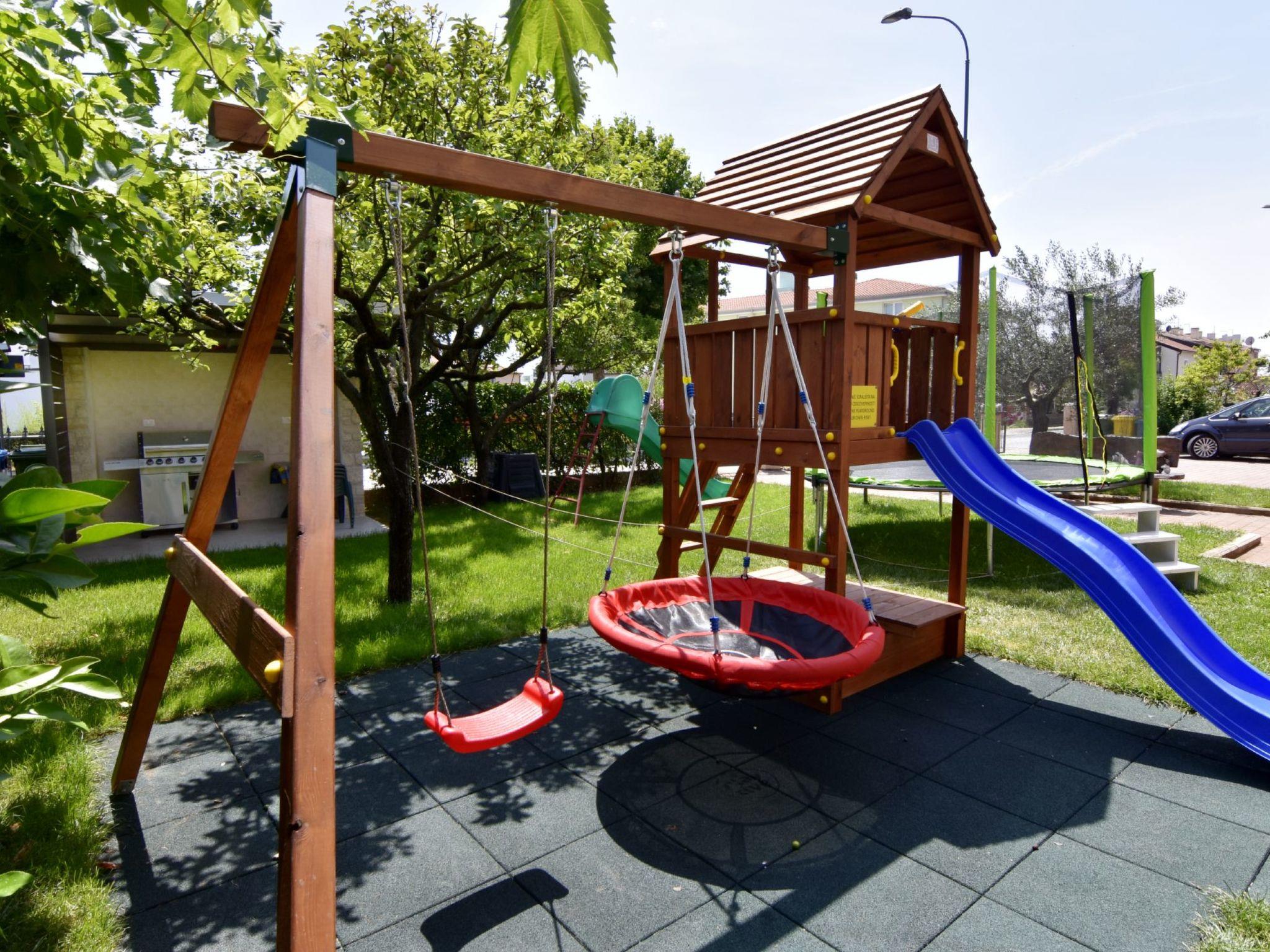 The neighbourhood is quiet and sunny and consists of private houses adorned with well-kept gardens full of flowers and plants as well as some buildings. The area is equipped with a large park with games for children and teenagers, free outdoor fitness equipment and a beautiful lawn. In the neighbourhood you will find the convenient Ultra supermarket with attached bar, other shops, bank, pharmacy, two wine bars, the Paganini casino and affordable restaurants. Due to its proximity to the centre and the coast, this area is an excellent choice for those who love peace and comfort. However, a car or bicycle is recommended for reaching the beaches.