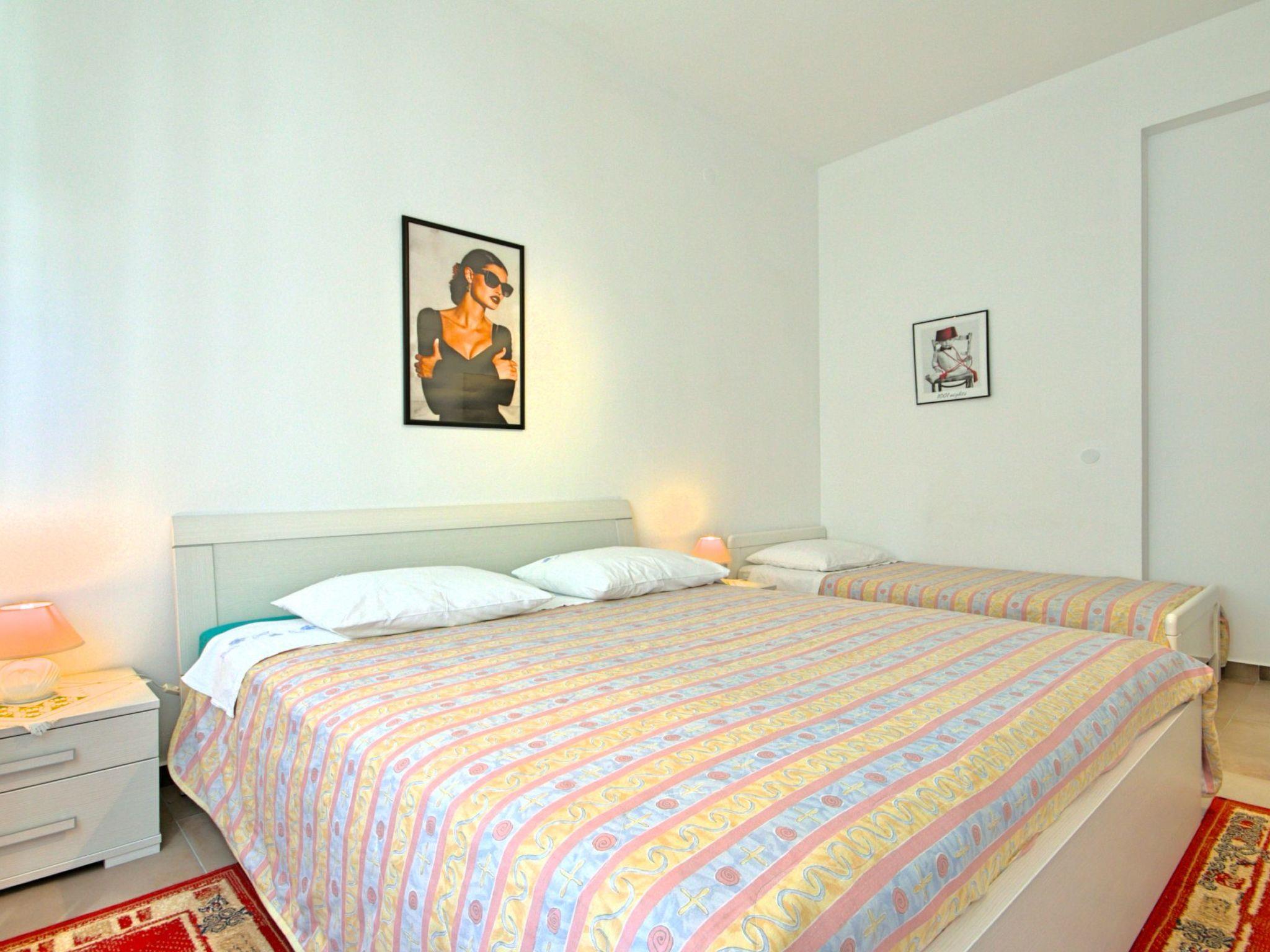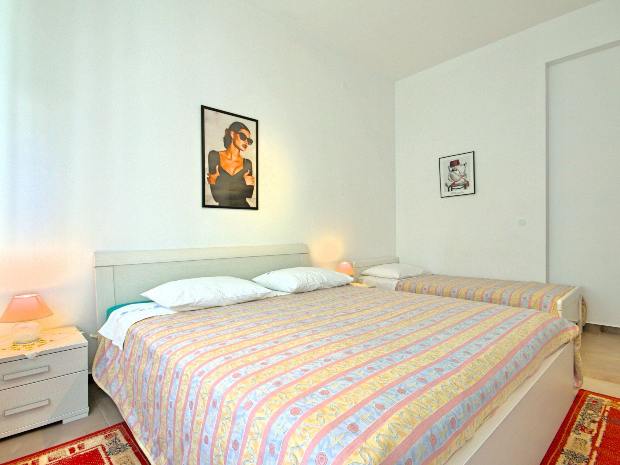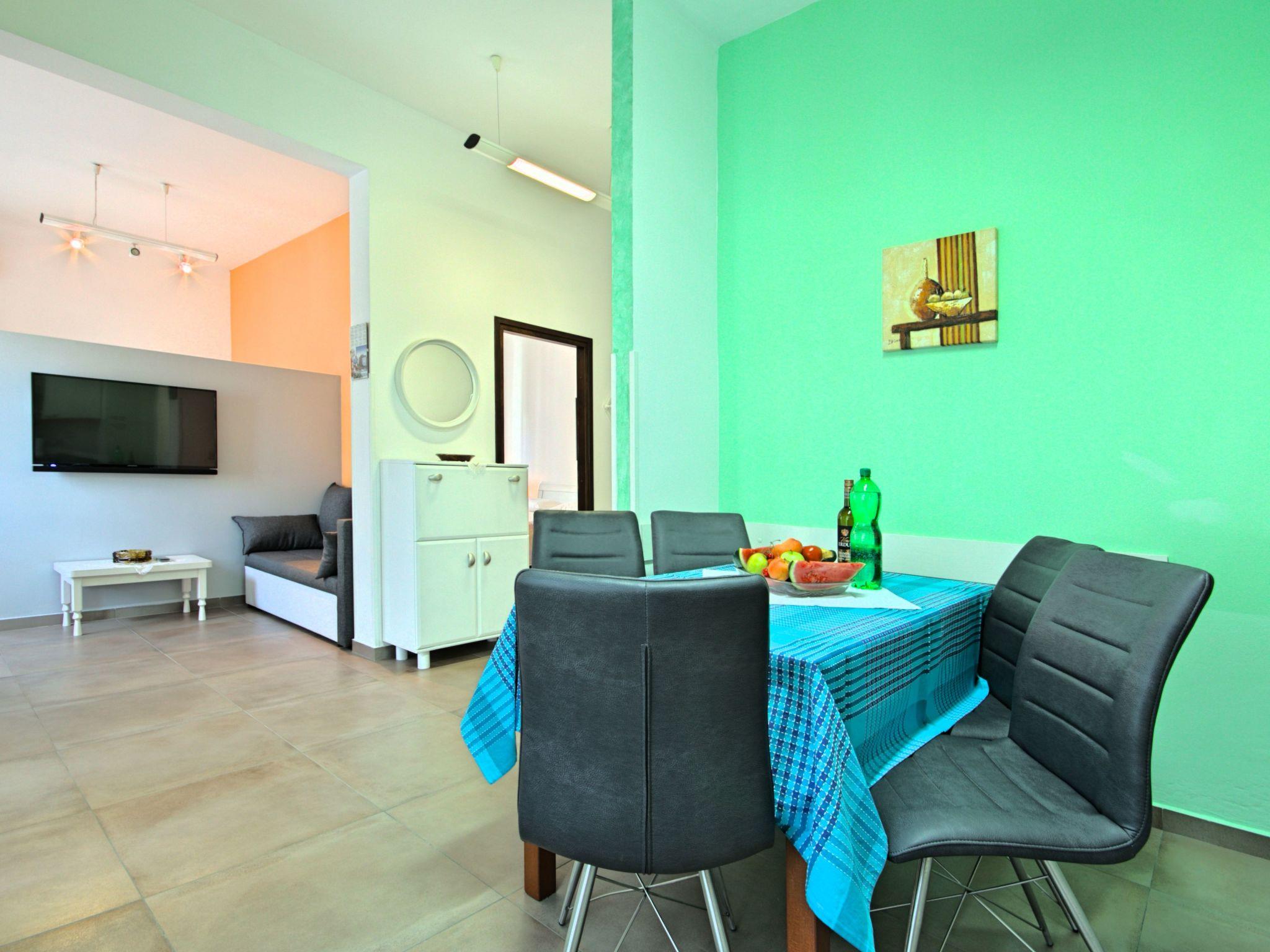 The apartment consists of a bedroom with a double bed and a single bed and a wardrobe, the large living room is separated by a wall, on one side furnished with a sofa, coffee table, flat-screen satellite TV and on the other with two single beds , air conditioning. The kitchen is equipped with a kettle, coffee maker, hob, oven, fridge and dining table with chairs. The bathroom has a sink with mirror, toilet and shower cubicle.