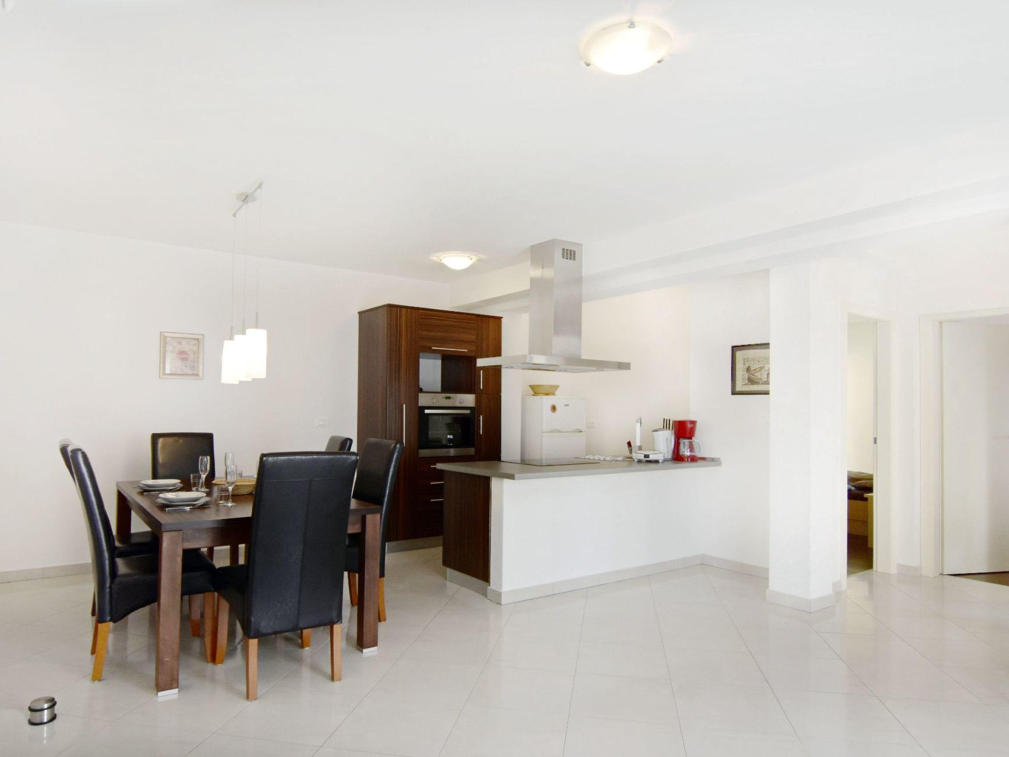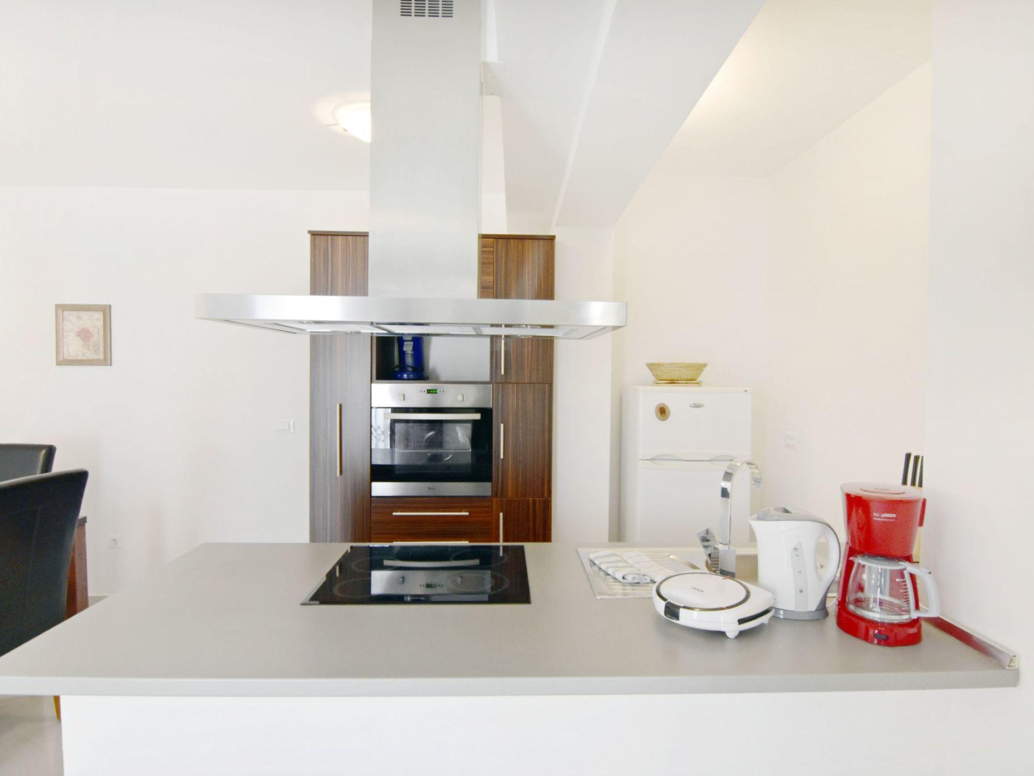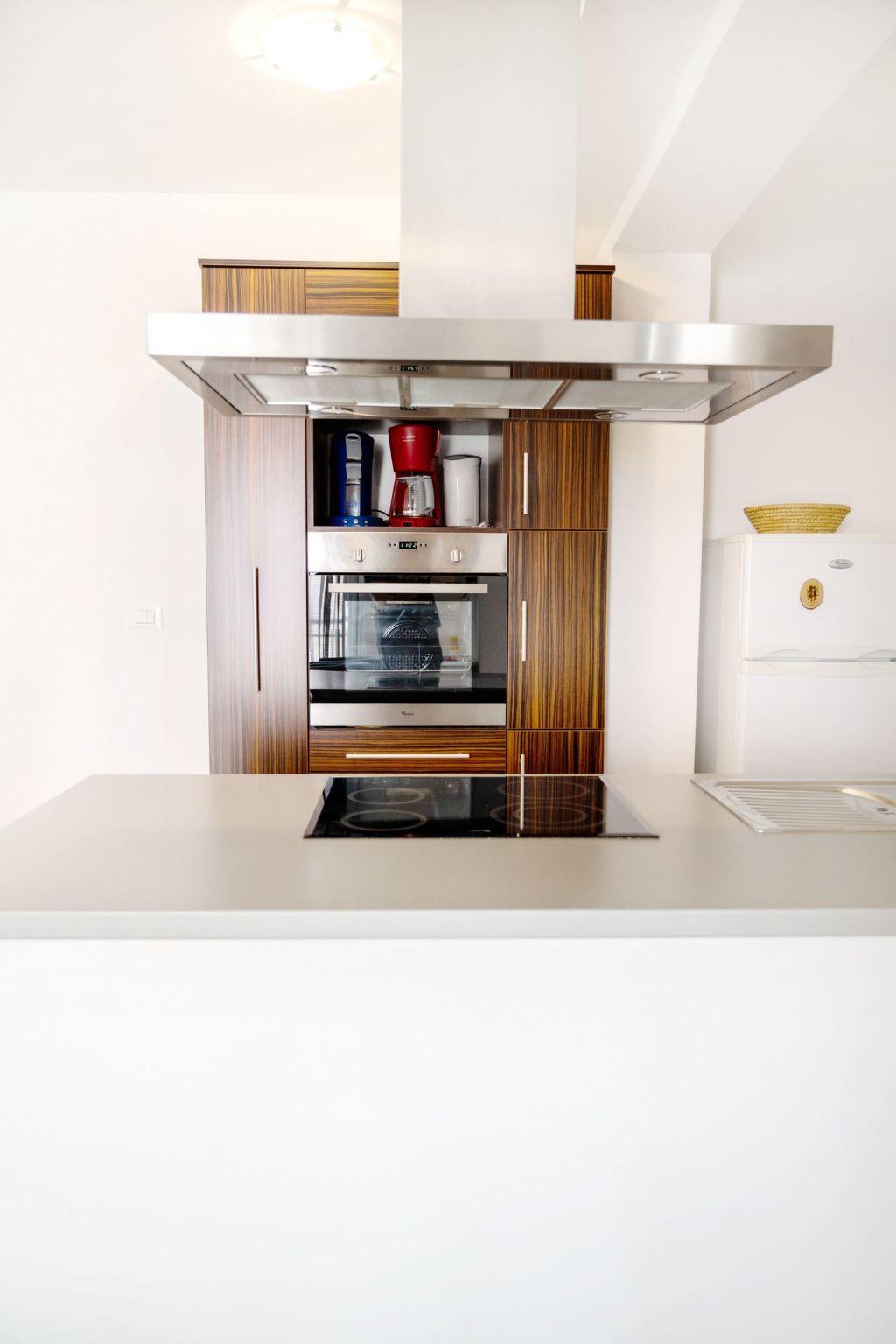 The magnificent flat no. 7 on the first floor seduces with its modern and luxurious design, characterised by attention to detail. It has two bedrooms with double beds, fully equipped with wardrobes, bedside tables and bedside lamps, and bed linen with a weekly change. A fully equipped bathroom and a 27 m² open-plan living area with kitchen, dining area and a cosy living area including a sofa bed for two, flat-screen satellite TV and free Wi-Fi internet connection complete the offer.