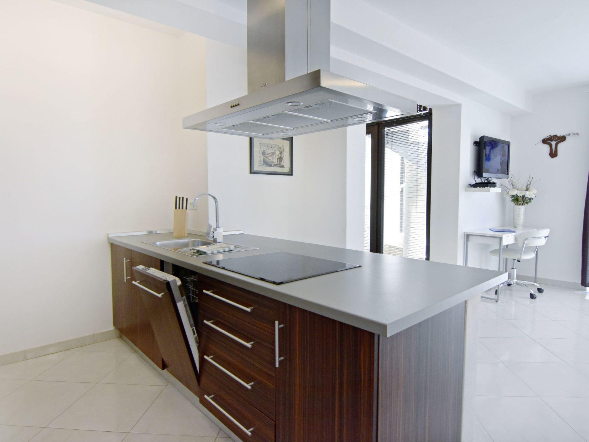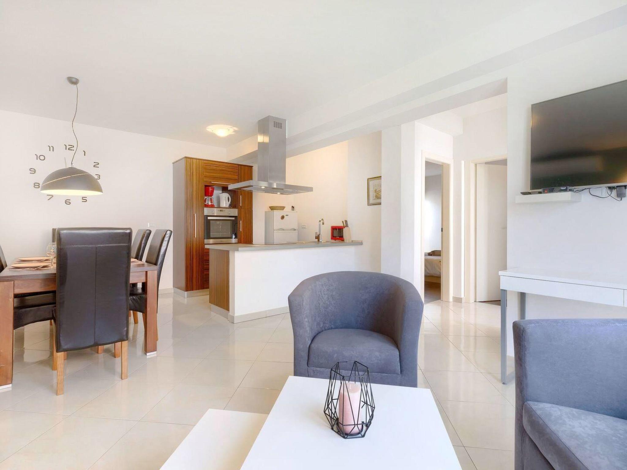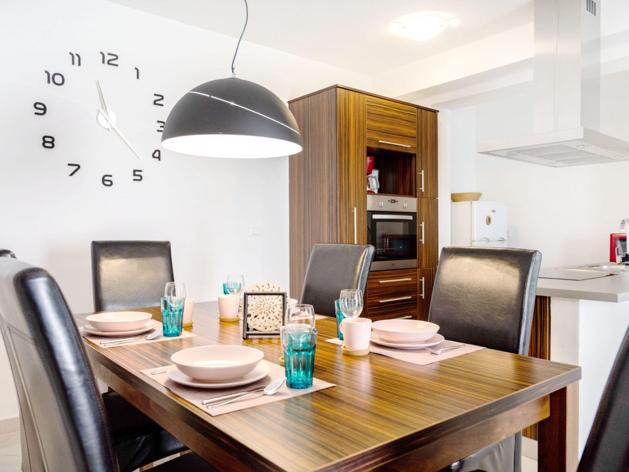 The magnificent flat no. 7 on the first floor seduces with its modern and luxurious design, characterised by attention to detail. It has two bedrooms with double beds, fully equipped with wardrobes, bedside tables and bedside lamps, and bed linen with a weekly change. A fully equipped bathroom and a 27 m² open-plan living area with kitchen, dining area and a cosy living area including a sofa bed for two, flat-screen satellite TV and free Wi-Fi internet connection complete the offer.