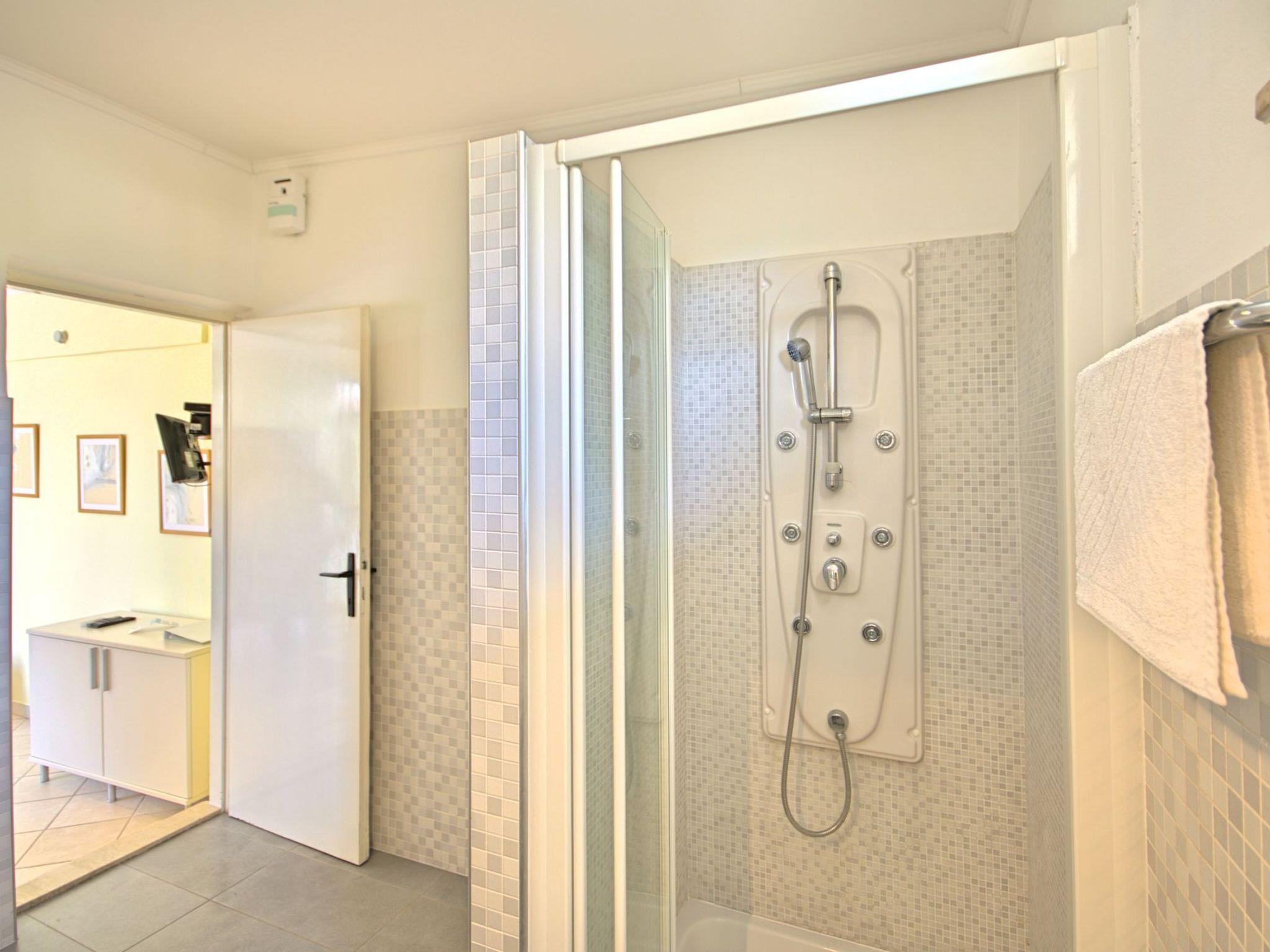 The 35m2 apartment for 2+2 people consists of a bedroom with double bed (160 x 200), wardrobe, night lamps, bed linen is provided (changed weekly). The spacious bathroom has a shower cubicle, sink, mirror, bidet, toilet, external window, two bath towels per person are provided. The living area consists of a kitchenette equipped with an electric ceramic hob with 4 hotplates, fridge, coffee machine, kettle, a dining table with 3 chairs, a sofa bed for two people, satellite TV. flat screen, air conditioner, free Wi-fi internet connection. From the living area there is an exit to the terrace furnished with table and chairs, equipped with an umbrella and a view of the swimming pool.