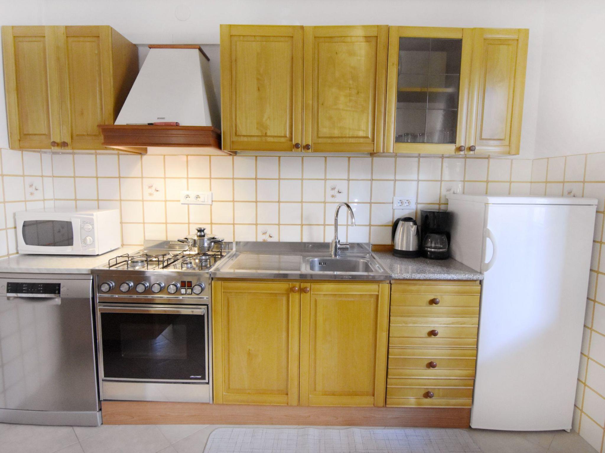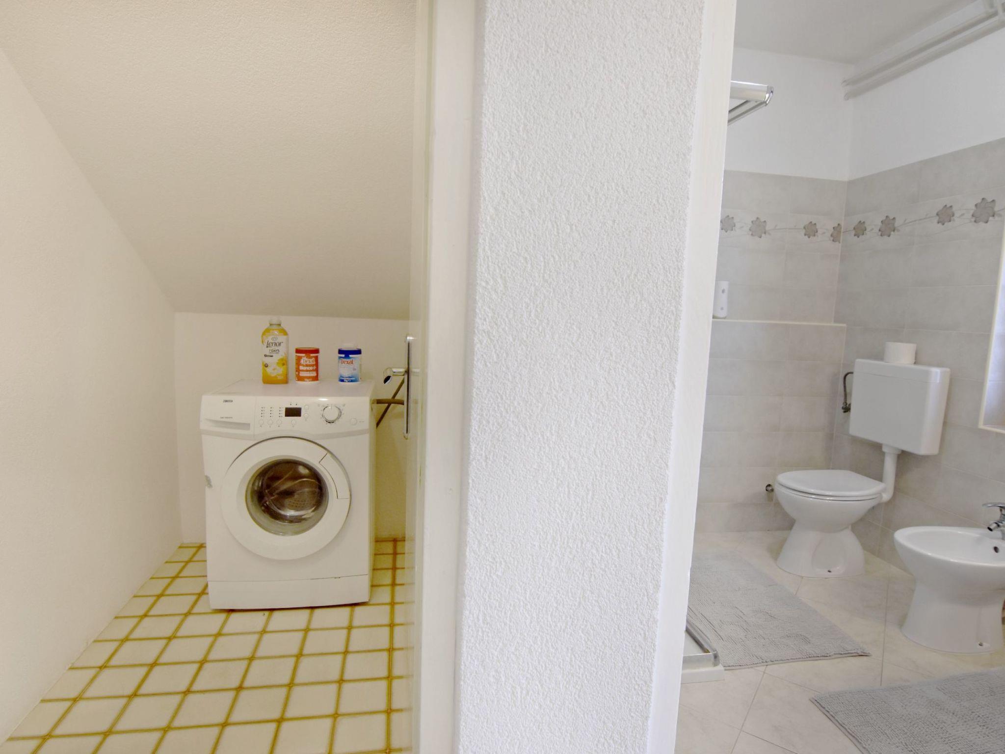 Inside, the flat has two cosy bedrooms with double beds, bedside tables, bedside lamps and wardrobes, one of which has direct access to the terrace. High-quality bed linen and a fully equipped eat-in kitchen with fridge-freezer, oven, hob, extractor bonnet, kettle, coffee machine, dining table with chairs, satellite TV and DVD ensure comfort. Free Wi-Fi internet access, air conditioning and a bathroom with shower, WC, bidet, washbasin, mirror and two towels per person round off the facilities. There is also a practical utility room with a washing machine.