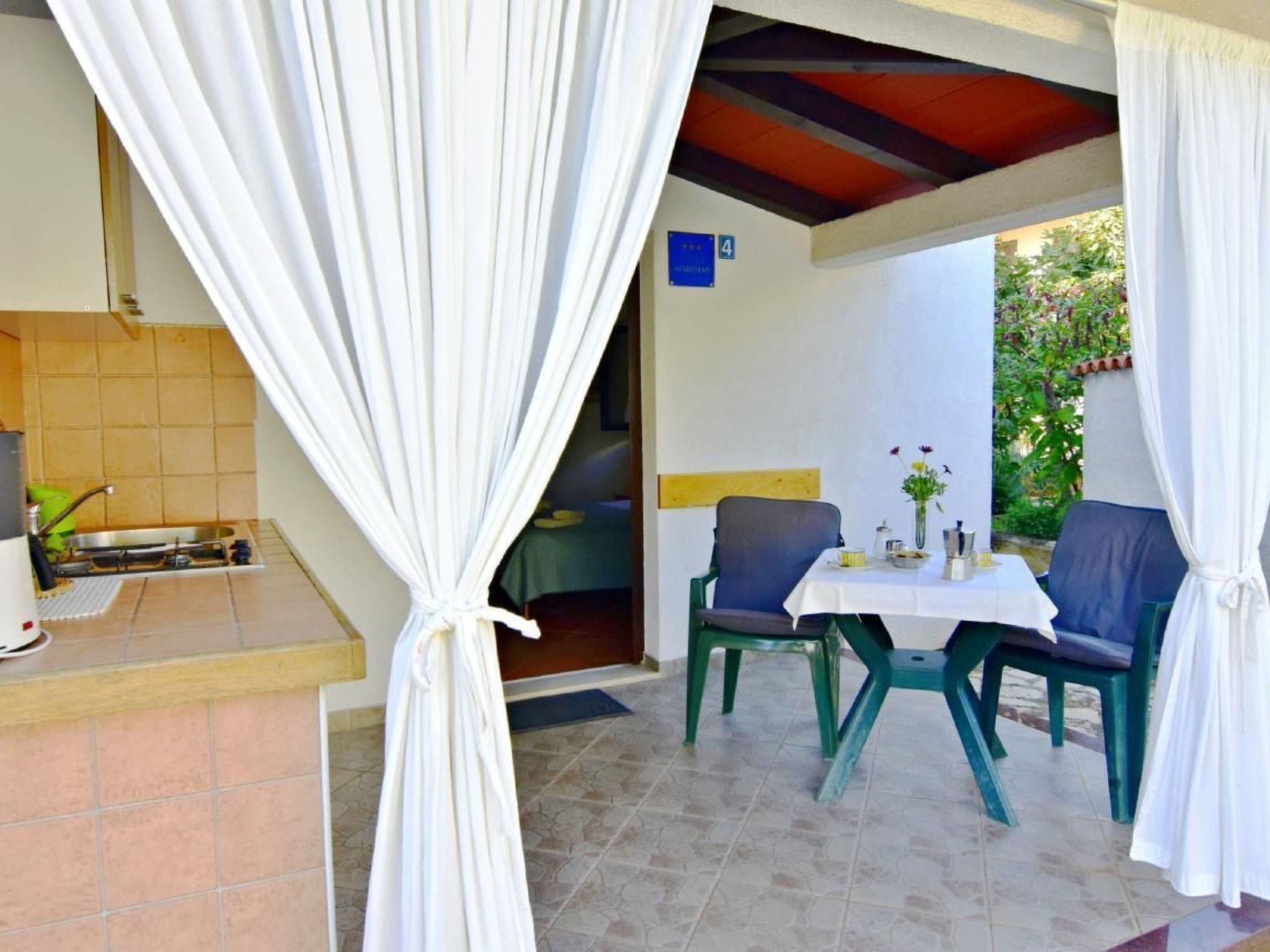 The studio flat Vedrana4 is located only 800 m from the centre of Umag. It is located on the ground floor of a family house with 4 rental flats. It has a covered terrace with garden furniture and an outdoor kitchen. The beach is a few minutes' walk away (distance 1400 m), the ultra-supermarket is 250 m away, the nearest and cheapest restaurant "Gostionica Koper" is only 250 m away. The location is excellent for proximity to the town and beaches or for participation in the famous ATP Open Croatia tennis tournament, which has been held in Umag in the Stella Maris region for years. The flat consists of 1 bedroom with double bed (160x200) and flat screen satellite TV, bed linen provided (changed weekly). The outdoor kitchenette is equipped with a gas cooker with two burners, a microwave, a coffee maker, a kettle, a fridge with a small freezer, a mocha and everything you need for a comfortable holiday. The bathroom has a shower, a washbasin with cabinet, a toilet and two bath towels per person (changed weekly). The flat is air-conditioned, offers free Wi-Fi and free parking in the enclosed courtyard of the house. There is a garden, barbecue and deckchairs. The area of Umag where the flat is located is a favourable area for its location between the town and the coastal areas. It is quiet, but there are many services nearby such as bank, post office, ATM, bars, restaurants. Nearby there are many types of pebble, rocky and sandy beaches. Near the beaches there is no shortage of pine trees or other vegetation to protect you from the sun during the hottest hours of the day. In the centre of Umag you can visit the museum and aquarium, walk along the Umag embankment, stroll through the narrow and interesting streets of the old town or visit the stalls on the promenade or take the children to the playground by the sea. . There are various leisure facilities nearby: Tennis courts, golf with 18 holes, horse riding, water sports, nightclubs, various boat or bus trips. Renowned restaurants, simple restaurants, pizzerias, fast food restaurants, bars. Excursions to the hinterland interesting the town of artists Grožnjan, Motovun typical medieval town known for the film festival, Livade the area of white truffles, Hum the smallest town in the world, PN Plitvice, the coastal areas PN Brijuni, excursion by boat fish picnic, excursion to Venice, Pola, Rovinj, Porec, Baredine cave, Aqualandia for children, tastings of wines, cheeses, olive oil, typical Istrian prosciutto and much more. For the trips, I recommend the Trevitours agency, which will deliver the tickets to your home after a telephone consultation or with the owner. * Guests are asked to use the equipment with caution. * Damages will be charged in cash on site.Brief descriptionOther : Non-smoking houseShort description 1Number of kitchens : 1SurroundingsLoaning facilities : Boat rentalSports facilities in the area : Fishing, basketball, football pitch, golf course, hunting, mountain biking, cycling tours, indoor riding arena, riding arena / riding facilities, sailing, sports centre, surfing, diving, tennis, water skiingGarden and outdoor facilitiesGarden equipment : Garden furniture available, barbecue