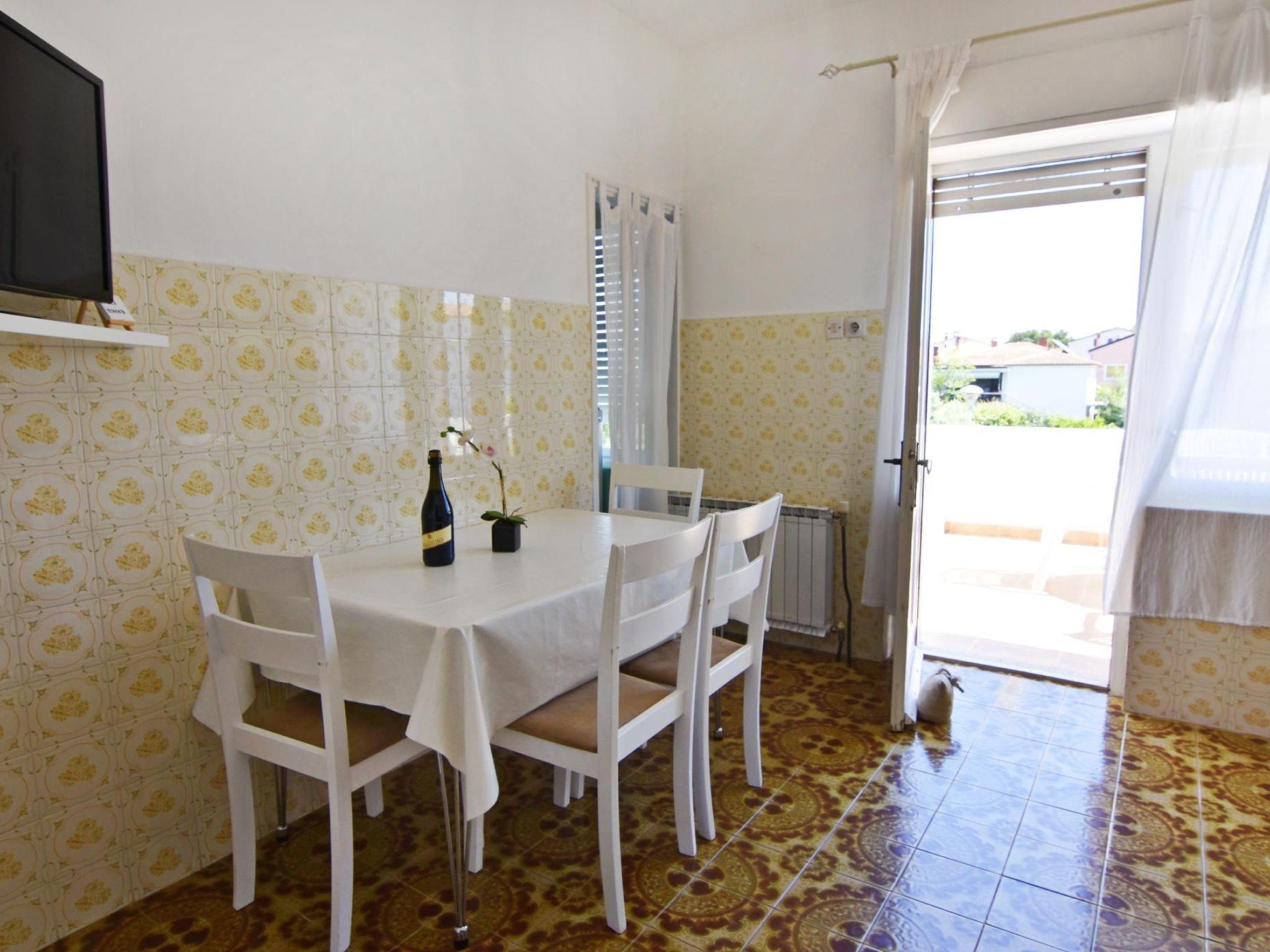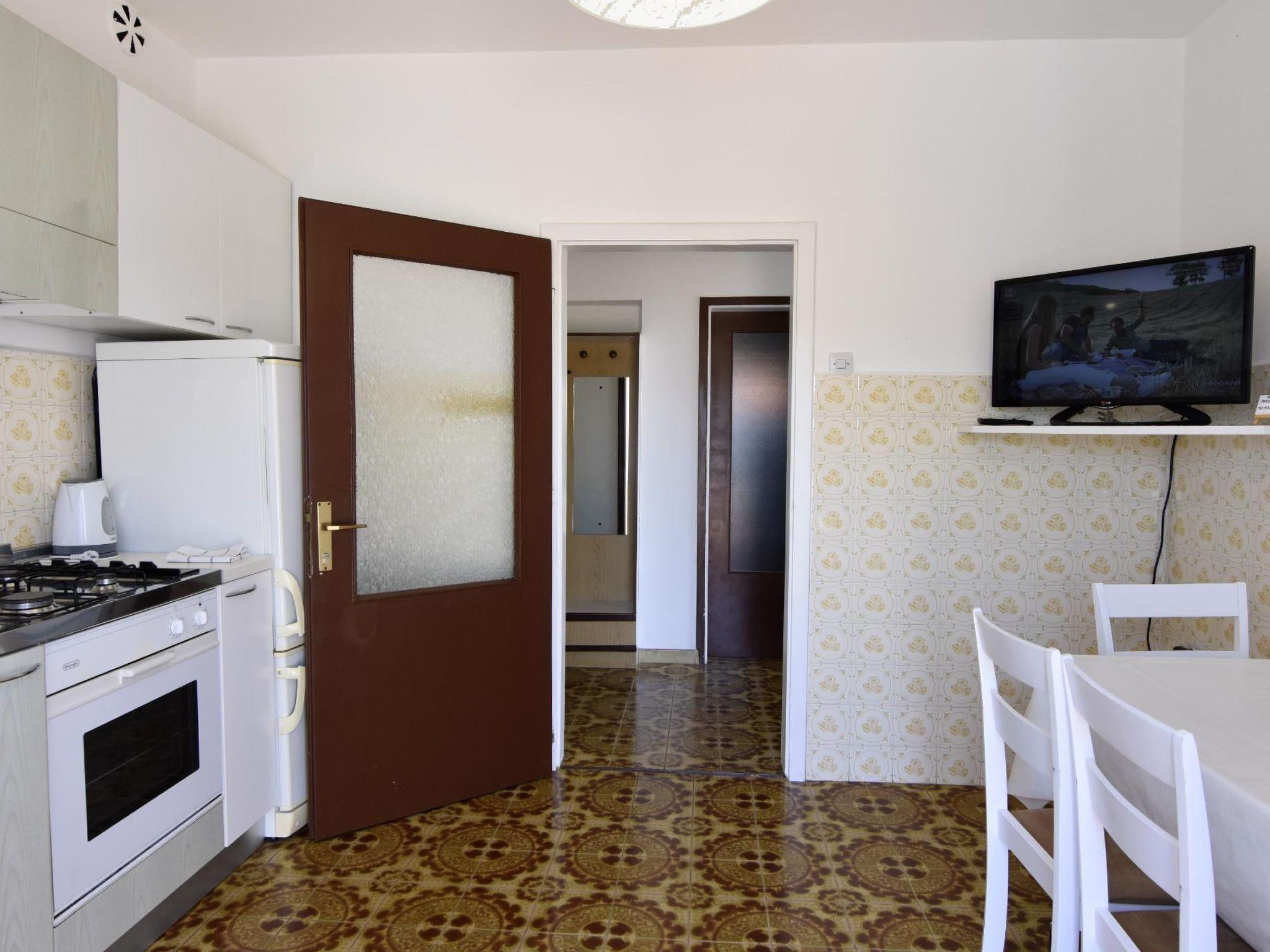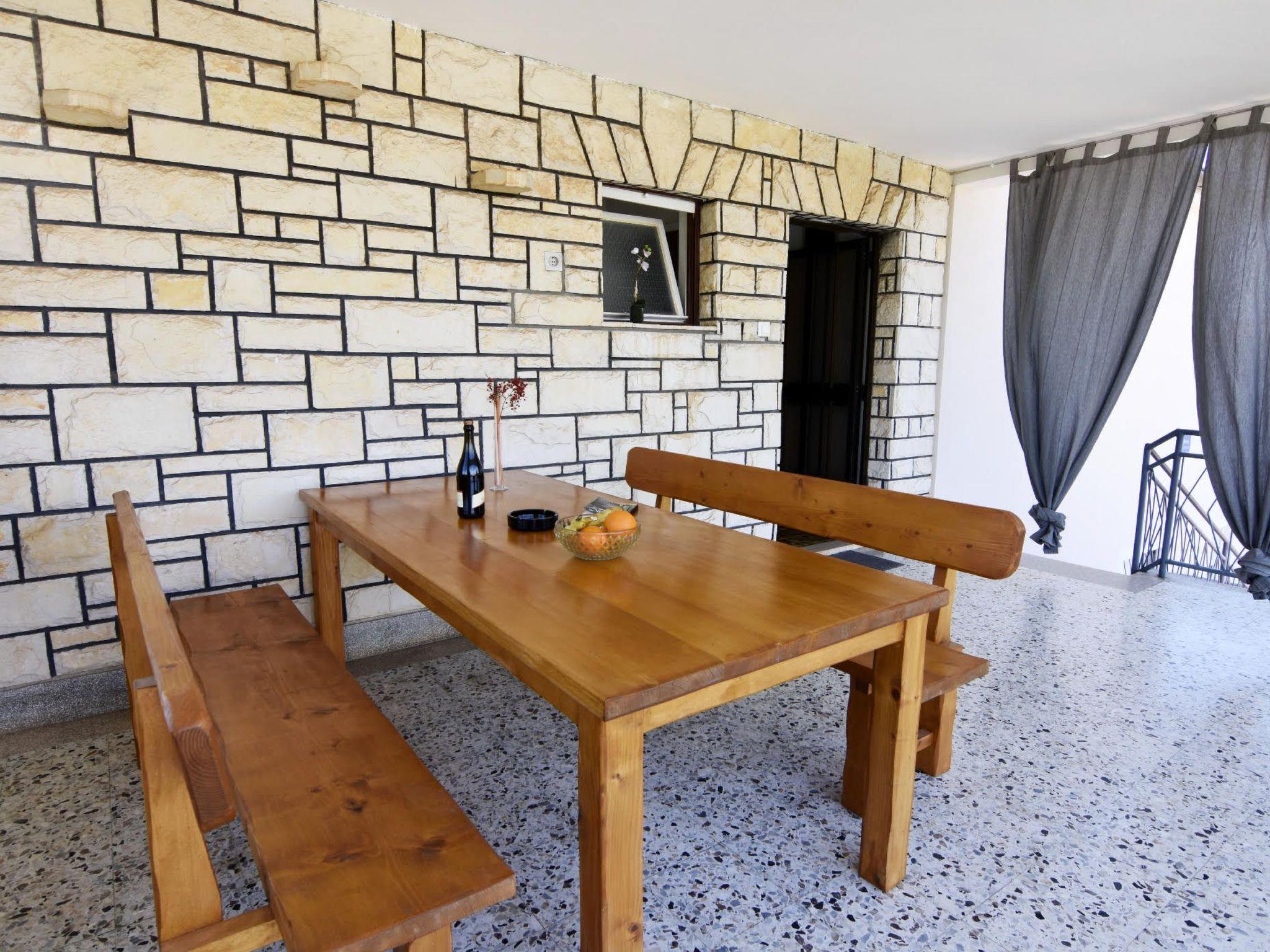 The accommodation has three bedrooms each with a double bed (180x200) and a single bed, bedside tables, night lamps and wardrobe, bed linen provided (changed weekly), a very simple eat-in kitchen equipped with fridge, oven, stove , kettle, coffee machine, dining table with chairs and exit to the open terrace furnished with table and chairs, air conditioner in the entrance. There is a complete bathroom with shower, sink with mirror and cabinet, bidet, toilet and washing machine, the service bathroom with toilet and sink, bathroom towels provided (2 per person, changed weekly). At the entrance there is a covered terrace equipped with a table, benches or chairs. The accommodation offers free Wi-Fi internet connection and free public parking in front of the house and an outdoor table without barbecue in the garden.