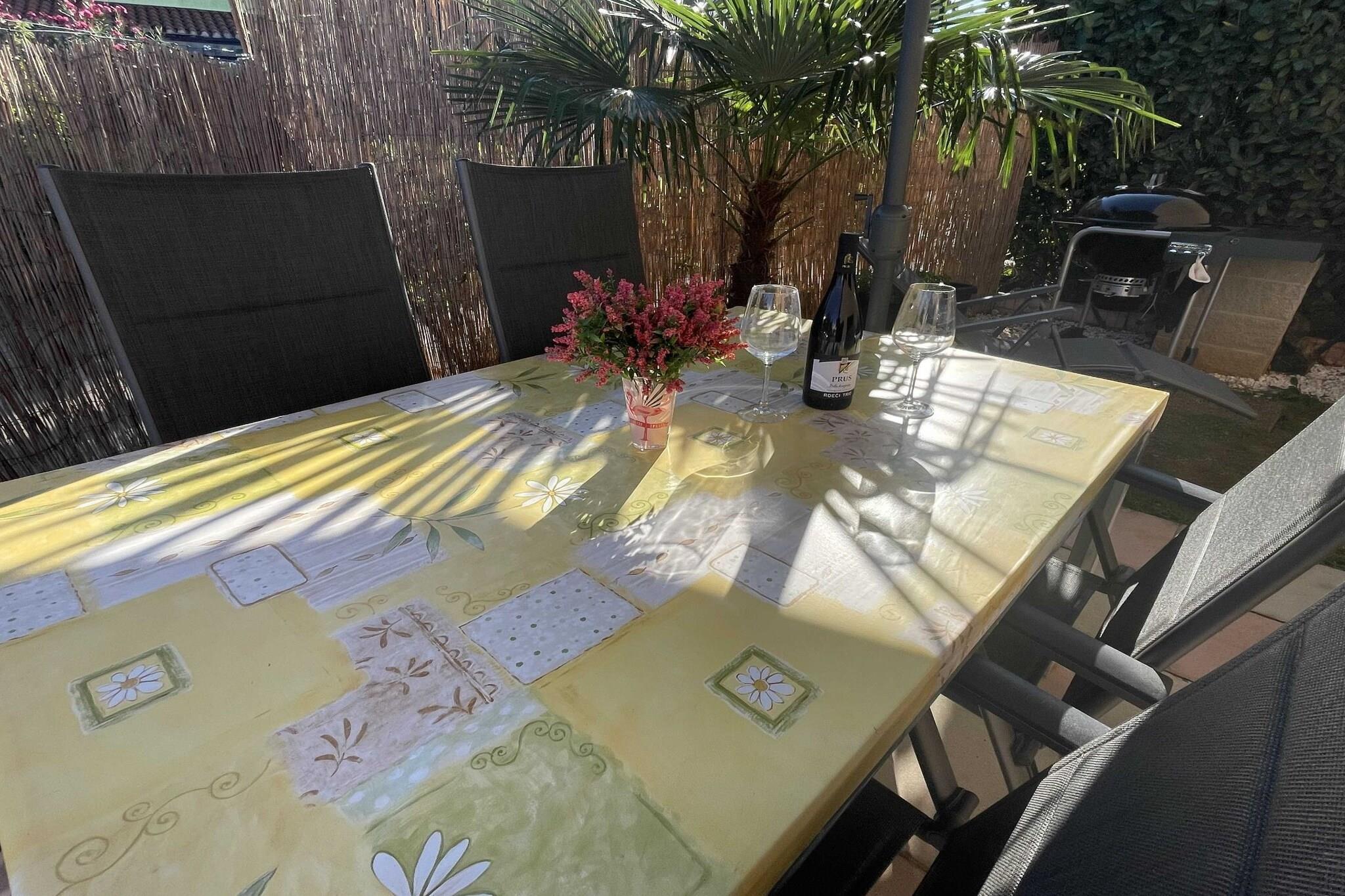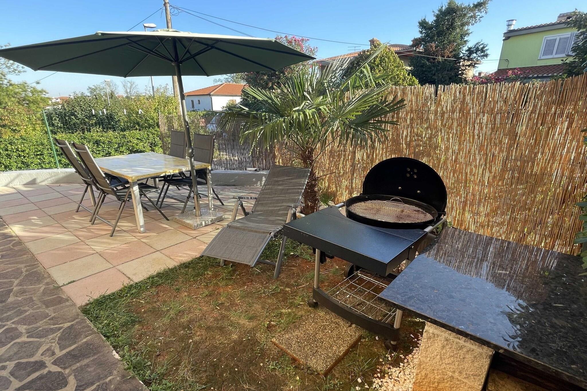The "Classic and Modern Umag Apartment with Terrace and BBQ" in Umag, Istria County, Croatia, offers a well-equipped, stylish vacation rental experience. This apartment combines classic charm with modern amenities, featuring a private terrace and BBQ facilities for outdoor dining and relaxation. Located close to Umag's beaches and local attractions, it is ideal for families or small groups seeking convenience and comfort. Amenities often include a fully equipped kitchen, air conditioning, Wi-Fi, and a comfortable living area. Its proximity to cultural and recreational sites in Umag, such as Dante Beach and local markets, enhances its appeal as a vacation destination?. Note: Pets are allowed with notice. Private parking, reservation is not required. Wi-Fi is available throughout the property. This two-bedroom can accommodate up to five guests. It features an SAT/flat-screen TV and is combined with a living room seating area, sofa, and kitchen. The private bathroom is equipped with a shower and toilet. Thanks to its excellent location, everything you'll need for your vacation is just a short walk away from the property. Grocery stores-500.00 m, restaurants—30.00 m . The beach is 100.00 m away from the property. The airport is 70 km away from the property.