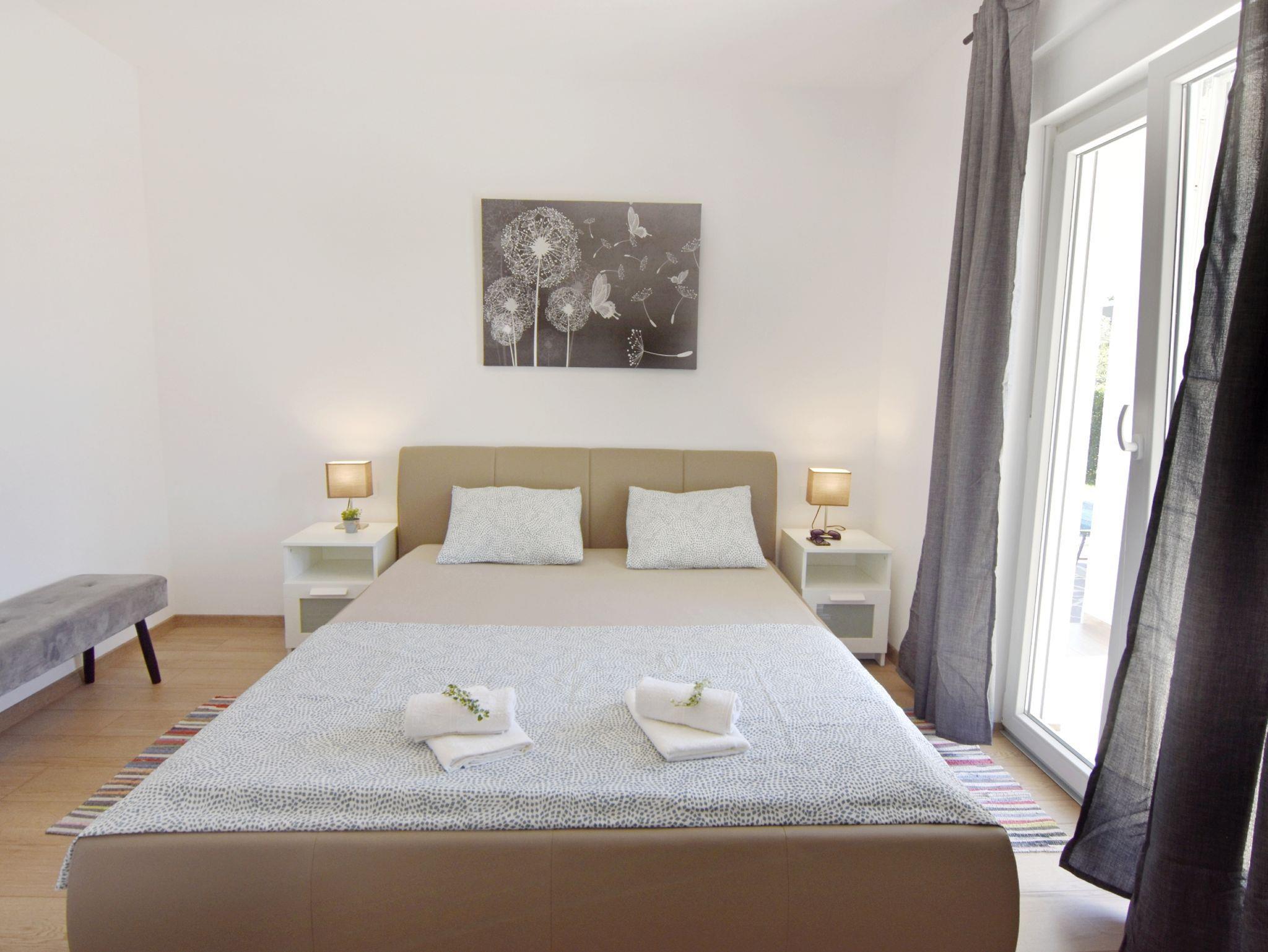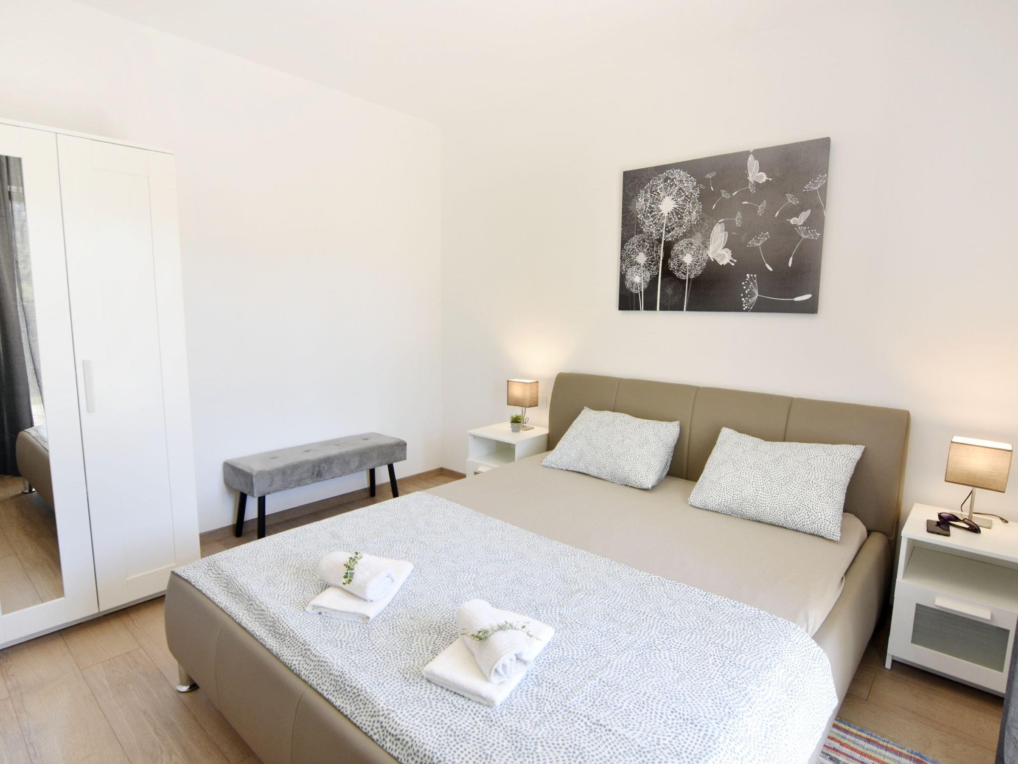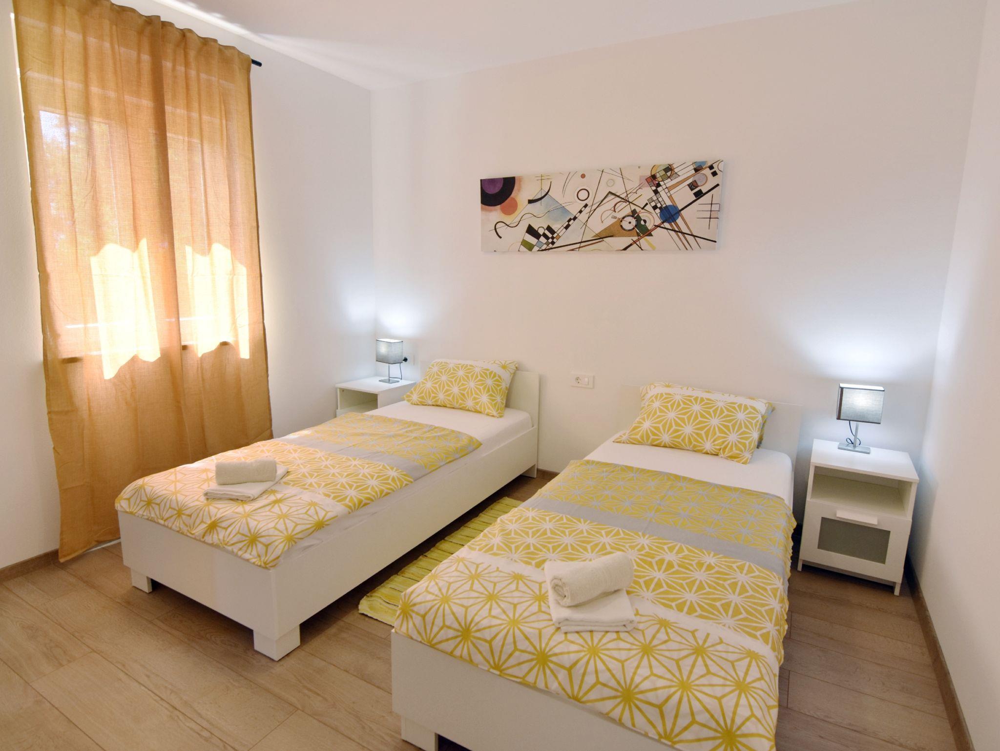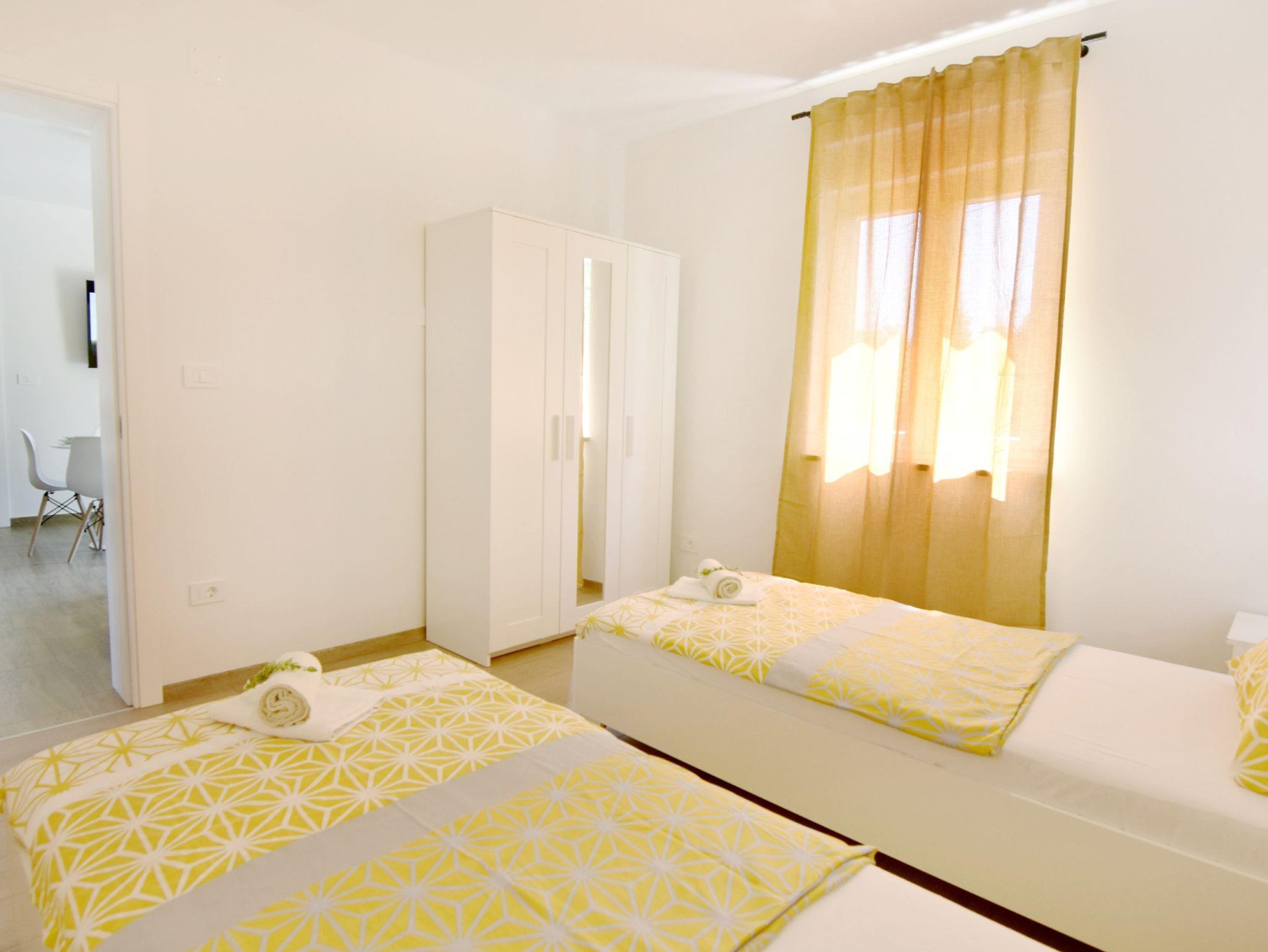 Ferienwohnung bietet Platz für 5 Gäste. Die Betten sind in Schlafzimmern, die es 2 gibt, und in Wohnzimmer, innerhalb einer Gesamtfläche von 52m2, angeordnet. Die Gäste haben eine eigene Terrasse zur Verfügung, auf der sie in warmen Sommernächten genießen können. Es ist erlaubt, Speisen auf dem Gemeinschafts-Grill vorzubereiten. Während ihres Aufenthalts können Gäste das gemeinsam zur Nutzung stehende Schwimmbad benutzen. IM PREIS INBEGRIFFEN: Kurtaxe, Endreinigung, Klimatisierung, Pool, Parkplatz, Internet, Föhn. Die Verfügbarkeit zusätzlicher Dienstleistungen in Ihrem reservierten Termin und die Preise derselben (falls nicht aufgeführt) müssen im Voraus überprüft werden. Zusätzliche Dienstleistungen die in der Zahlungsaufforderung nicht aufgeführt sind werden direkt beim Vermieter bezahlt, angenommen der Gast nutzt auch diese.