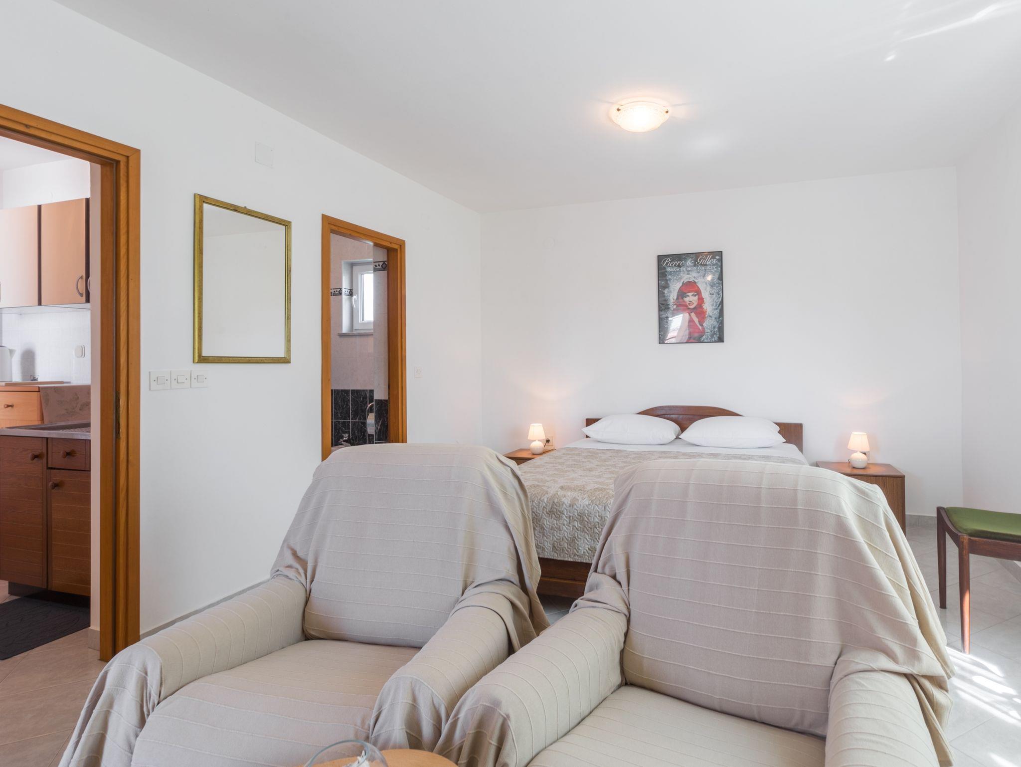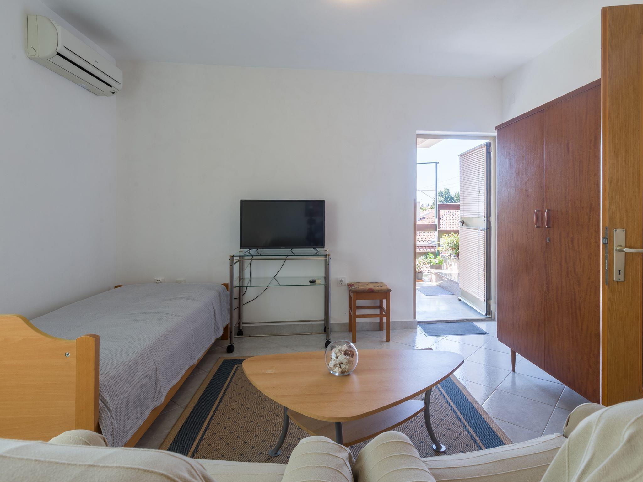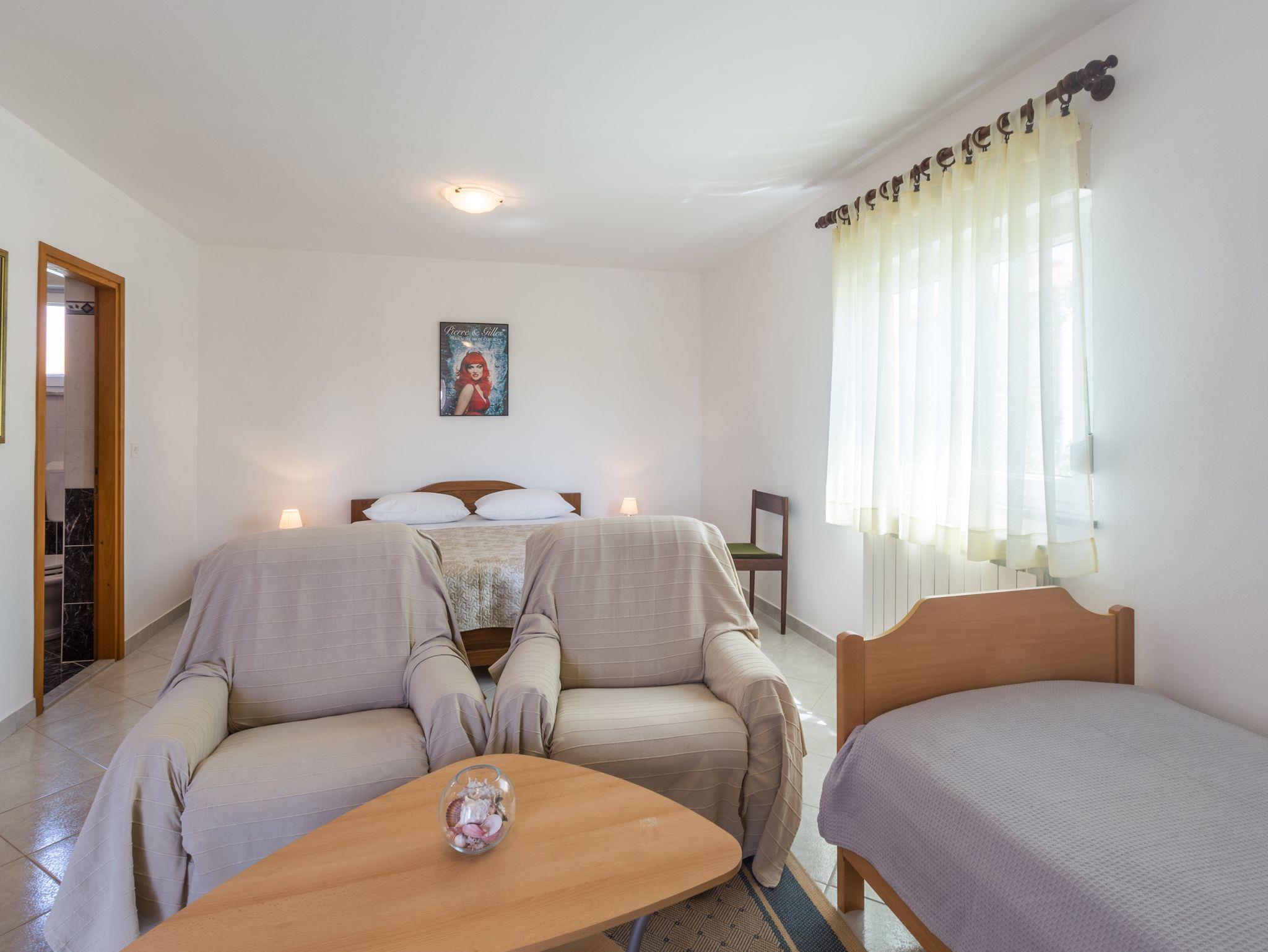 Ferienwohnung bietet Platz für 3 Gäste. Die Betten sind in Schlafzimmern, die es 1 gibt, innerhalb einer Gesamtfläche von 31m2, angeordnet. Die Gäste haben eine eigene Terrasse zur Verfügung, auf der sie in warmen Sommernächten genießen können. Es ist erlaubt, Speisen auf dem Gemeinschafts-Grill vorzubereiten. Durch die Terrasse der gebuchten Unterkunftseinheit gehen auch andere Gäste oder Vermieter. IM PREIS INBEGRIFFEN: Kurtaxe, Endreinigung, Klimatisierung, Parkplatz, Internet, Bügeleisen, Bügelbrett, Föhn. VERBINDLICHE ZUSÄTZLICHE KOSTEN: Aufzahlung für Kurzaufenthalte (prozentualer Zuschlag pro Nächtigungsanzahl: 30% - 1, 20% - 2, 10% - 3). Die Verfügbarkeit zusätzlicher Dienstleistungen in Ihrem reservierten Termin und die Preise derselben (falls nicht aufgeführt) müssen im Voraus überprüft werden. Zusätzliche Dienstleistungen die in der Zahlungsaufforderung nicht aufgeführt sind werden direkt beim Vermieter bezahlt, angenommen der Gast nutzt auch diese.