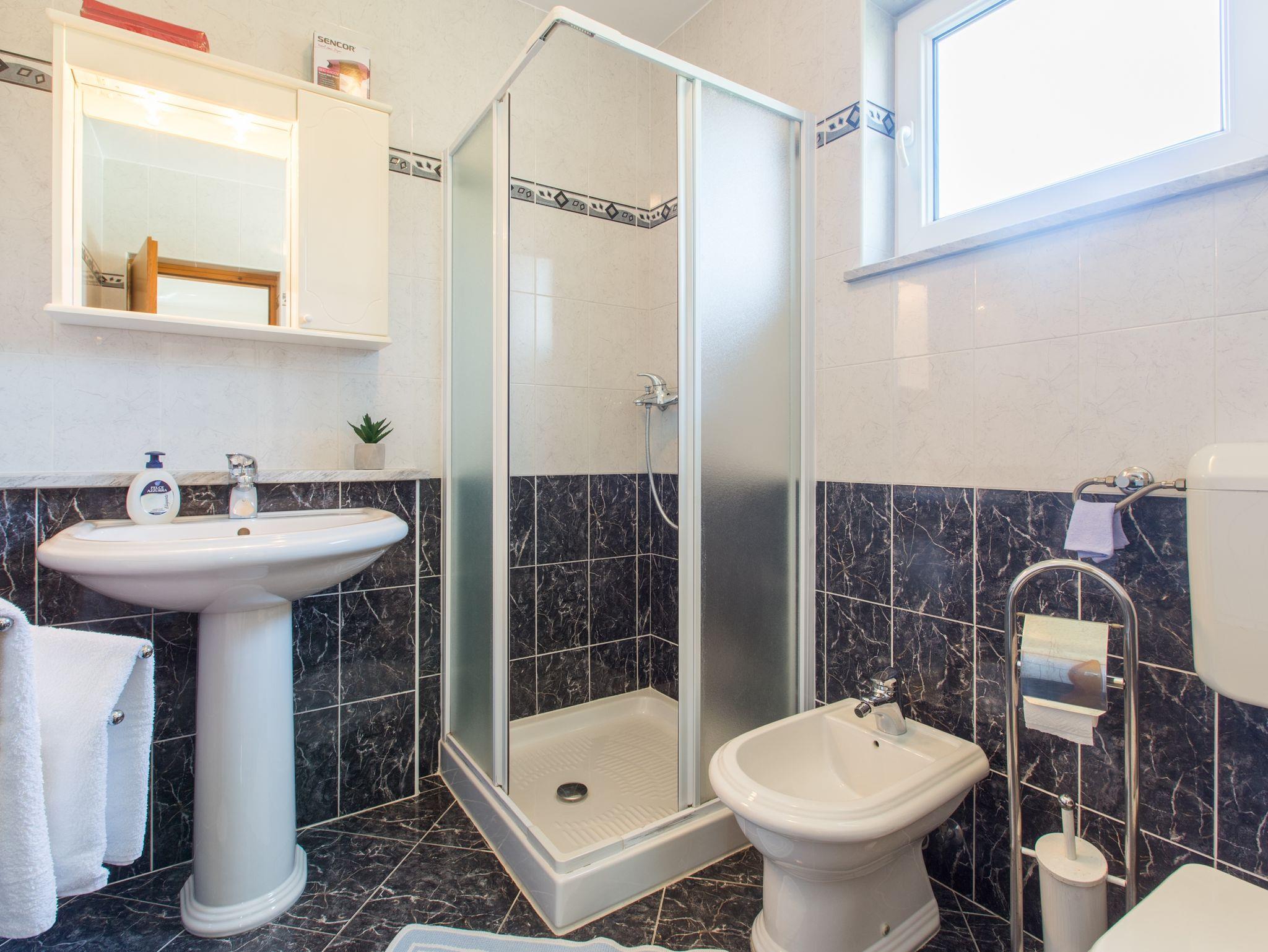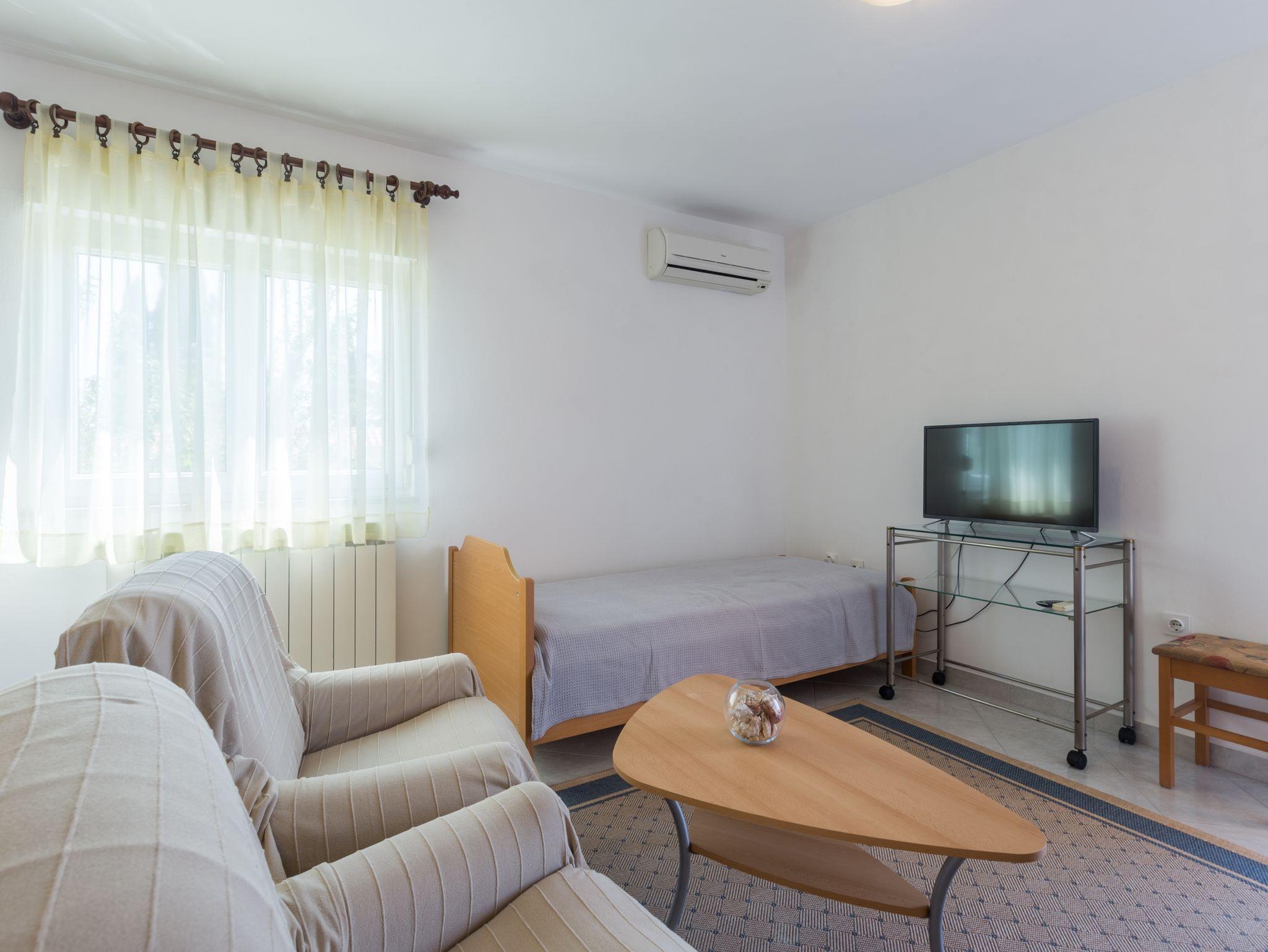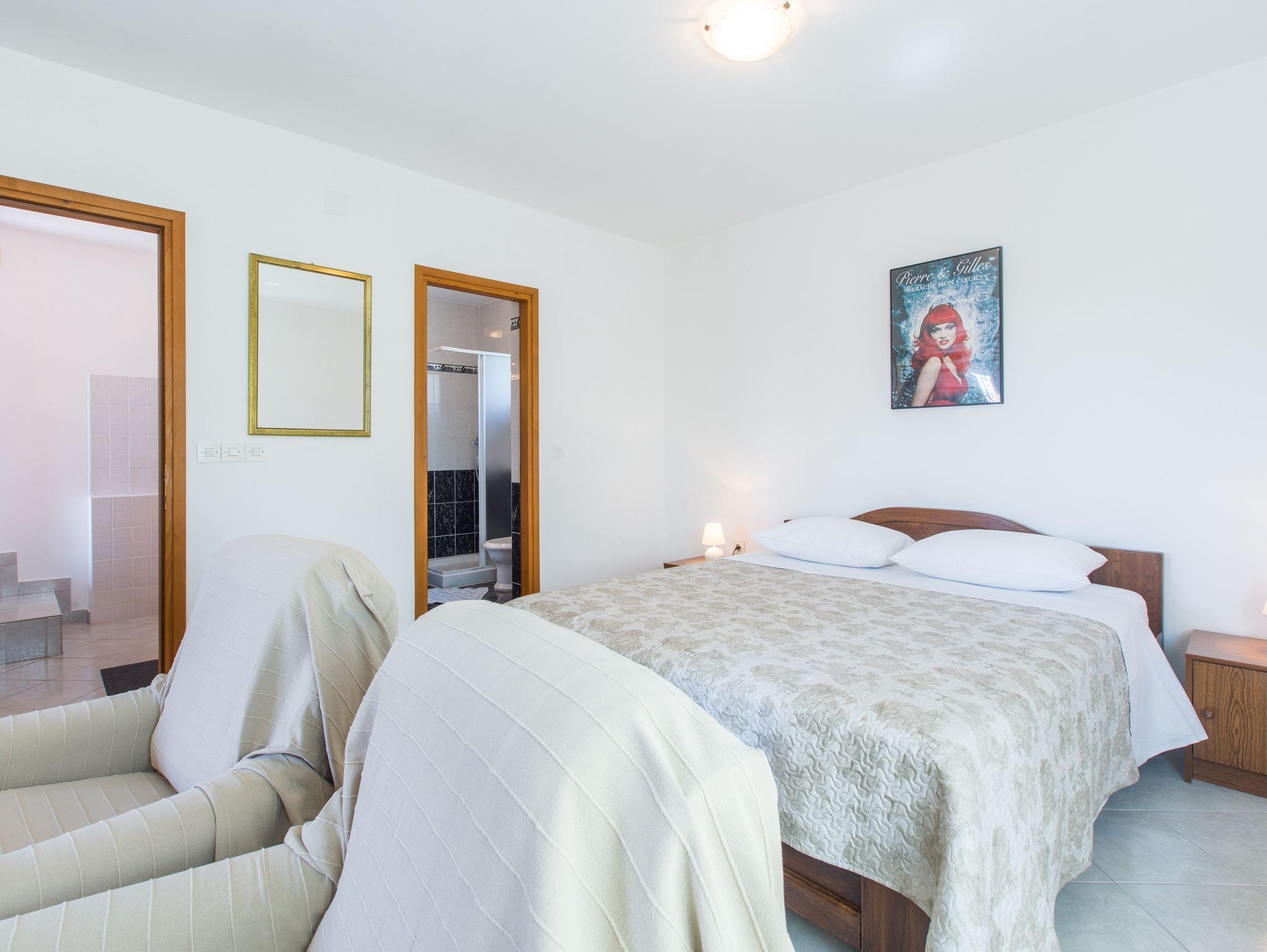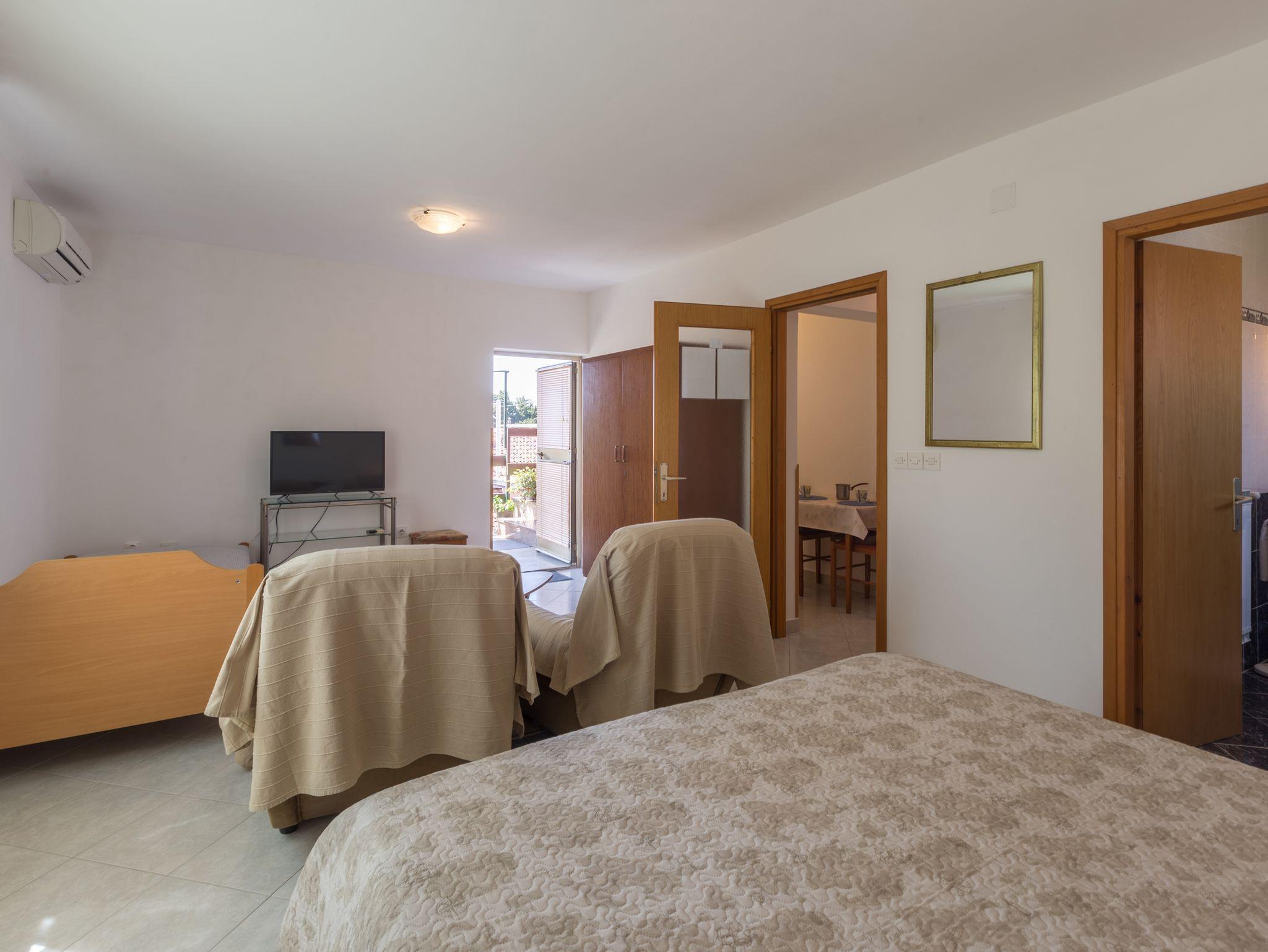 Ferienwohnung bietet Platz für 3 Gäste. Die Betten sind in Schlafzimmern, die es 1 gibt, innerhalb einer Gesamtfläche von 31m2, angeordnet. Die Gäste haben eine eigene Terrasse zur Verfügung, auf der sie in warmen Sommernächten genießen können. Es ist erlaubt, Speisen auf dem Gemeinschafts-Grill vorzubereiten. Durch die Terrasse der gebuchten Unterkunftseinheit gehen auch andere Gäste oder Vermieter. IM PREIS INBEGRIFFEN: Kurtaxe, Endreinigung, Klimatisierung, Parkplatz, Internet, Bügeleisen, Bügelbrett, Föhn. VERBINDLICHE ZUSÄTZLICHE KOSTEN: Aufzahlung für Kurzaufenthalte (prozentualer Zuschlag pro Nächtigungsanzahl: 30% - 1, 20% - 2, 10% - 3). Die Verfügbarkeit zusätzlicher Dienstleistungen in Ihrem reservierten Termin und die Preise derselben (falls nicht aufgeführt) müssen im Voraus überprüft werden. Zusätzliche Dienstleistungen die in der Zahlungsaufforderung nicht aufgeführt sind werden direkt beim Vermieter bezahlt, angenommen der Gast nutzt auch diese.